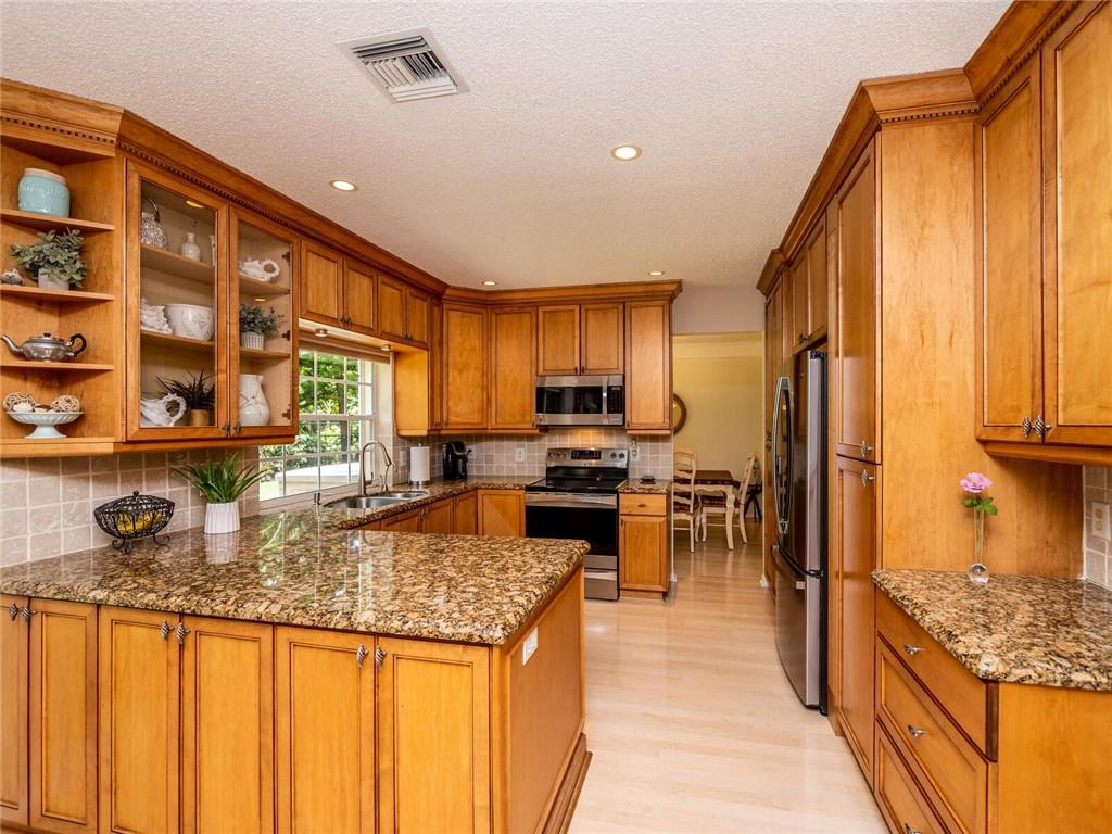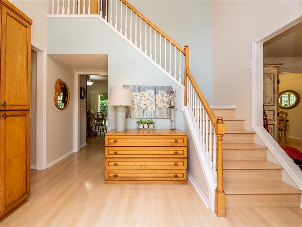 Beautifully maintained 2 story home located guard gated community The Preserve. Community known for its tranquil nature preserves. Popular York model features Grand foyer entrance with volume ceilings & custom built-ins. Formal living & dining room & separate family room. COMPLETELY UPDATED kitchen custom wood cabinetry, granite counters & stainless steel appliances. Laminate wood flooring, recessed lighting & crown moldings. Bedrooms include closet organizers. Primary bedroom w/vaulted ceilings & gorgeous custom built-ins. Plantation shutter window treatments all windows & silhouettes on sliders. HOUSE GENERATOR, ACCORIDION, COLONIAL & PANEL SHUTTERS & INSULATED HURRICANE GARAGE DOOR. Expanded driveway & walkway. Screened patio & FENCED yard. Roof 2013, TRANE AC 2007 & water heater 2020.
