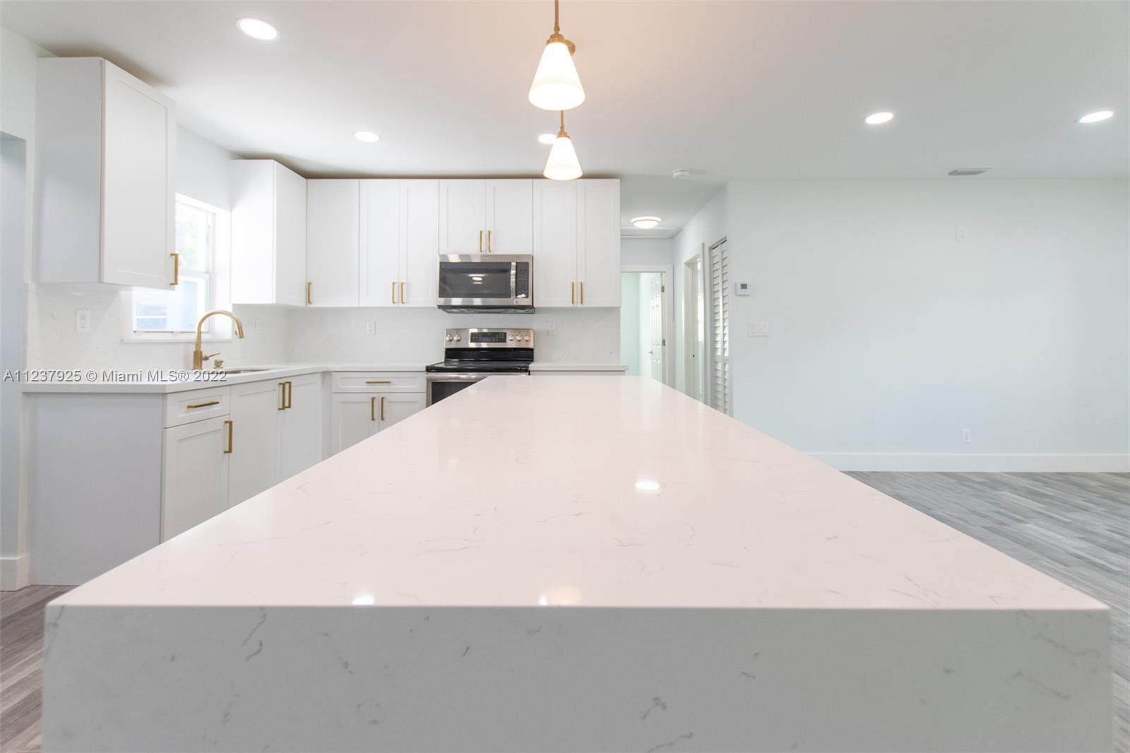 Beautiful 3 bedroom and 2 bathroom single family home. Fully remodeled featuring laminate wood flooring throughout, spacious living area, open concept kitchen with a large island and stainless steel appliances, modern fixtures in the bathrooms, new light fixtures, impact windows and doors, freshly painted and landscaped, close to the beach and much more... Won't last!!!