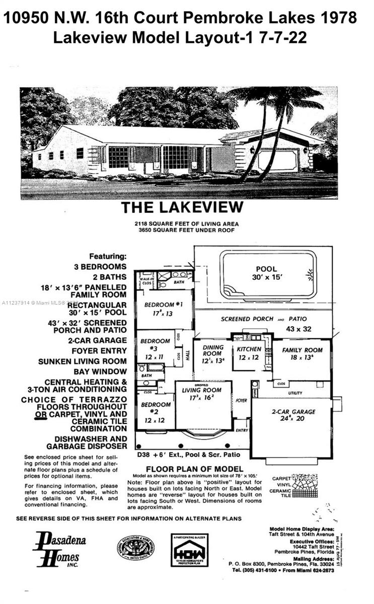OPEN HOUSE SAT 7/30 & 7/31 12:00-2:00...Move in ready, original owner pool home in desirable Pembroke Lakes…The floor plan for this 4 bedroom 2 ½ bathroom home was customized by the builder, Pasadena Homes, which makes this home unique & one of a kind…Per builders floor plan the home is 2466 sq ft under air...Recently painted/Roof 2007/AC 2014…Circular driveway was just resurfaced…Front & primary bedroom have new carpet…Bonus flex room & family room are great for entertaining…Primary bedroom, dining room, kitchen, & family room have full views of the pool and opens out to a screen-enclosed patio for entertaining...Within 2 blocks from Publix, restaurants, stores, & Pembroke Lakes Elementary...Less than a 5 minute drive to Pembroke Lakes Mall & CB Smith Park
