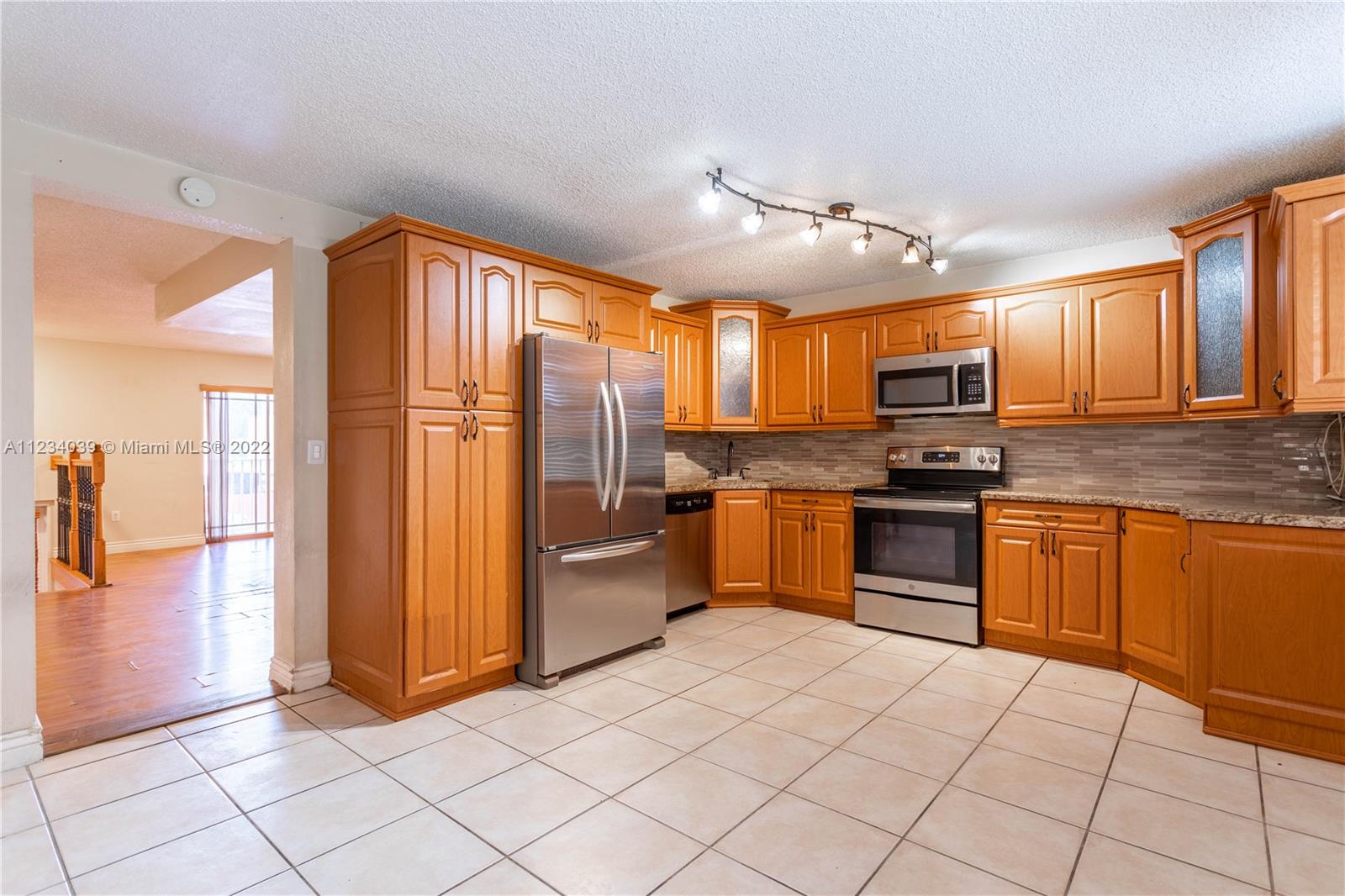 Lovely 3 bedroom 3 bath townhome in Hialeah with wood cabinetry, stainless steel appliances and granite counters tops, tile floors throughout, covered patio. Centrally located in Hialeah just 5 mins away from the Palmetto Expressway, and Westland mall. 1st level garage (enclosed to make rental unit). 2nd level has main entrance, living area, kitchen, bathroom. 3rd level has primary ensuite bedroom, 2nd & 3rd bedrooms share full hall 3rd bath.