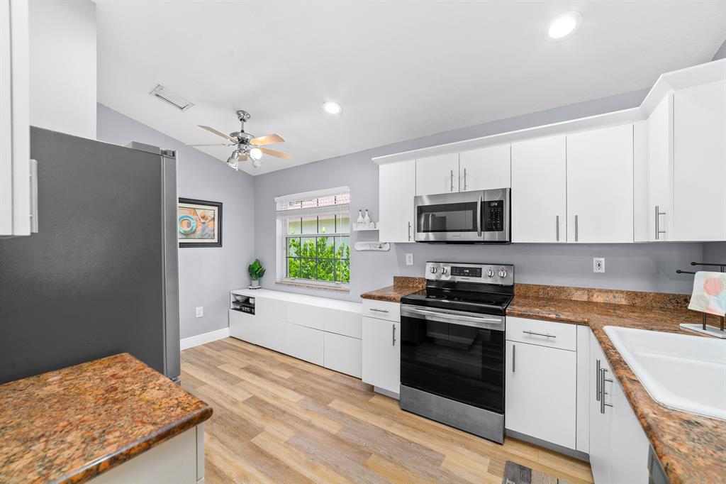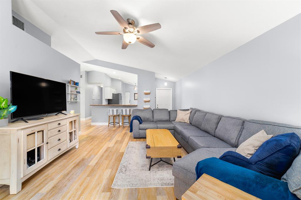 STUNNING! Come check out this beautiful 3 bedroom 2.5 bathroom single family home located in The Enclave. Once you enter you will be greeted with vaulted ceilings(popcorn removed) and natural light. The kitchen was remodeled in 2019 with stainless steel appliances. Washer/dryer 2019. Enjoy the spacious living room that overlooks your patio which has a screen enclosure. New Vinyl Flooring throughout the living room, bedrooms, and bathrooms. The master features a large walk-in closet and a recently remodeled bathroom with a glass door for the shower. Excellent Schools, Publix, Walmart, Gym, Costco etc conveniently located 5 mins away that makes this home the perfect location! Low HOA, pool community and kids play area..