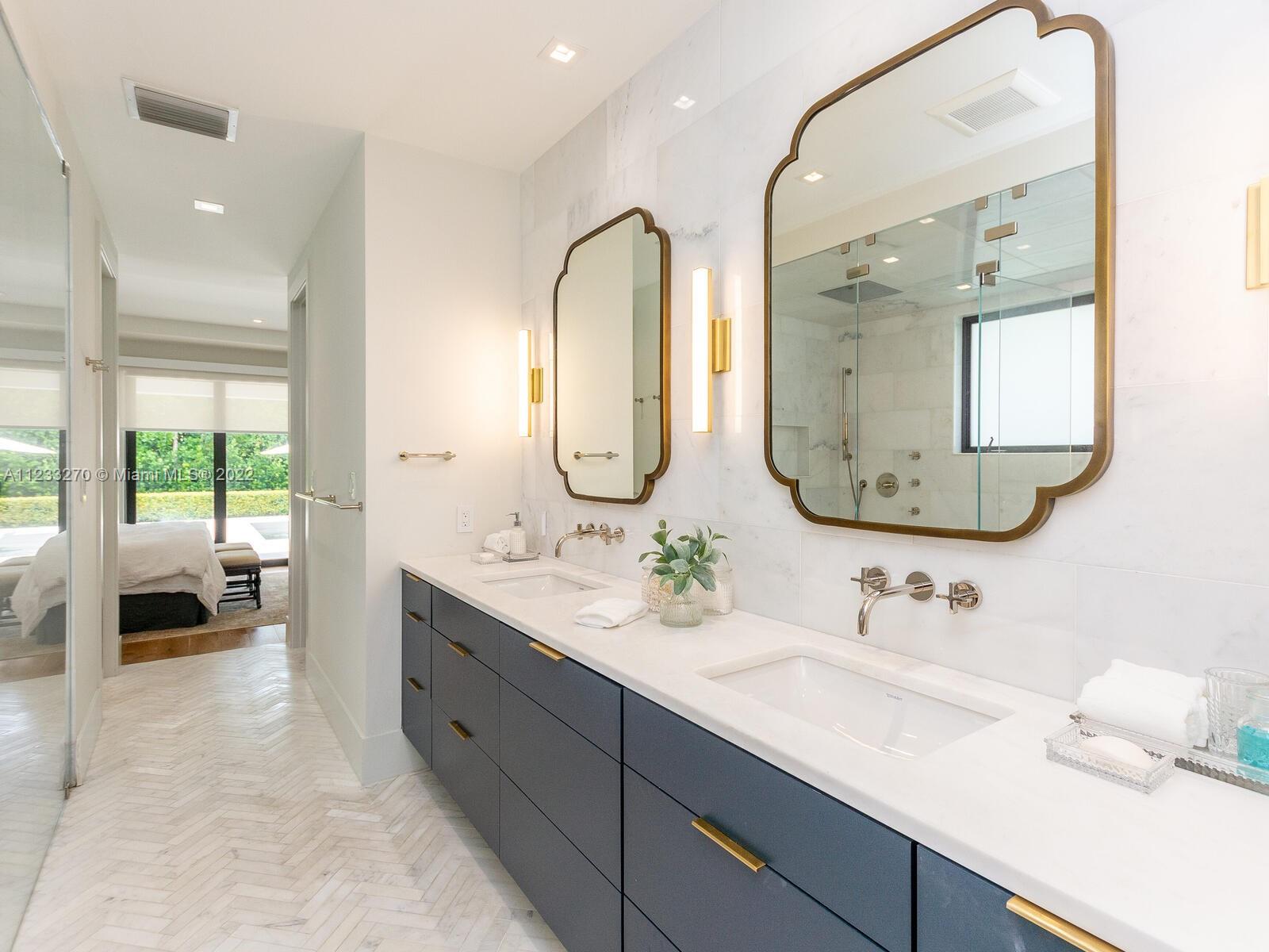 New Construction, built in 2020 with high-end finishes and unique features, located in the beautiful South Gables. Stunning Smart-House with 6bed/5.5bath, 9ft ceilings, Chef’s kitchen with top of the line Wolf and SubZero appliances, large island with prep sink, ice maker and wine cooler, great for entertaining. Custom iron glass door and wall unit. Integrated sound system. Master bedroom with large spa and steam, his and hers walk-in closets, detached guest suit and staff quarter. Beautiful backyard with turf grass, large cover terrace, outdoor kitchen and salt-water pool. 1,000-gal underground propane tank. A 38KW Generator large enough to run the entire house for 2 weeks without power. 2 car garage with an electric charging station. Surveillance system, impact windows/doors, & much more