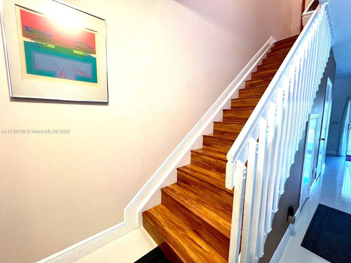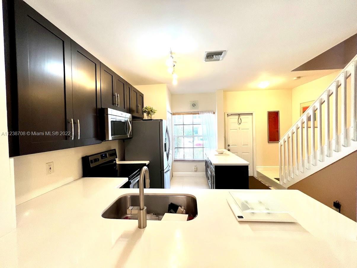 Pembroke Pines Beauty! Two story townhouse in gated community of Pelican Pointe. Excellent location on Flamingo Rd and Pines Blvd. Walking distance to major shopping, entertainment, and restaurants! All tiled downstairs with upgraded kitchen cabinets, stainless steal appliances. Cambria Quartz counters. Upgraded screen enclosure with mexican flooring. Accordion shutters throughout the property. Cathedral ceiling upstairs. Move-in condition! Community has tons of amenities like community pool, gym, and Internet included! Wood floors upstairs and each bedroom has its own attached bathroom. Bathrooms are upgraded. Shower in master bathroom with double sinks. Tub shower in second bathroom. Lots of natural light throughout the home!