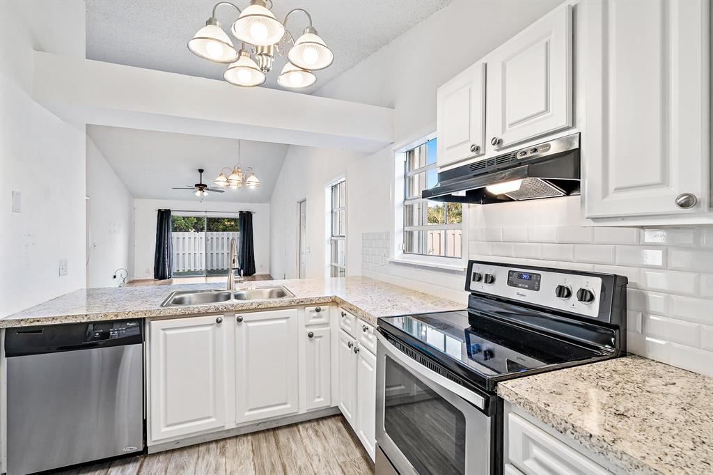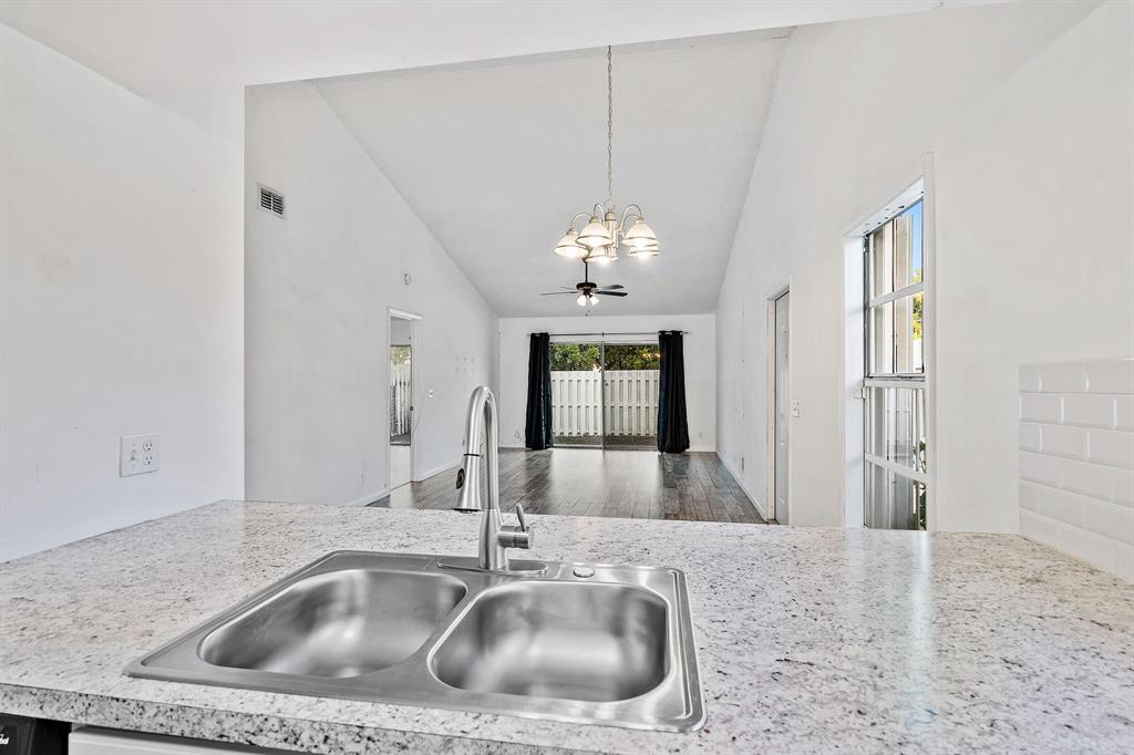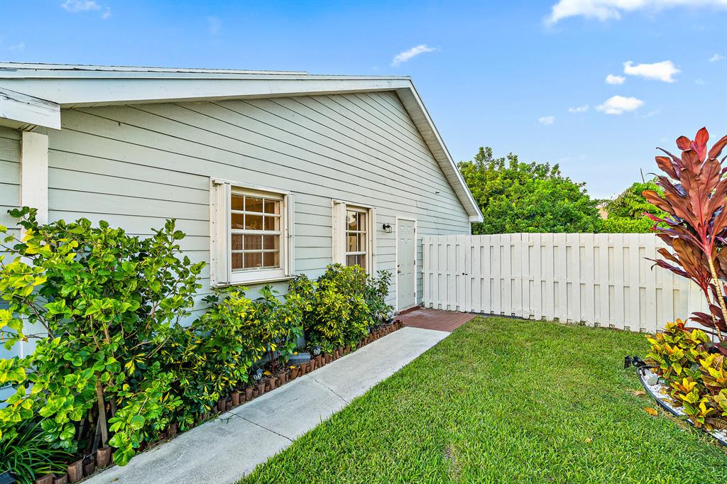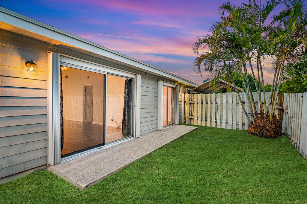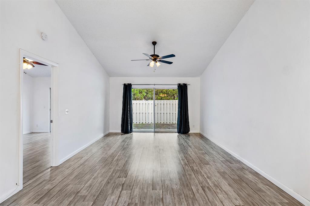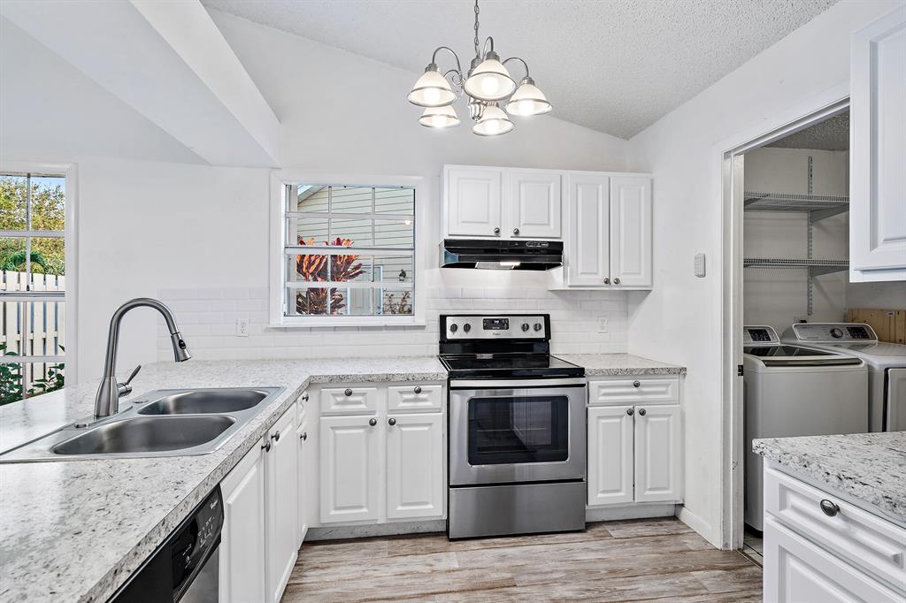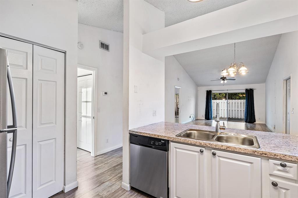 Looking for a move-in ready, SPACIOUS 2 bedroom 2 bathroom home with a FULLY FENCED backyard in West Palm Beach? Look no further! This townhouse has an OPEN floor plan, with 1,100 square feet, plenty of NATURAL LIGHT, and VAULTED ceilings throughout. The home has been thoughtfully updated and is ready for you to call this quaint beauty, HOME! Some features include, an expanded kitchen, large windows and sliding glass doors letting in AMPLE natural light, LARGE bedroom closets, and key locked accordion shutters!As you enter your new townhome, you have TWO front door options to choose from. The first option, you enter through your laundry room with full washer and dryer and AMPLE storage leading into your EXPANDED, white kitchen.