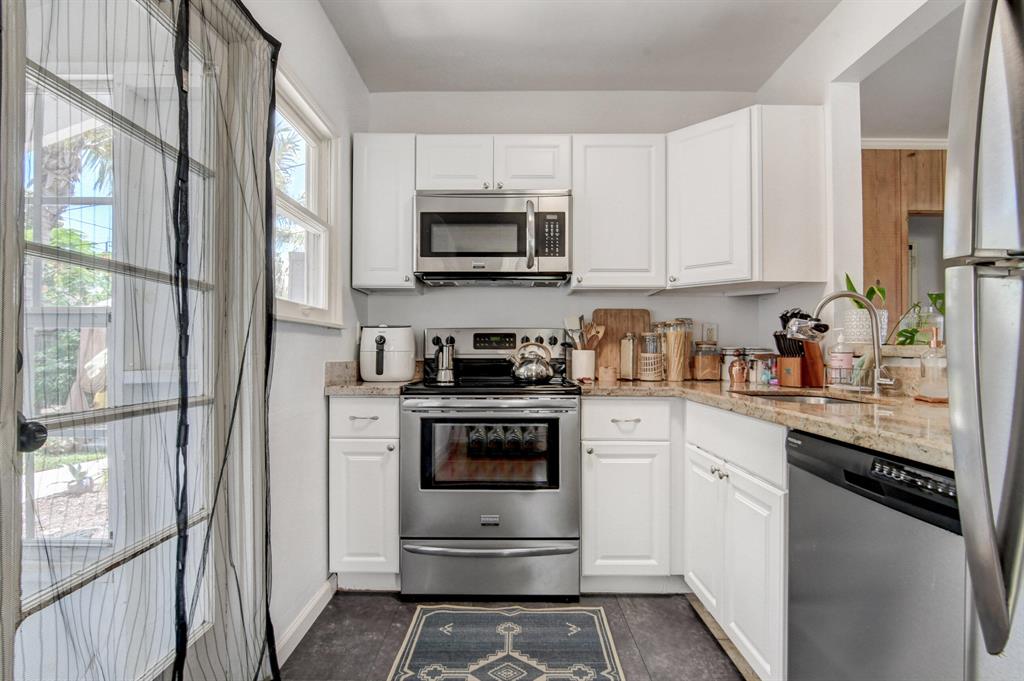 Awesome SINGLE FAMILY HOUSE WITH GUEST HOUSE located in Poiciana Park with its own community park, playground & walking paths. Private location perfect for an AIRBNB/ Long Term Rental/ Or Move In Duplex. The fenced backyard has a storage shed, tropical plants & trees + hammock and FIREPIT! Beautiful Cozy Home Design with Brand New Stainless Steel Appliances. Miami Dade Pine Flooring Throughout Main House. Good layout has bay window with west exposure in living and a breakfast /dining room has east morning sun. Perfect location with ease to beaches, schools, shopping and roadways and all with no HOA fees. Easy showings Main House 2/1 and Guest House is 1/1 with Screened In Porch!!