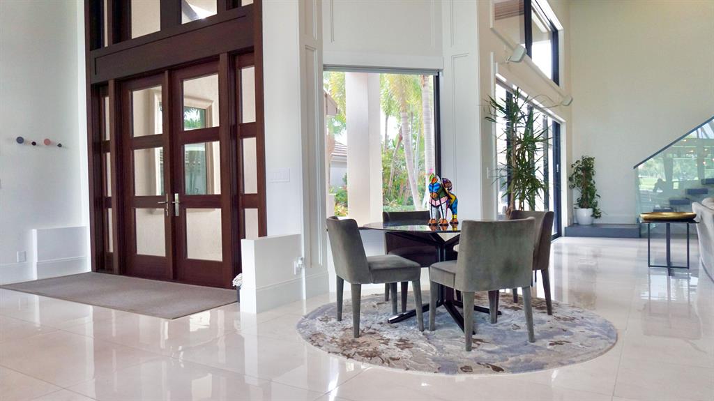 Enter a hidden world of modern luxury and beauty within the award-winning Broken Sound Club. This renovated 5 bedroom 5 1/2 bathroom home features a courtyard that greets you with luxurious Quartzite tile and fully automated modern pool. Entertain outside at the elaborate summer kitchen with a built-in outdoor sound system, and savor the privacy behind the lavish mahogany doors. You will find 15' ceilings in main living area with unique ceiling designs and cove crown moldings throughout. The kitchen boasts Miele, Bosch, and SubZero appliances in the custom kitchen, island and bar. Kitchen features quartz countertops, high-pressure laminate cabinets and full glass backsplash. Large hurricane windows and sliders encourage the sun's energy to fill u