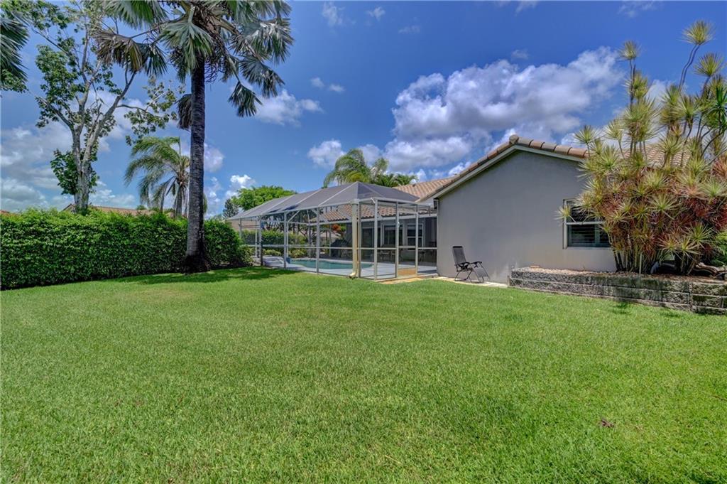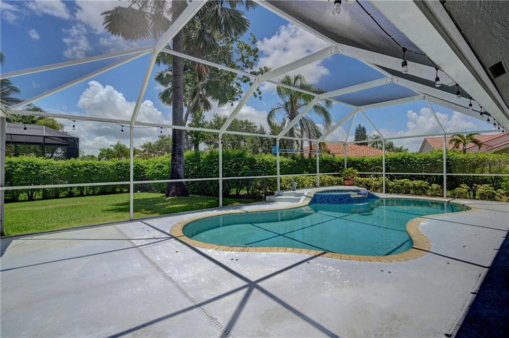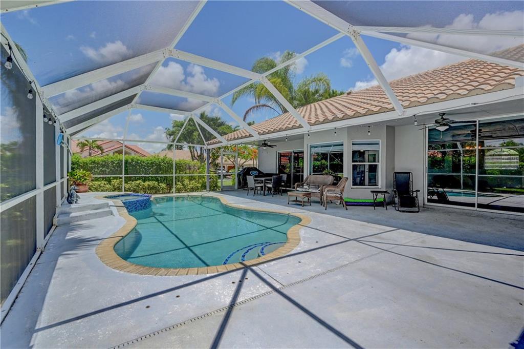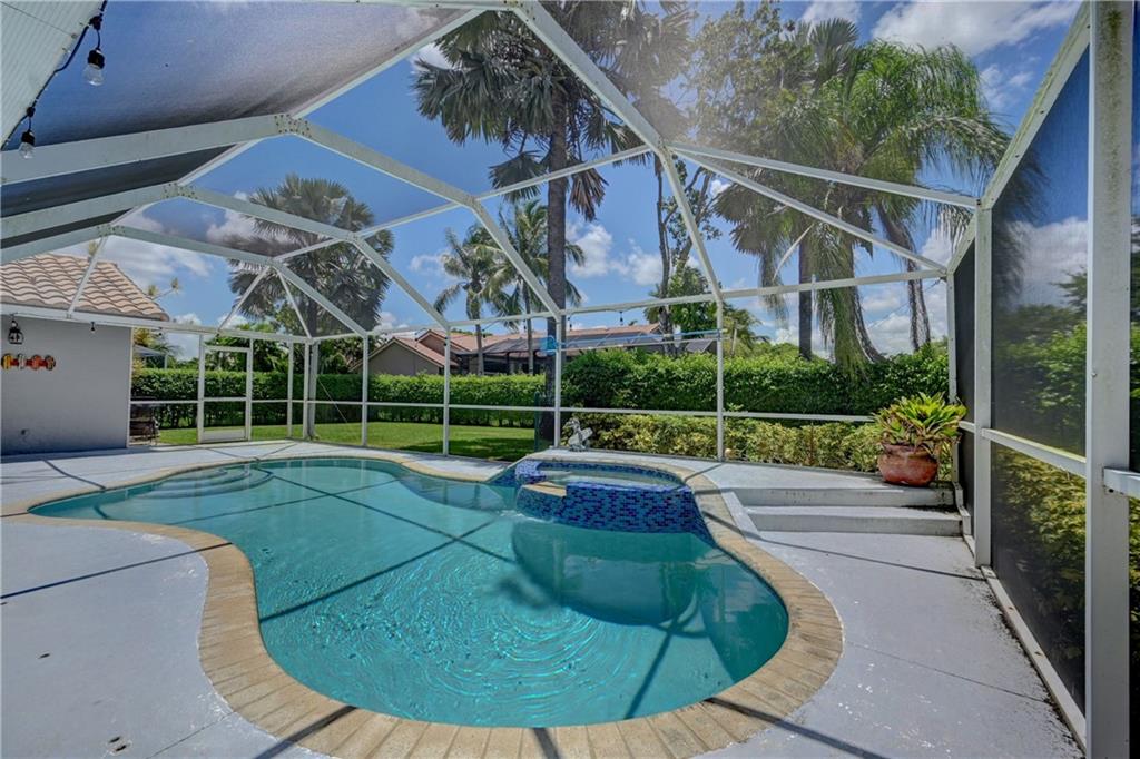 **OVERSIZED CORNER LOT (14,430 sqft)** This beautiful 4/2 pool home features: 2016 tile roof, 2020 A/C, Tankless water heater, hurricane impact doors on front/garage/cabana, new circular Travertine driveway, updated eat-in kitchen w/SS appliances (new fridge) & Granite counters, vaulted ceilings w/recessed lights, formal dining & living rooms, family room, large laundry room w/new 2021 W/D, wood floors thru-out, Plantation shutters, guest bath w/dual sinks, spacious Master suite boasts His & Her walk-in closets, updated cabana bath w/dual sinks, separate tub & walk-in shower. Step out to your backyard oasis surrounded by lush landscaping w/screened-in patio & salt water pool perfect for entertaining. New sprinkler system. LOW HOA!! Close to schools, shopping, dining and Sawgrass.