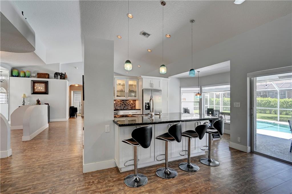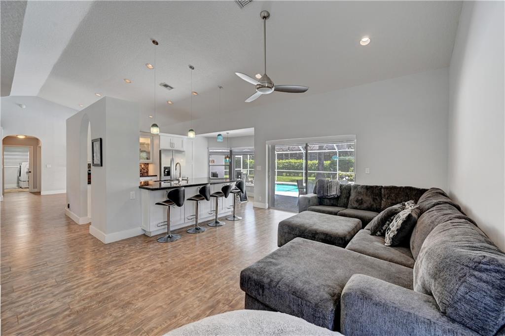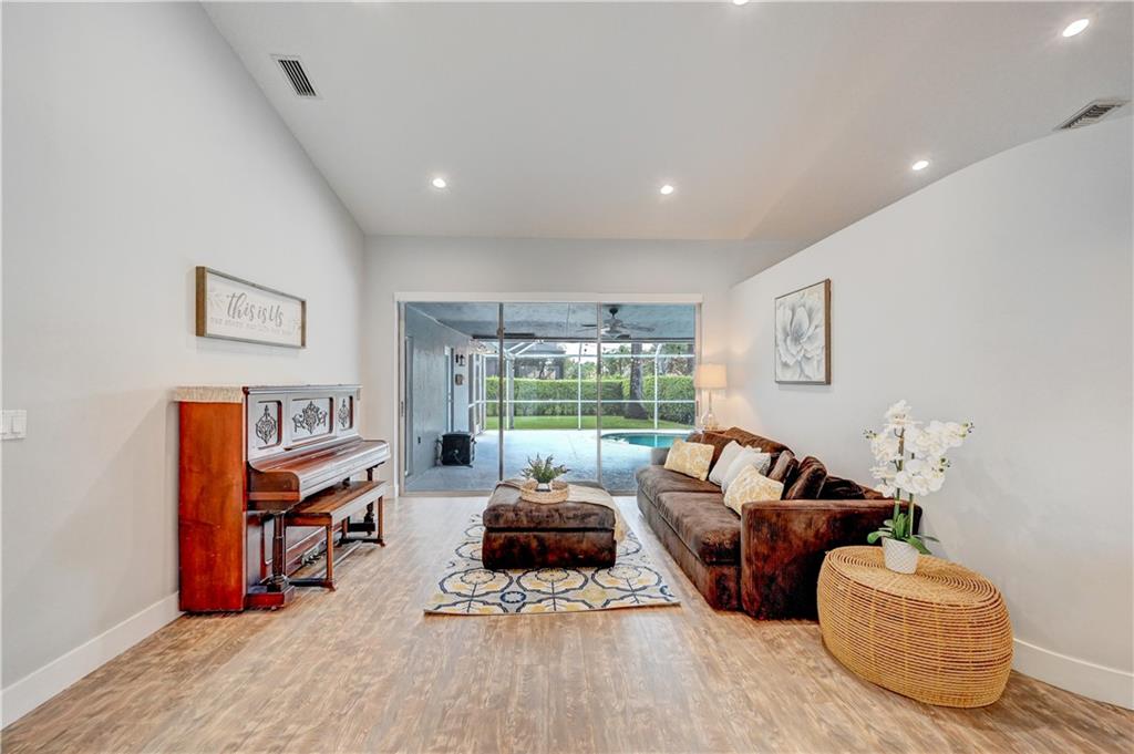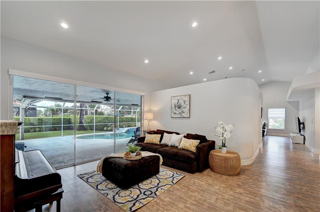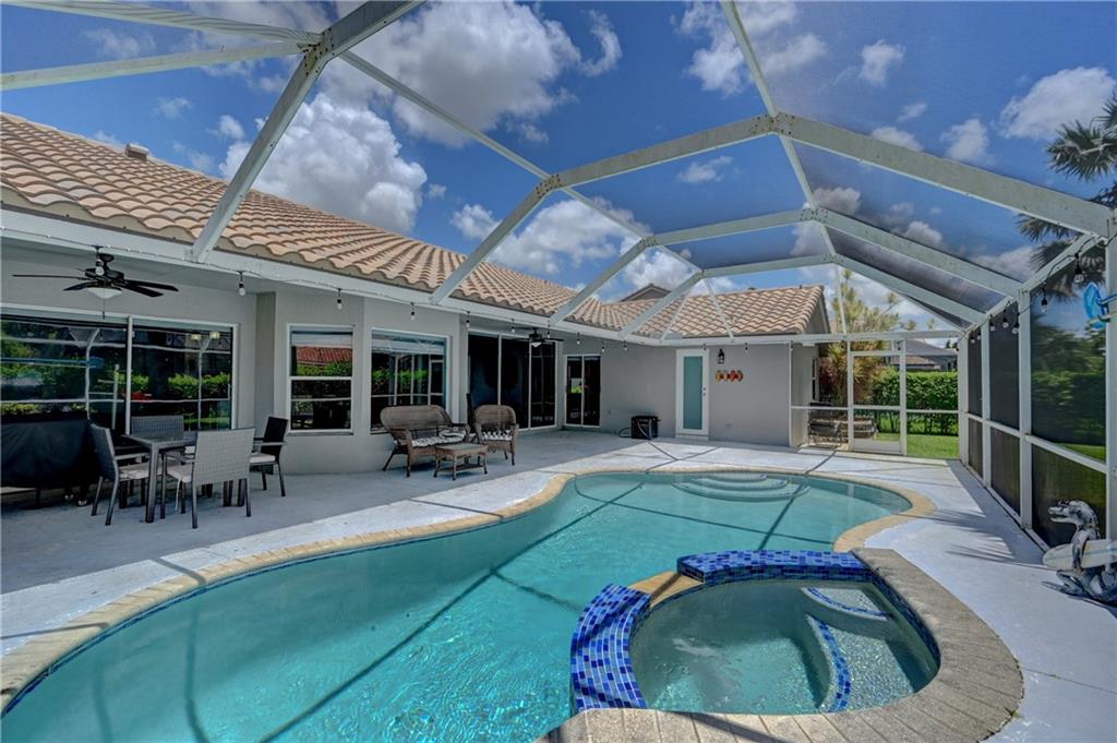 **OVERSIZED CORNER LOT (14,430 sqft)** This beautiful 4/2 pool home features: 2016 tile roof, 2020 A/C, Tankless water heater, hurricane impact doors on front/garage/cabana, new circular Travertine driveway, updated eat-in kitchen w/SS appliances (new fridge) & Granite counters, vaulted ceilings w/recessed lights, formal dining & living rooms, family room, large laundry room w/new 2021 W/D, wood floors thru-out, Plantation shutters, guest bath w/dual sinks, spacious Master suite boasts His & Her walk-in closets, updated cabana bath w/dual sinks, separate tub & walk-in shower. Step out to your backyard oasis surrounded by lush landscaping w/screened-in patio & salt water pool perfect for entertaining. New sprinkler system. LOW HOA!! Close to schools, shopping, dining and Sawgrass.