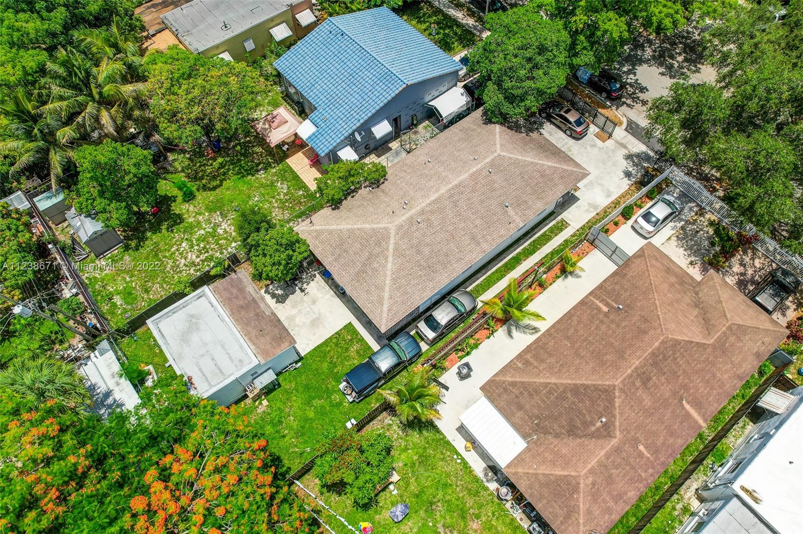 New house built in 2021 has 5 bedrooms 3 bathes, marble floors, wood cabinets, granite counter tops, Sub Zero Refrigerator, marble guest bath and marble master with jacuzzi tub, high ceilings with LED high hats through out, impact windows and doors, two tankless water heaters, 4 ton A/C with 2 electric meters and a rental income of $3600 a month. The original house which is in the back has approximately 469 sq. ft. with a 1-1. Front house which is 4-2 has approximately 1650 sq. ft. All dimensions must be confirmed.