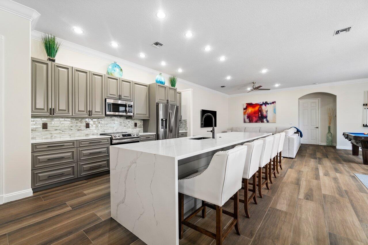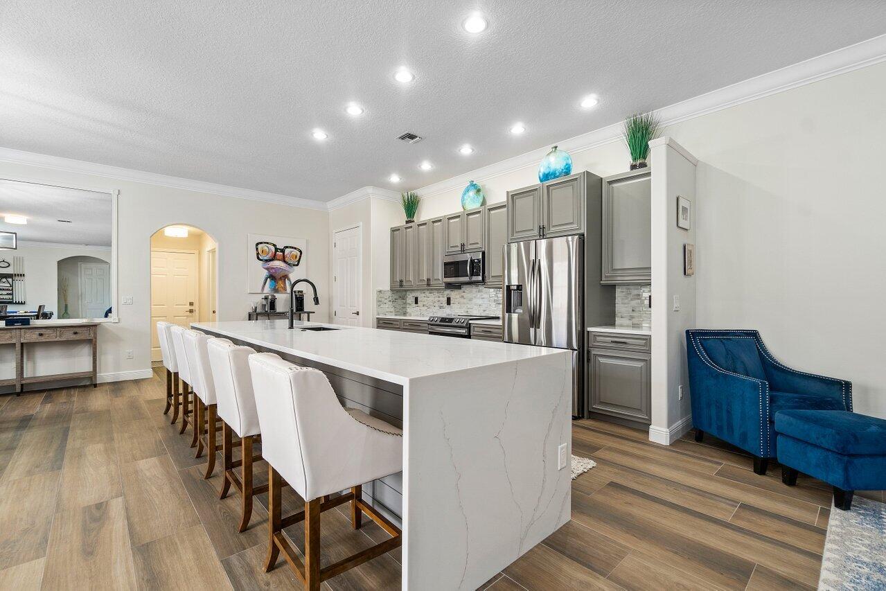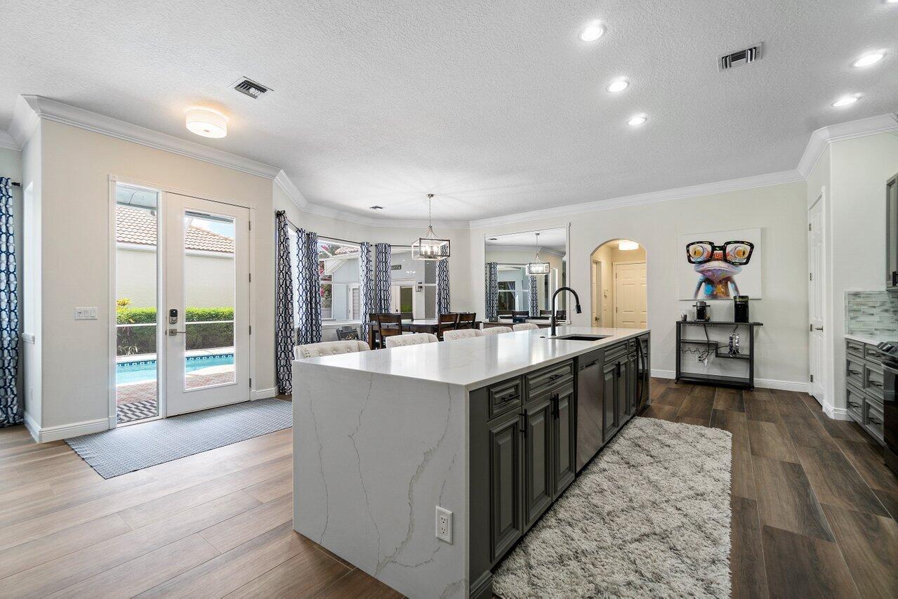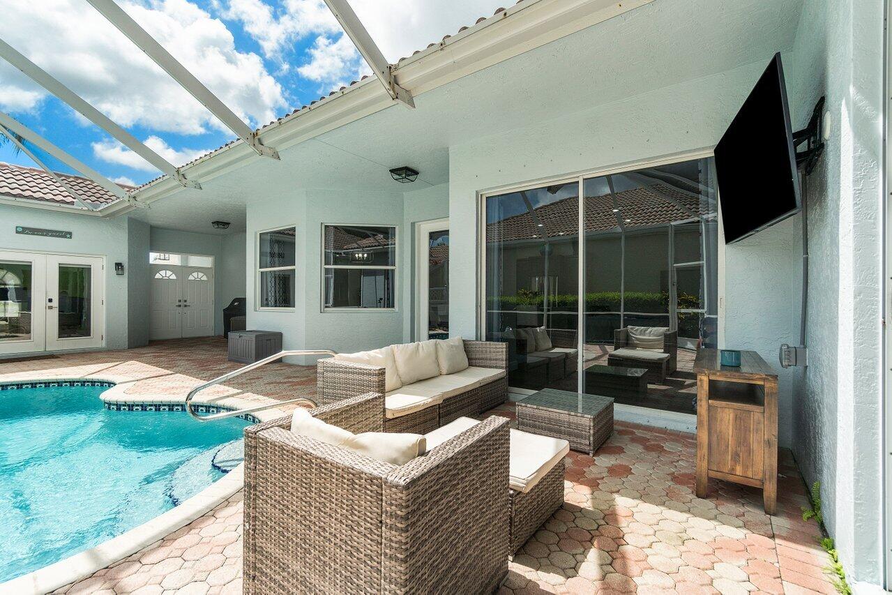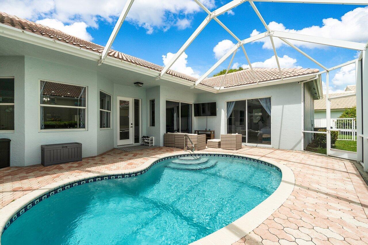 Stunning single family home with courtyard pool and 285 square foot guest house / in-law suite! Split bedroom floor plan. Completely renovated kitchen with beautiful quartz counters, large island with bar seating, stainless appliances including wine refrigerator, and gorgeous cabinets. Spacious main suite with sliders to the screened pool, walk in closet with built-ins. Main bath has dual sinks, walk-in shower, roman tub. Well situated guest bedroom in the main house with guest bath. Main house also has full laundry room. Guest house has French doors to pool, full bath, murphy bed and is very private for guests or perfect for an at home office. Excellent private pool area perfect for relaxing and entertaining. Interior of home has been recently painted, new floors throughout, new ligh