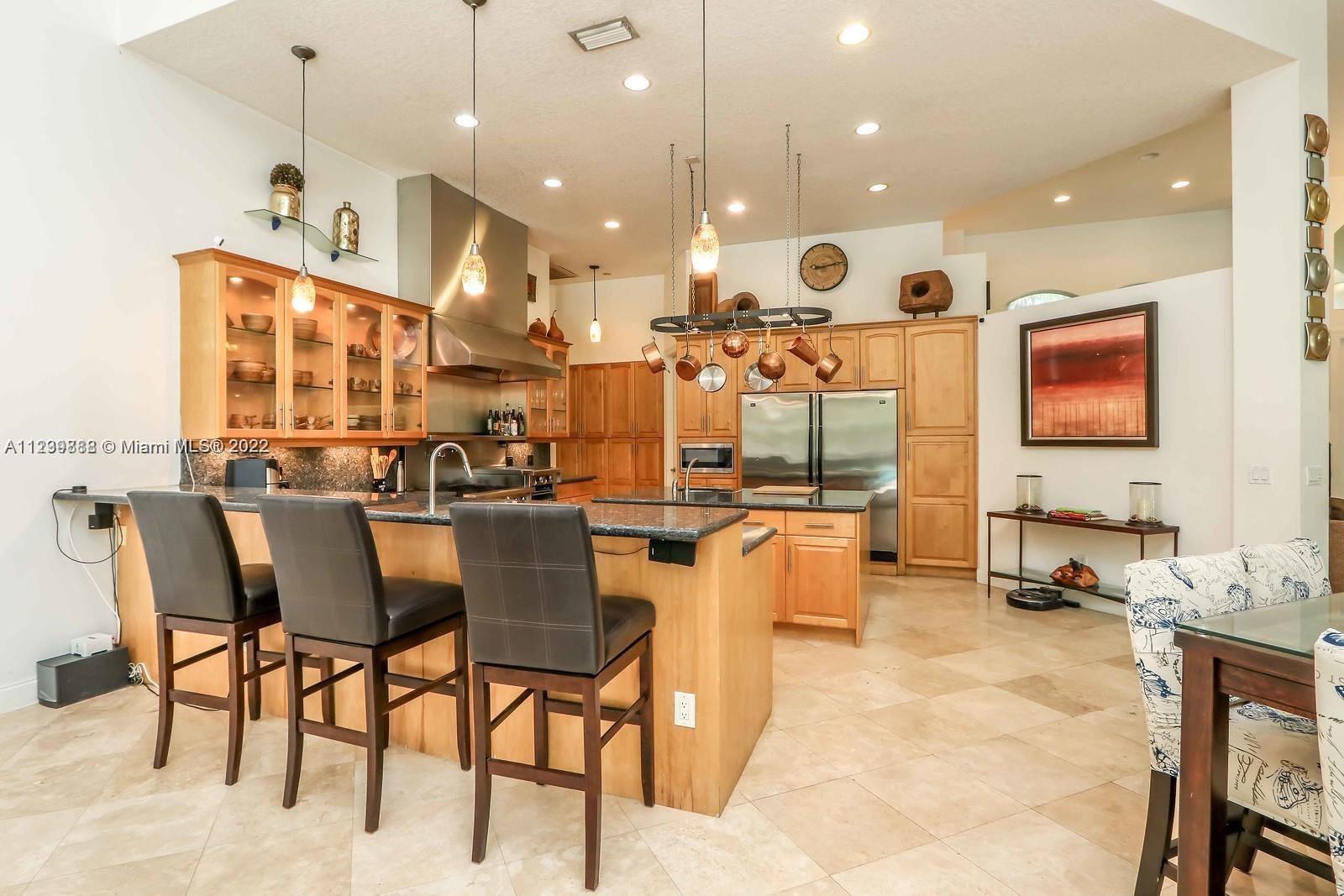 The living SFT is actually 3.427(modification are being actualized with the city).Unique Home & preserve for naturalist in you. Acre+cypress trees with fern filled habitat rear yard, bright open design, extraordinary gourmet cooks kitchen,(master chef style appliances)commercial gas range, wood cabinets with gleaming granite counters, side by side full size & stainless refrigerator /freezer, spacious private upstairs suite with bathroom. Beautiful landscaping, the back door leads to the private jewel pool/BBQ area with splendid gardens and PUTTING GREEN, direct access to family and livingroom and all bedrooms (open concept). Hurricane high impact glass windows and doors.Marble floors throughout included master bad/bed.