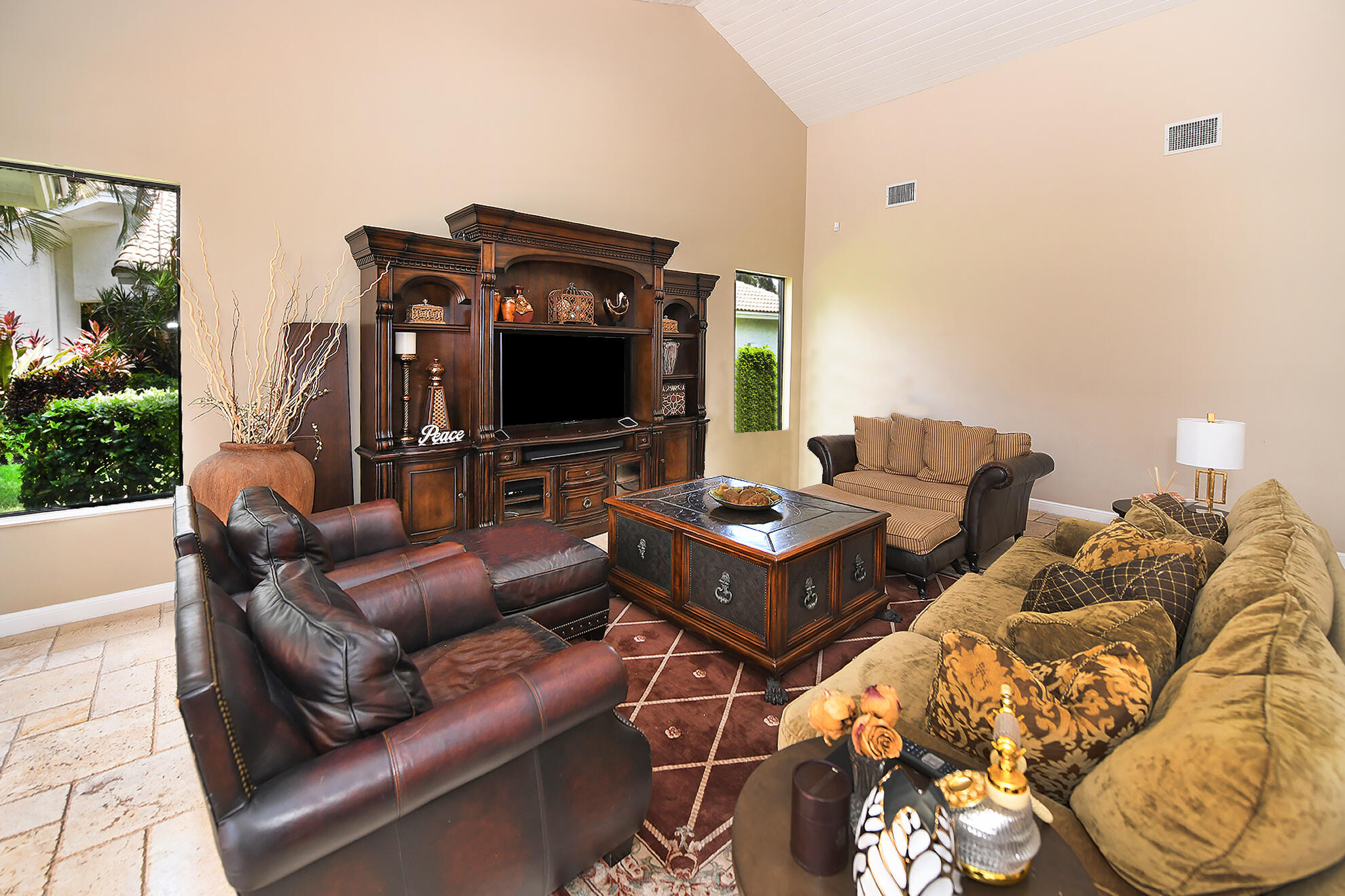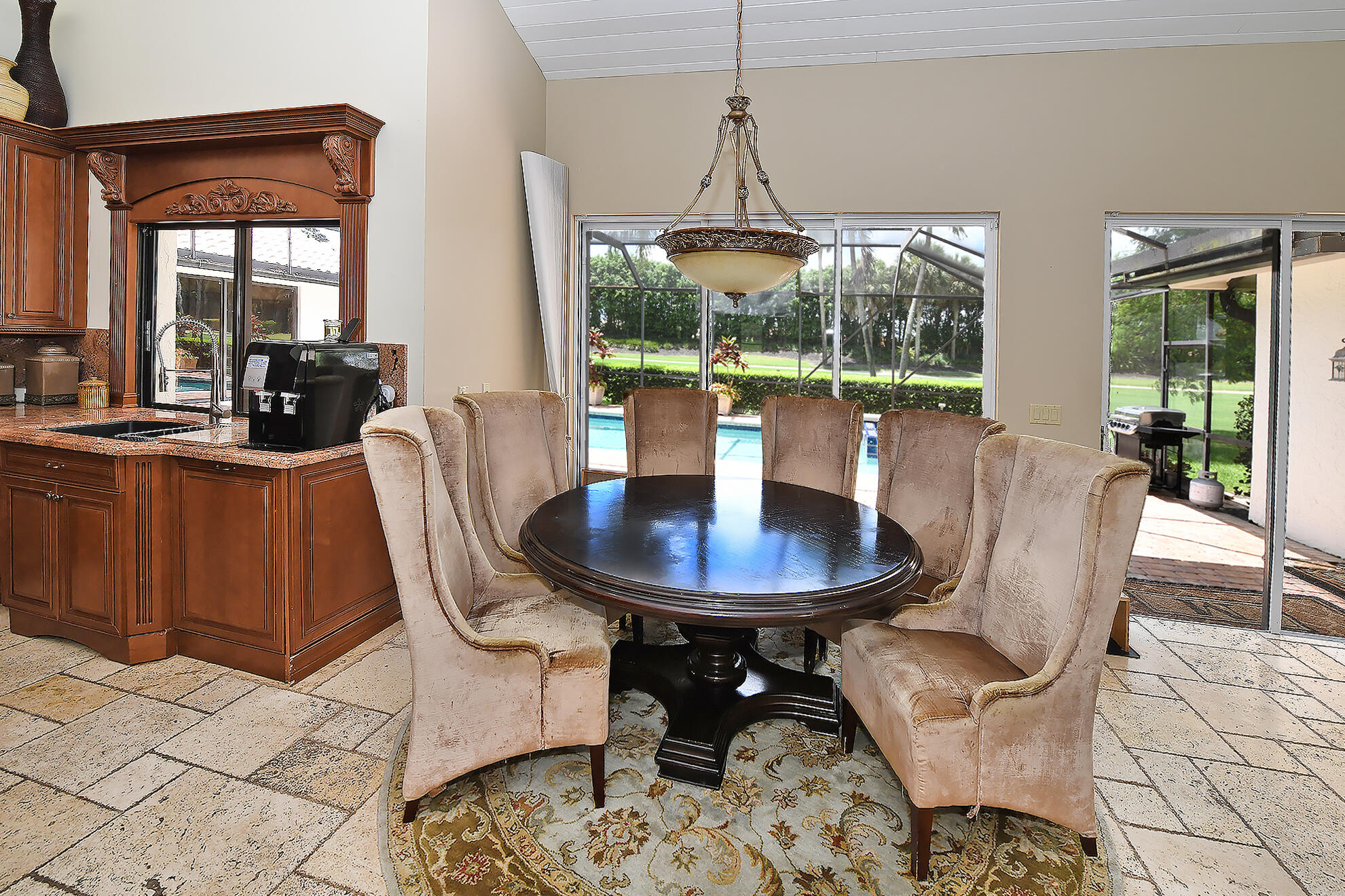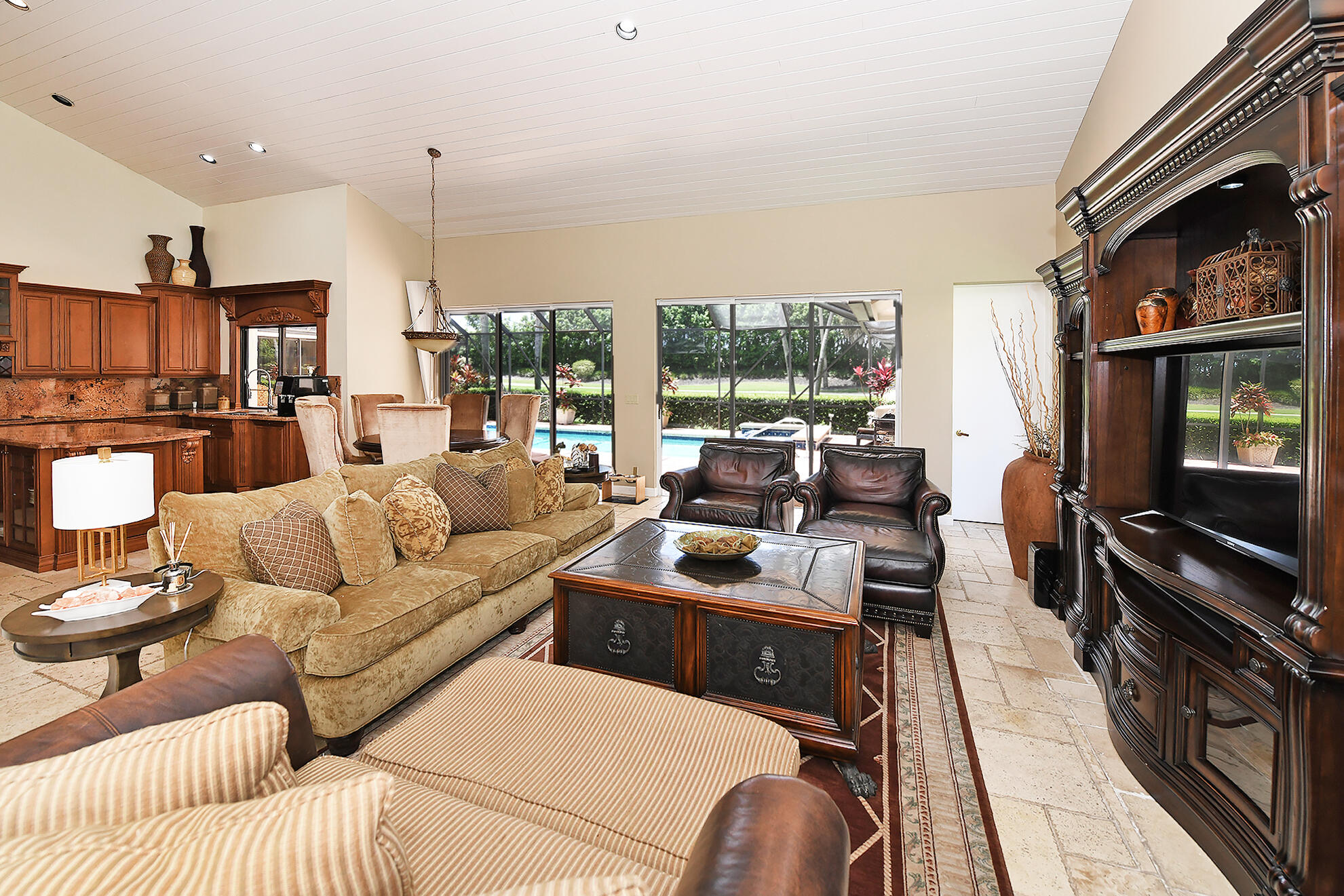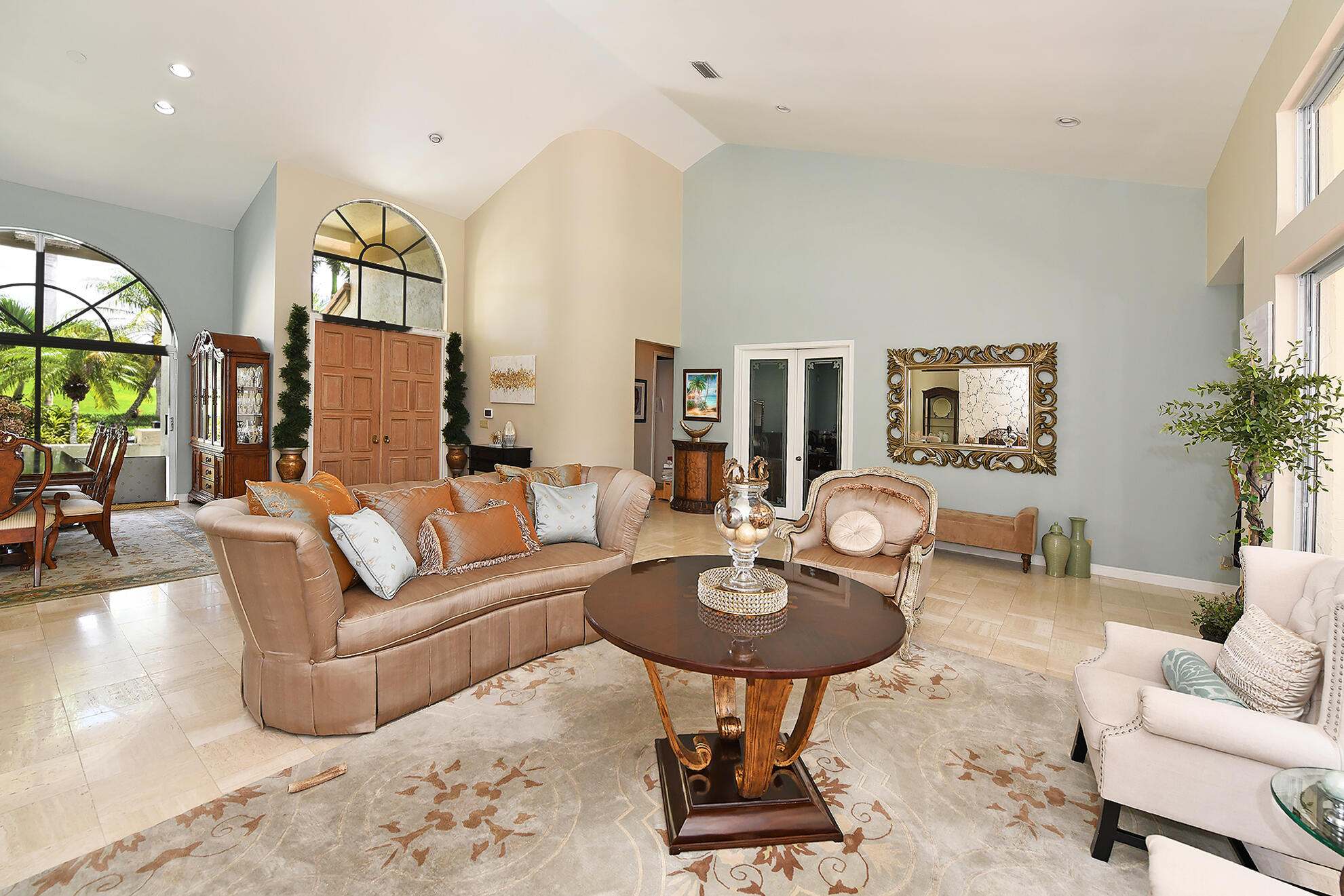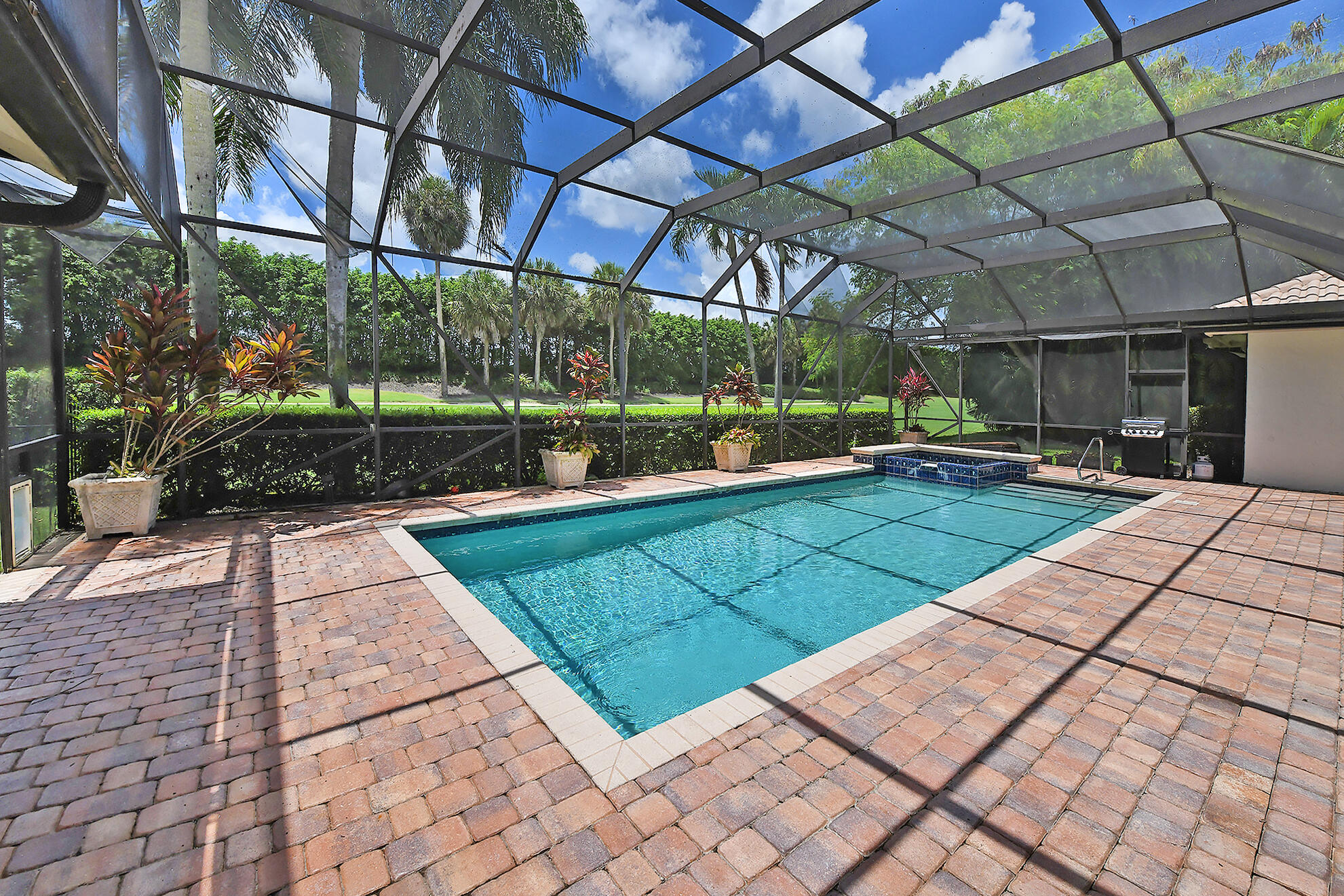 This 4BR plus office, one story residence with southern exposure and no front or rear neighbor, is just s short distance from the clubhouse and new pool/fitness area. The home features volume ceilings, plenty of natural light, marble floors, and a custom built office. The open floor plan is perfect for entertaining and the split bedroom plan allows for privacy. The kitchen has granite countertops, a large center island and built-in Miele coffee bar. The screened-in patio lends itself to indoor/outdoor living and the resort style pool with raised spa and lush foliage creates a perfect retreat for relaxation or gatherings. The home is in close proximity to great shopping, fine dining and houses of worship. Come and experience all that Boca Grove has to offer.