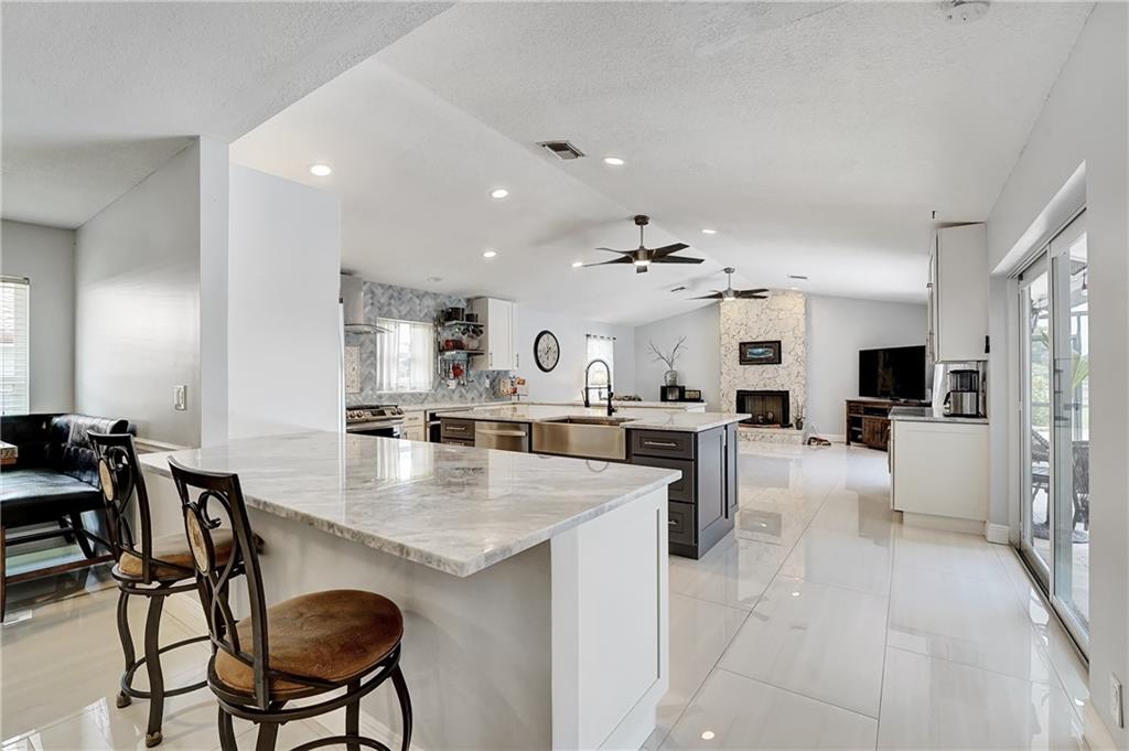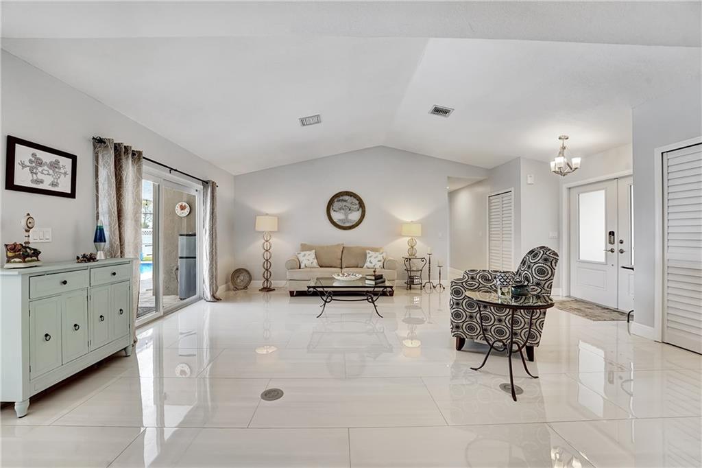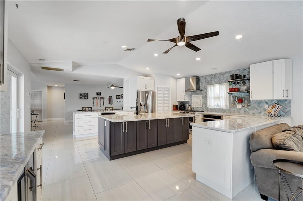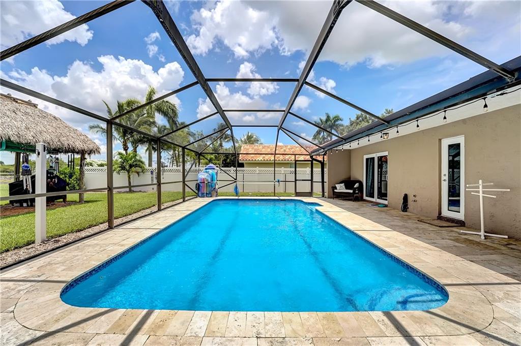 If you love to entertain this home is for you! The kitchen is amazing and truly well thought out, wet bar, breakfast bar, 3 convection ovens and a gas range all surrounding a large quartzite island, it’s adjoined by the family room with a real fireplace. Step outside to your oasis a 38x30 screened Lani, 15x30 saltwater pool with a travertine deck. Outside the Lani you have brick paver patio, fire pit, 15x8 tiki hut with awesome canal views. The entire home has porcelain tile, all the bathrooms are updated, the master bath has a separate tub and shower, you will not find another home this open and updated on the market. Located in Cypress Glen close to all the shopping you would need. This one is ready to go to its new owner and does not need a thing.