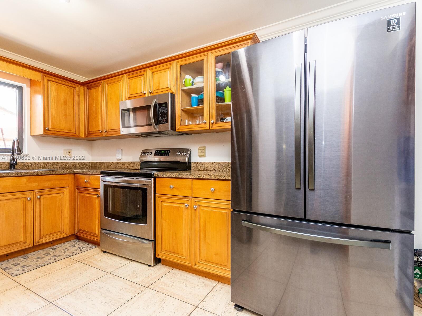 Corner unit with 3 bedrooms and 2 bathrooms with 1 bedroom and 1 full bathroom downstairs. The house has impact windows, new roof, wood floors downstairs and carpet in the bedrooms, granite countertops, stainless steel appliances. Big screened patio with wood deck and fenced backyard.