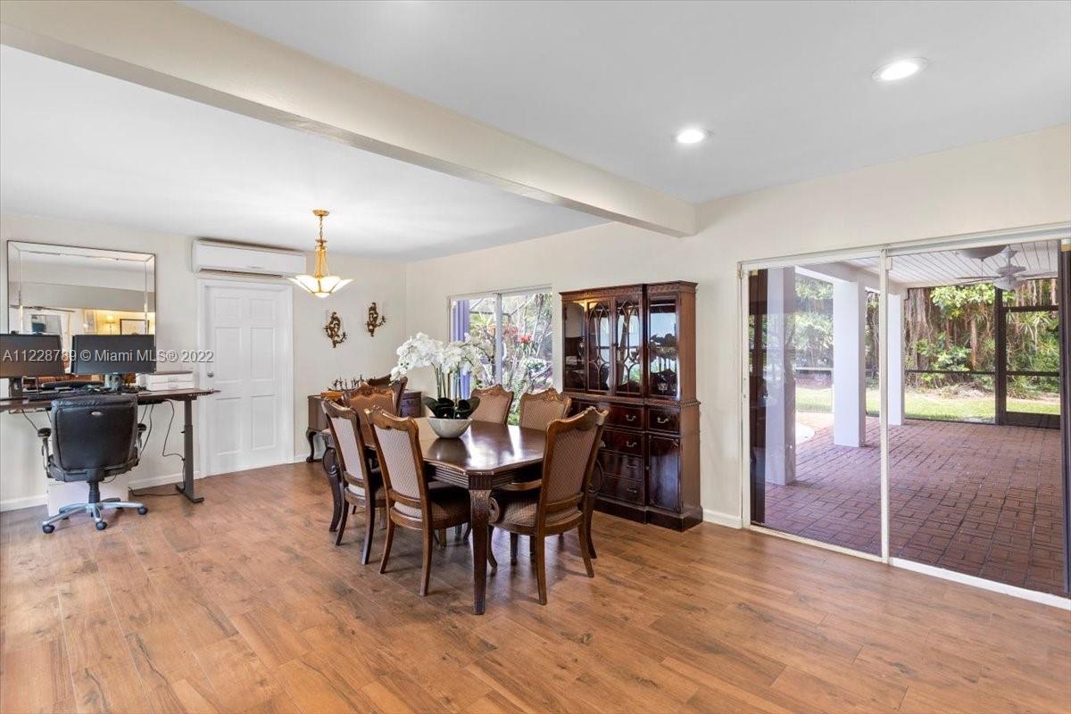 Picturesque Pinecrest updated family pool home on serene street. Spacious 3/2 + office open floor plan w/2521 adj SF. Perfect for gatherings w/plenty of room leading to lush green gardens, sparkling screened pool on 15,000 SF prime central Pinecrest land. Updated kitchen w/gas stove, spacious peninsula seating adjoining family room. 2012 updated baths & primary bdrm suite w/ impact glass & private office/gym/nursery. Porcelain & wood floors, all new PVC plumb, 2020 new tile roof. Full house Gener w/1k gal propane tank. 2013 AC + split unit. Super nice curb appeal w/cir drive, 2 car gar & laundry. Comb of impact glass & accordion shutters throughout. All work permitted. Central loc w/2 min drive to all Palmetto schools, church, synagogue, markets, Pinecrest parks & Community Center nearby.