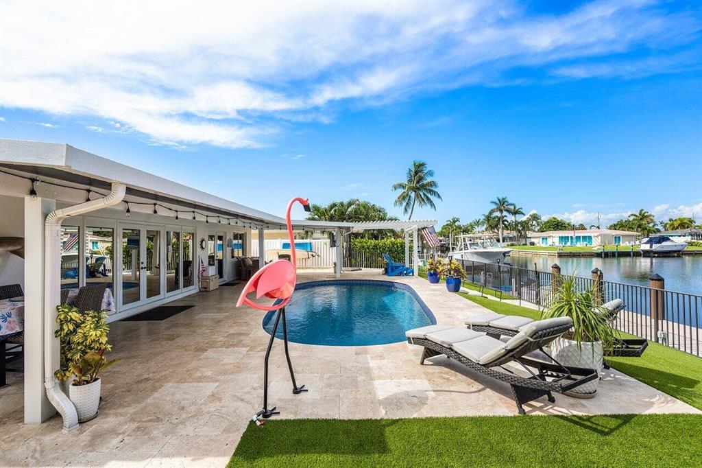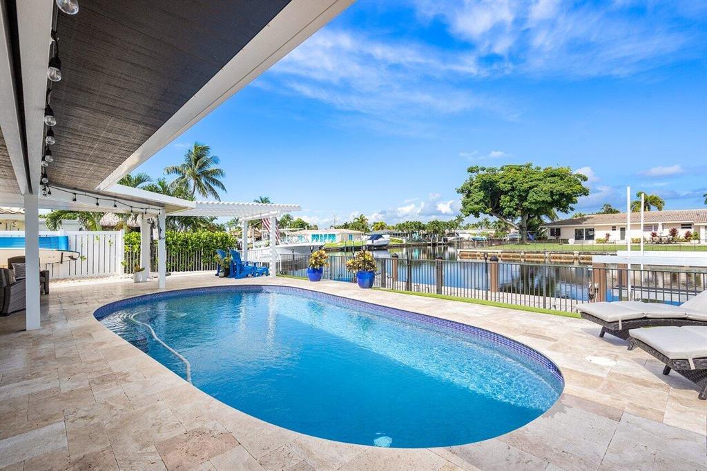 Are you looking for the perfect waterfront property, totally remodeled, 3-bedroom 3 bath home, beautiful custom Kitchen, with Quartz countertops, coffee bar & upgraded appliances with No HOA? This home features a great layout that's perfect for entertaining with an amazing indoor/outdoor flow. You will love the natural light throughout this home, provided by your brand-new hurricane impact windows and doors! Taking a sunset boat cruise to dinner, or just a short bike ride to the beach, or just lounge out at your private pool overlooking the wide intersecting canal making it so easy to pull your Boat up t your new 52'' dock with a