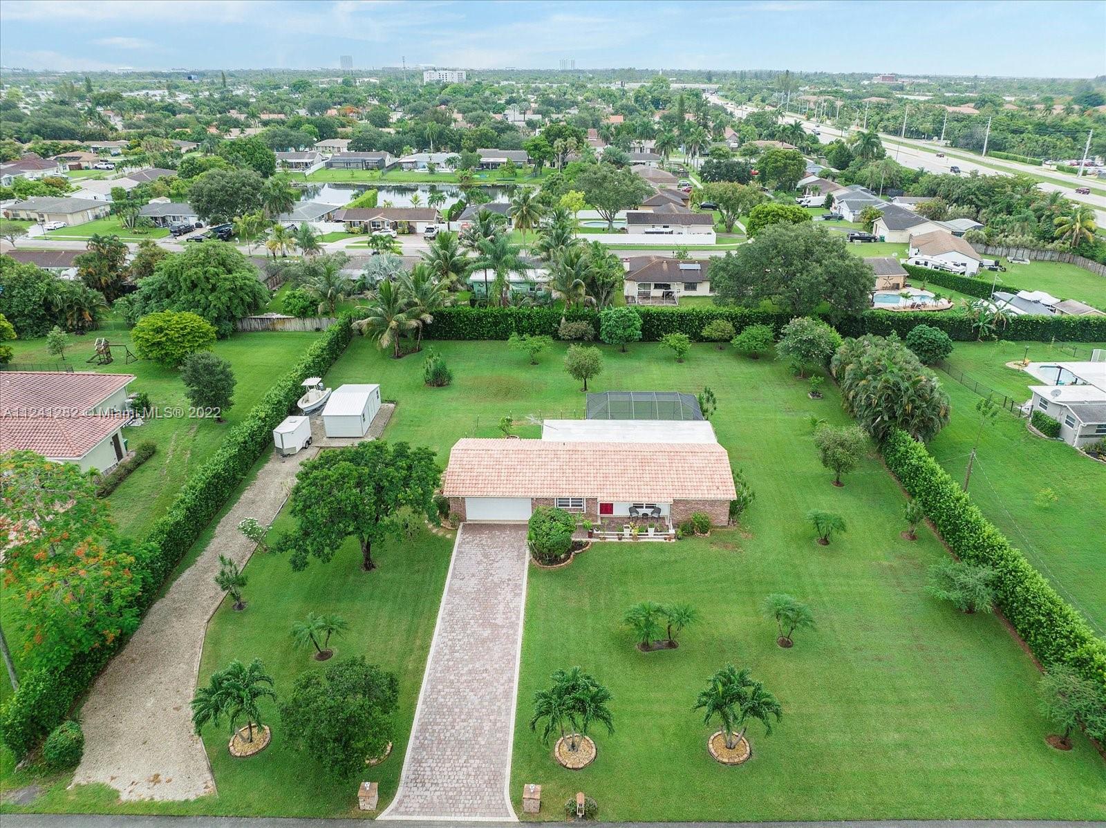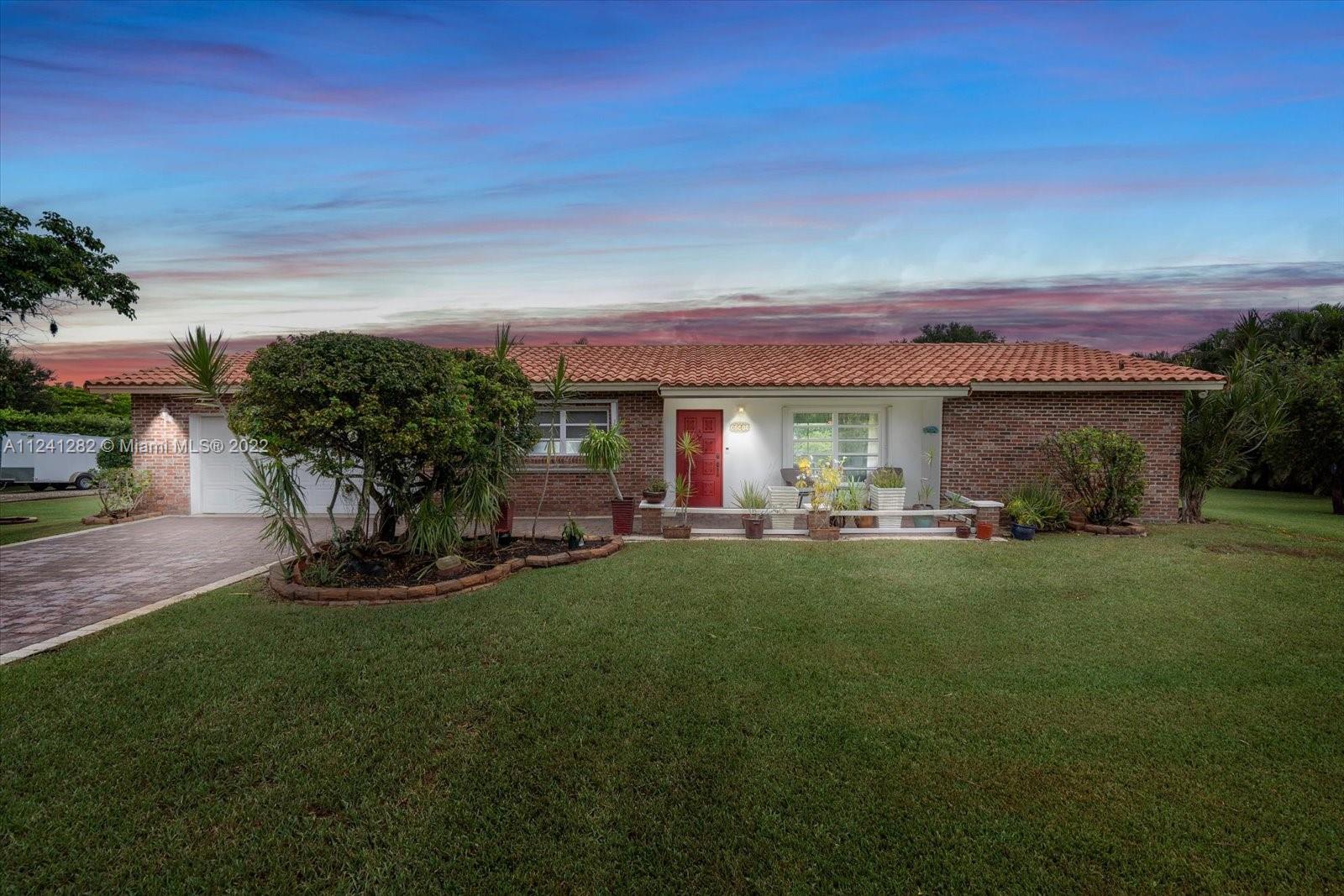 Stunner one-acre lot in Davie offers plenty of space to expand this cozy 2 bedrooms 2 bathrooms single family with screened pool. The one-story home has split floor plan, master bedroom with walking closet, hurricane impact windows, accordion shutters and impact doors. The screened backyard area offers a separate covered area so you can enjoy the pool without getting sunburned. The oversized lot features lush tropical landscaping, with fruit trees including coconut and mango trees. Storage Shed 24x12 offers extra storage space/workshop. 2 Car garage and super long driveway fit up to 6 cars and additional space to park your boat, RV, or trailer. No HOA! A hardwired generator for the whole home. New A/C, pool equipment and water softener. A+ schools. Close to I-595, restaurants, and shopping