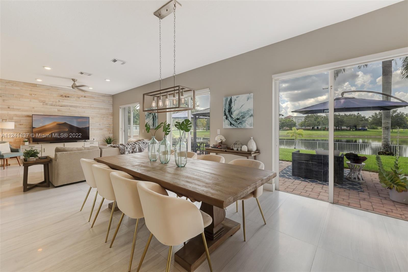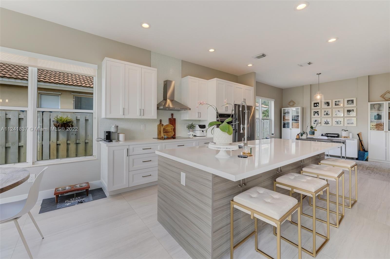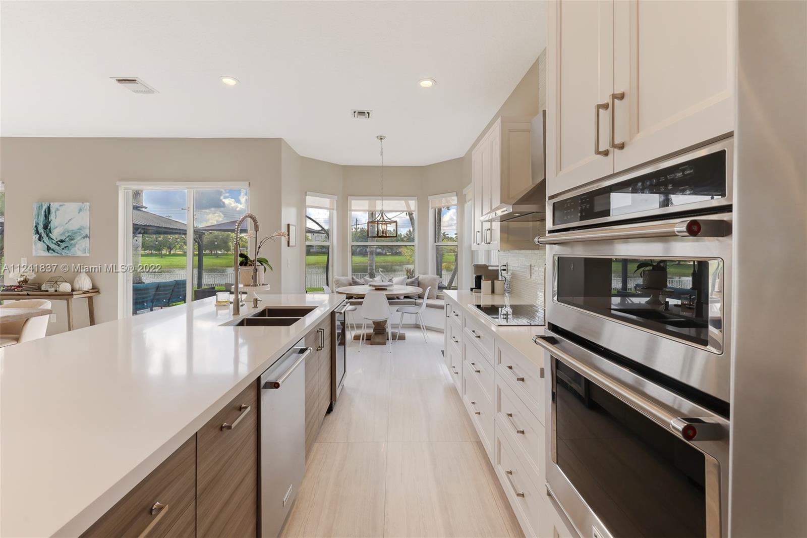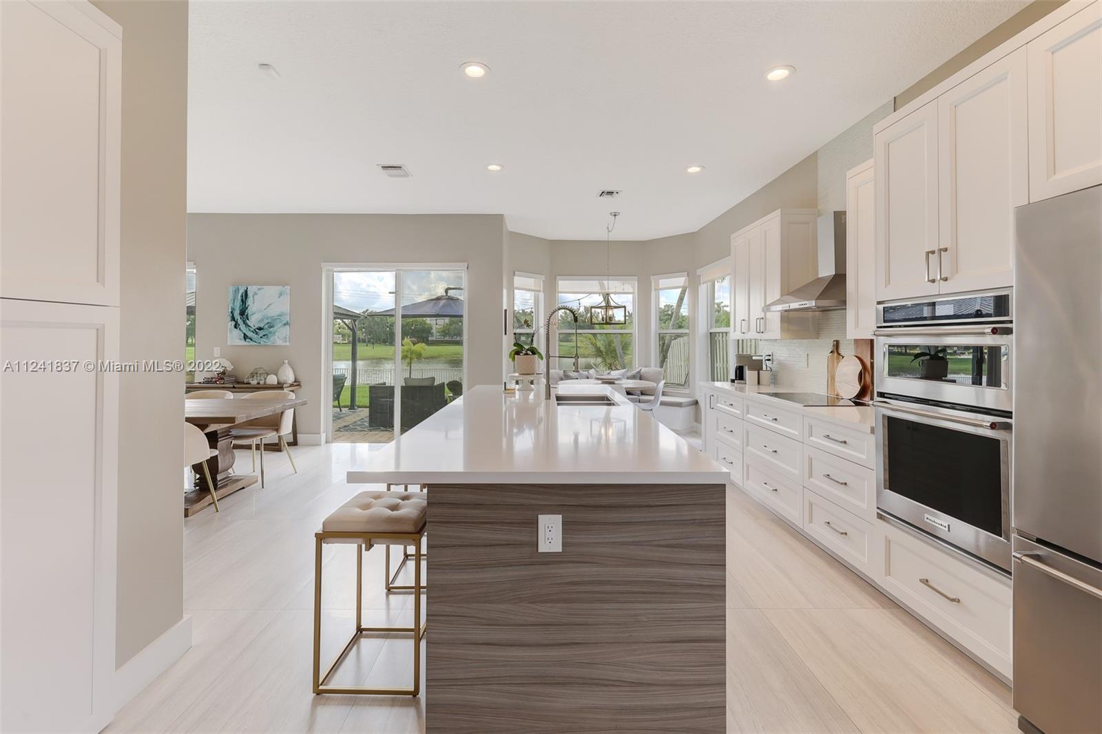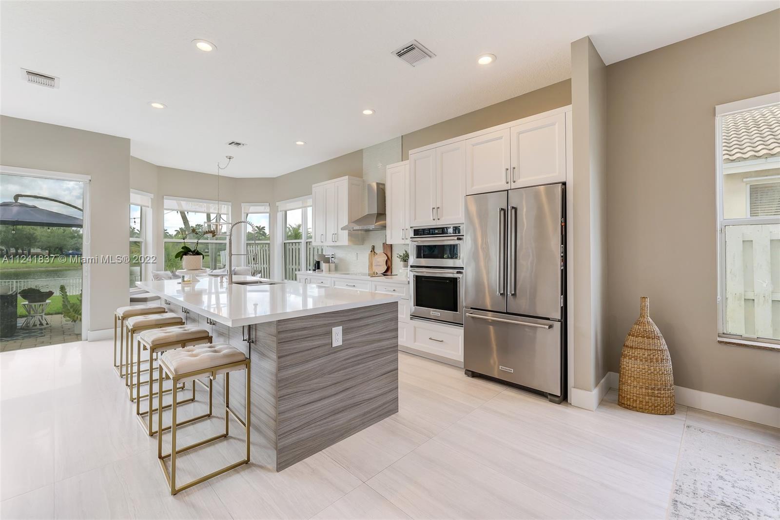 Beautifully remodeled open concept lake home has lake view from every room downstairs. The home features 24X48 Porcelain tiles throughout the first floor, Kitchen has 42in wood cabinets, quartz counter tops, glass tile backsplash, hood is vented outside, soft close drawers and cabinets with Kitchen Aid appliances and huge custom island with storage on both sides, custom built in seating storage in breakfast area and new recessed lighting throughout kitchen. Could you imagine the family gatherings. Off the kitchen you have an office area and a custom laundry room w/ Maytag washer & dryer. Going upstairs you have custom built wood staircase and when you get upstairs you have Bamboo floors, 4 bedrooms w/ customs closets and the 2 1/2 bathes have been remodeled with wood cabinets & quarts.