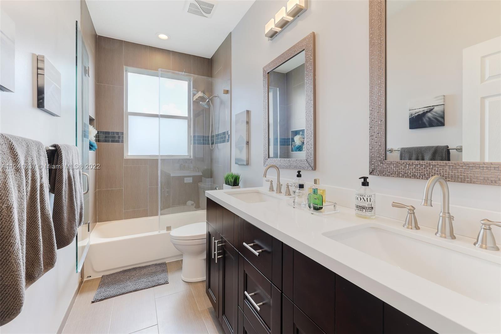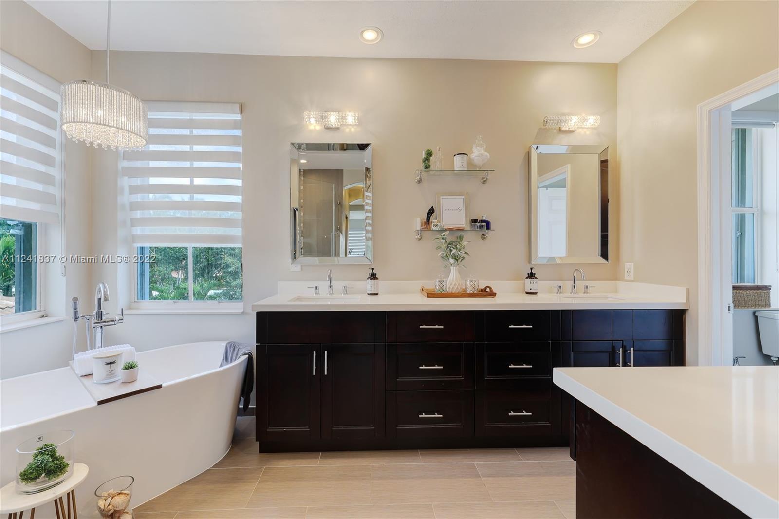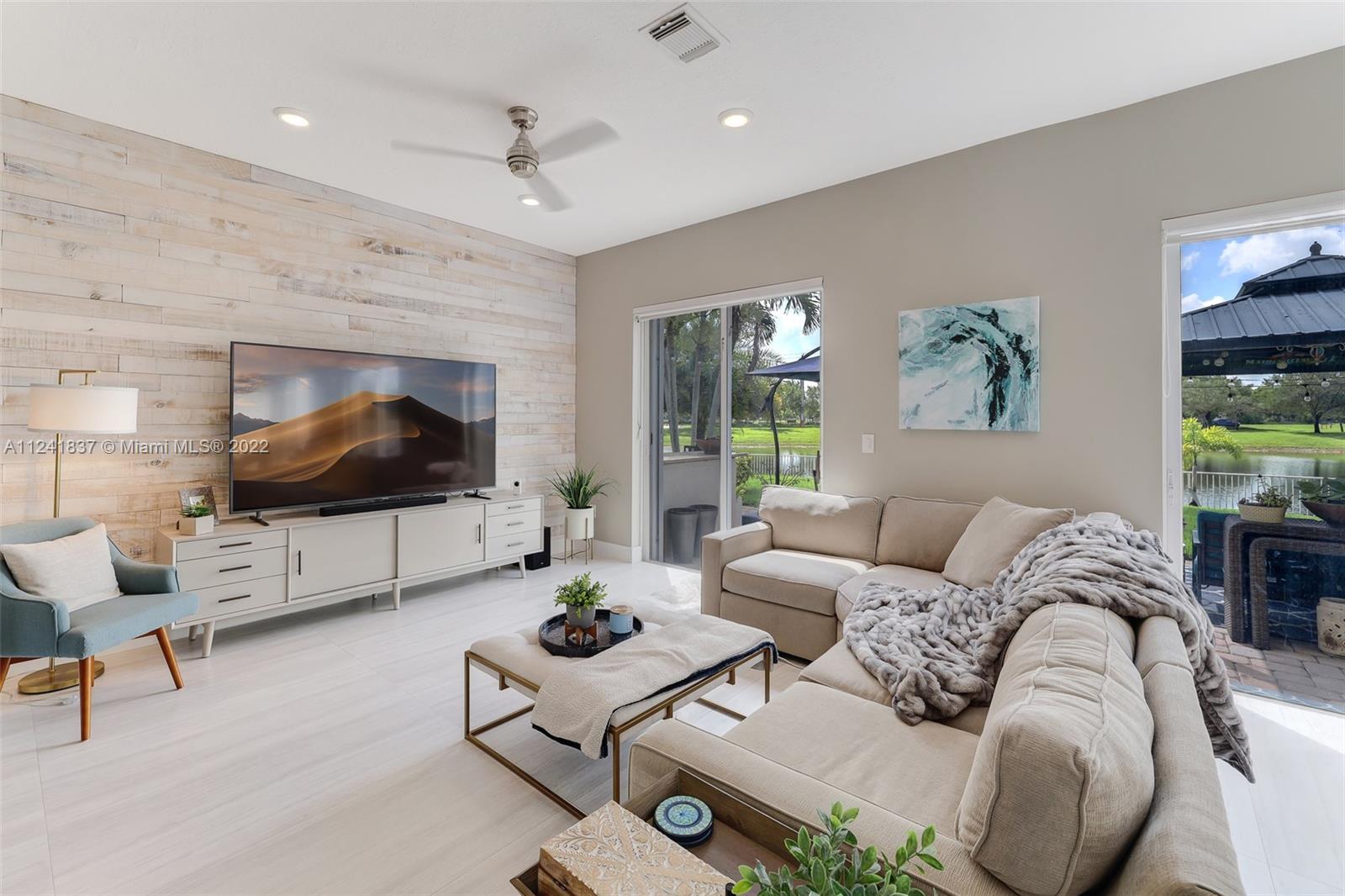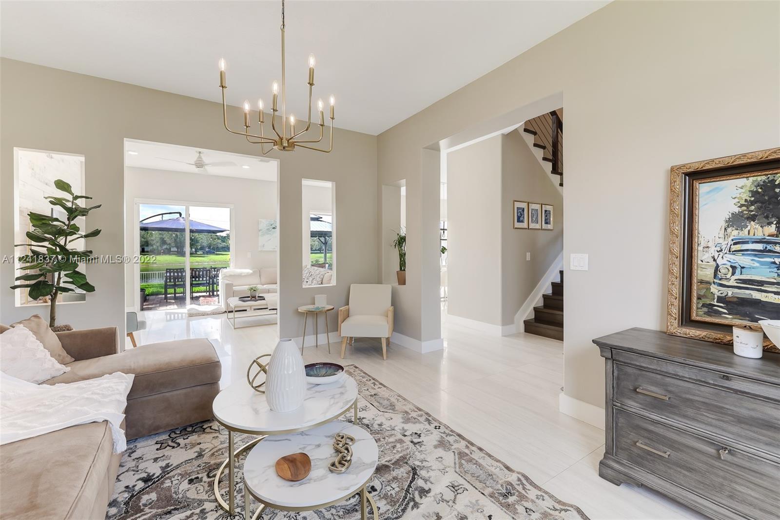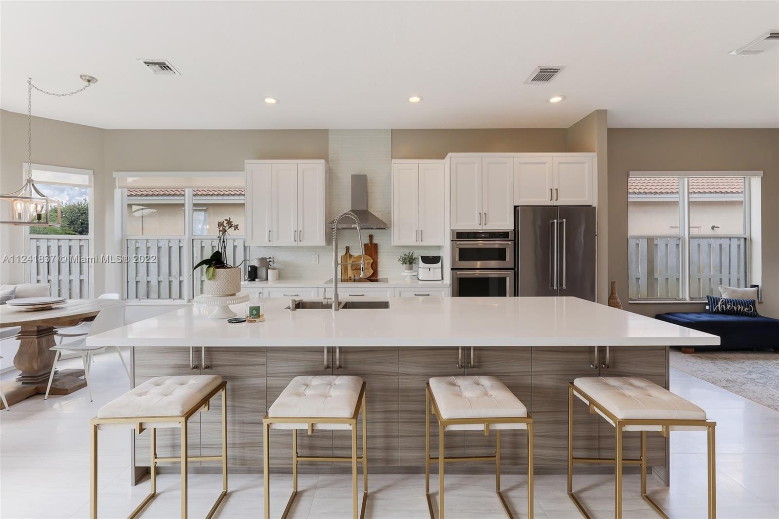 Beautifully remodeled open concept lake home has lake view from every room downstairs. The home features 24X48 Porcelain tiles throughout the first floor, Kitchen has 42in wood cabinets, quartz counter tops, glass tile backsplash, hood is vented outside, soft close drawers and cabinets with Kitchen Aid appliances and huge custom island with storage on both sides, custom built in seating storage in breakfast area and new recessed lighting throughout kitchen. Could you imagine the family gatherings. Off the kitchen you have an office area and a custom laundry room w/ Maytag washer & dryer. Going upstairs you have custom built wood staircase and when you get upstairs you have Bamboo floors, 4 bedrooms w/ customs closets and the 2 1/2 bathes have been remodeled with wood cabinets & quarts.