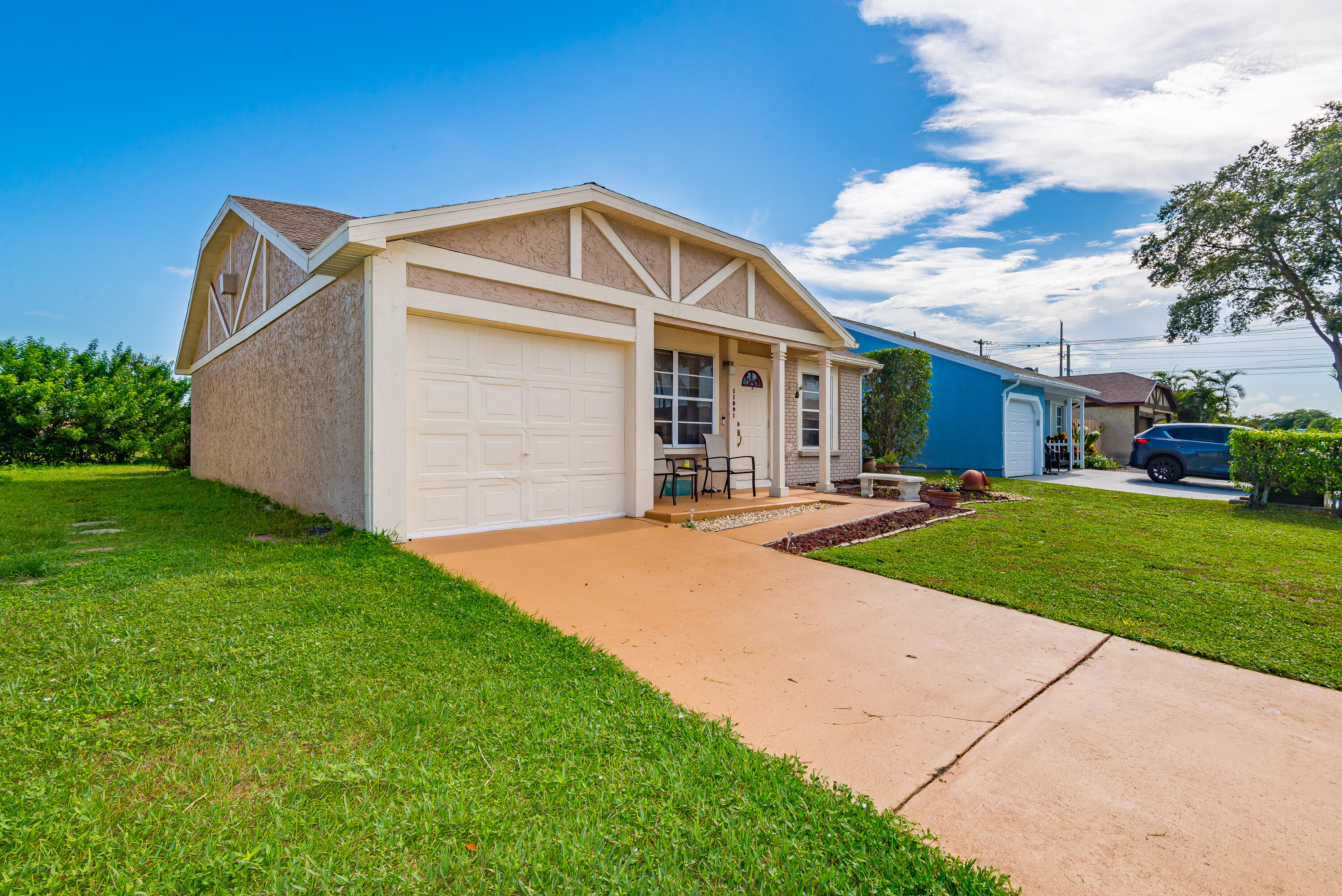 PERFECT WEST BOCA 3 BEDROOM 2 BATH HOME IN SOUGHT AFTER TUDOR WOODS. THIS IS A QUAINT COMMUNITY OFFERING BASKETBALL, PLAYGROUND, AND COMMUNITY POOL WHICH IS LOCATED AROUND THE CORNER FROM THIS HOME. *A* RATED SCHOOLS. HOME HAS VAULTED CEILINGS, EAT IN KITCHEN, GRANITE COUNTER TOPS, TILE FLOORS, NICE SIZED BACK YARD, COVERED SCREENED IN PATIO, FULL SIZE WASHER/DRYER ,AND ONE CAR GARAGE. LOW HOA FEE. CLOSE TO HIGHWAYS, SHOPPING AND DINING.