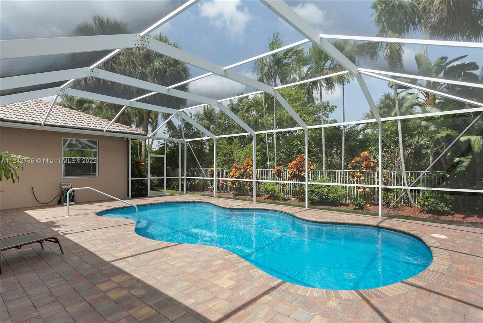 Create lasting memories in this fabulous one-story residence on one of the most sought after prestigious gated community Country Glen. 4 bedrooms plus Den 3.5 bathrooms, 3 car garage pool home features an open floor plan perfect for families & entertaining. You'll love the lush manicured yard complete w/ a paved, screened in patio & sparkling salt water heated pool perfect for entertaining. Deluxe Main Bedroom suite w/ spacious sitting area, big closets. Gleaming oak wood floors in all of the bedrooms & tile floors throughout the living areas. The gated community offers 24/7 security w/ parks, tennis, & basketball courts. The finest public & private schools close by as well as parks,& shopping.Property is ready for new owners to move in right away. Open House 8/21 present ID & address