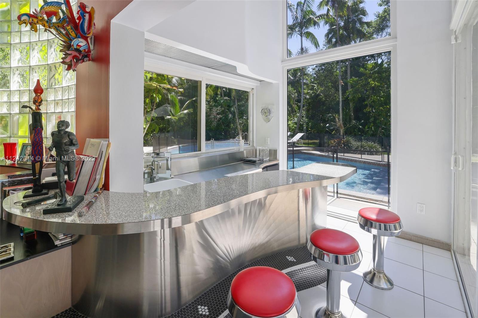 A contemporary modern masterpiece awaits in a perfect setting in the majestic Hammock Lakes guard gated community. This rare, lush property of almost an acre, has many remarkable native hammock trees & rock formations. The home is spectacular with a curved sensibility, volume ceilings, a modern sprawling kitchen, and an expansive living room with floor to ceiling windows looking out to serene views. See floor plan for multi-level layout w/room for an elevator. Two bedrooms are on the bottom floor, including a housekeeper room. Upstairs are 3 additional spacious suites plus bonus loft home office, including a private master suite w/ balcony. This well-maintained home has a gas generator. Once featured in South Florida magazine and on Miami Vice TV series, the property is simply delightful.