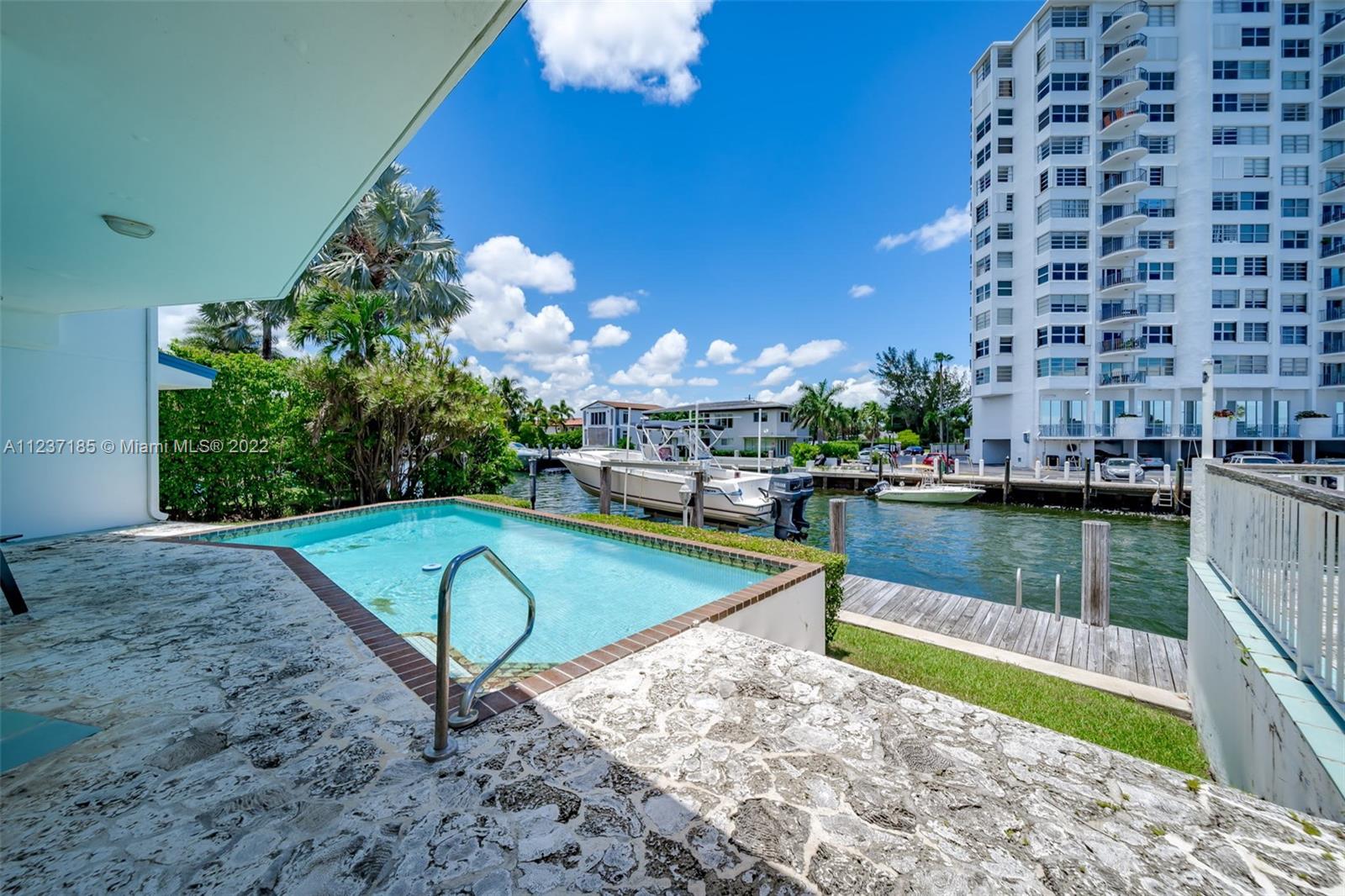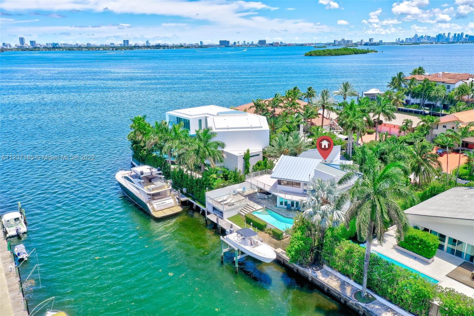 Canal front home located in the 24 hour guard-gated community of Sans Souci Estates. This distinctive residence has 4 large bedrooms, 3 baths, family room with access to the waterfront pool, office / den, spacious eat-in kitchen with cooking island, giant master suite with walk-in closet, formal living and dining rooms, and 2 car garage. Outside, you are just one house from the bay with wide water views, wrap-around balcony, pool, dock, boat lift, and direct ocean access just minutes away with no fixed bridges. While the neighborhood is peaceful, secluded, and secure - Miami Beach, Bal Harbor, Aventura, Wynwood, Design District, downtown Miami, shopping, and restaurants are all close by. This is the perfect home for South Florida living.