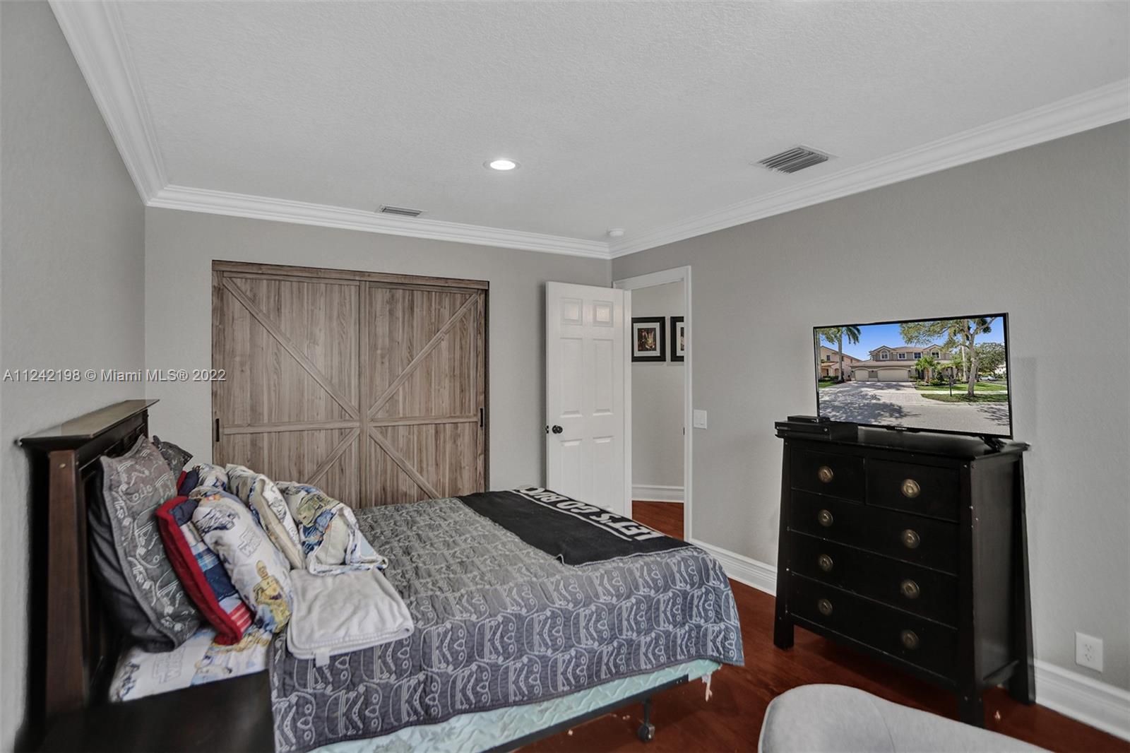 HIGHLY RENOVATED FROM TOP TO BOTTOM. MODERN WHITE KITCHEN W/ BRAND NEW 2021 STAINLESS STEEL APPLIANCES, QUARTZ COUNTERTOPS, AND DECORATORS BACKSPLASH. 24X24 WHITE PORCELAIN FLOORING IN LIVING AREAS. DOUBLE FRENCH DOORS LEAD TO A PRIVATE YARD, FULLY FENCED W/ PVC PRIVACY WHITE FENCE AND SPACIOUS PATIO. FULL BED AND BATH FIRST LEVEL. ALL BATHS RENOVATED IN A CONTEMPORARY STYLE. OVERSIZED OWNER'S SUITE W/ SITTING AREA AND LUXURIOUS BATH, VESSEL TUB, AND SHOWER. WOOD FLOORS IN ALL BEDROOMS. FRESHLY PAINTED INTERIOR. GRAND TWO-STORY LIVING ROOM, EXTENSIVE CROWN MOLDINGS, WAINSCOTING, AND PLANTATION SHUTTERS. THREE-CAR GARAGE W/ EPOXY FLOOR. FRESHLY PAINTED EXTERIOR. HURRICANE PROTECTION. 2 BRAND NEW A/C 2022. WALK TO THE COMMUNITY POOL AND SCHOOLS. GATED COMMUNITY.