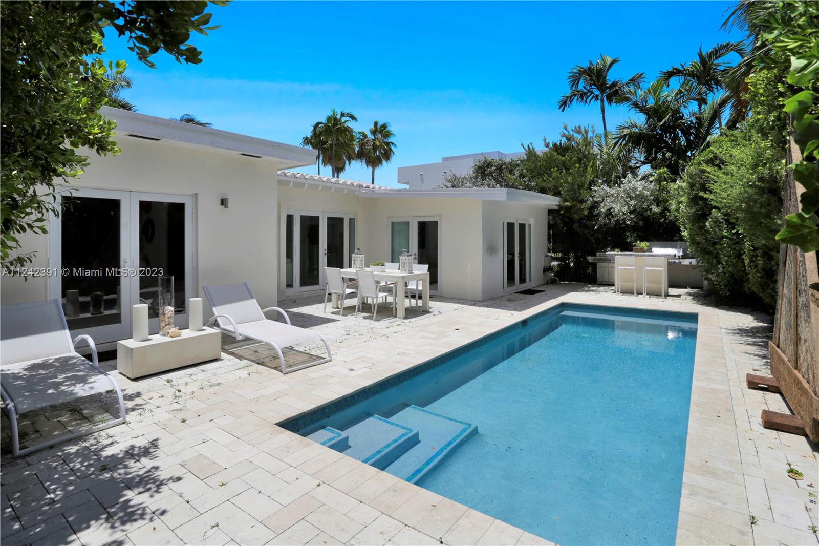 The hidden Oasis! Its a Jewel. With 4 BR 2 Baths this dazzling Designer Home blends itself beautifully to a variety of Decors from mid-century modern to more exotic looks from different regions of the Globe. It is a collective Fusion which creates a warm whimsical Environment that you can call home. Enjoy chilling on the Pool with multiple fountains, having BBQ on the Patio with Friends. Enjoy entertaining Evenings from the open Kitchen and Dining Area looking out to the expansive Pool Area. This house will be your wonderful retreat.