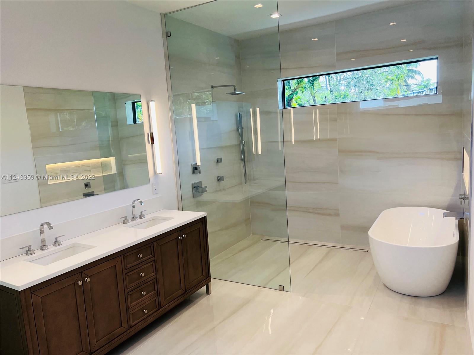 Transforming Miami into a New Level of Leisure. One of a kind 2022 new construction move in ready home located in a peaceful street in the heart of Pinecrest. Over 4K sq feet in a 0.5-acre lot featuring 4 ample bedrooms with modern design bathrooms ensuite and a powder room. Vibrant and luminous open spaces with 10 ft ceilings. The aesthetic is warm whites and rich woods rooted in the essence of graceful minimalism. Masterful selection of fine fixtures and finishes: contemporary gourmet open kitchen, oversize island finished with handpicked natural stone; fully equipped with luxury Thermador® smart appliances, dual zone wine cooler, handcrafted cabinetry, ambient lighting throughout the home. Exterior lounge, summer kitchen, turquoise 16 X 37 pool with a saltwater system and Baja shelf.