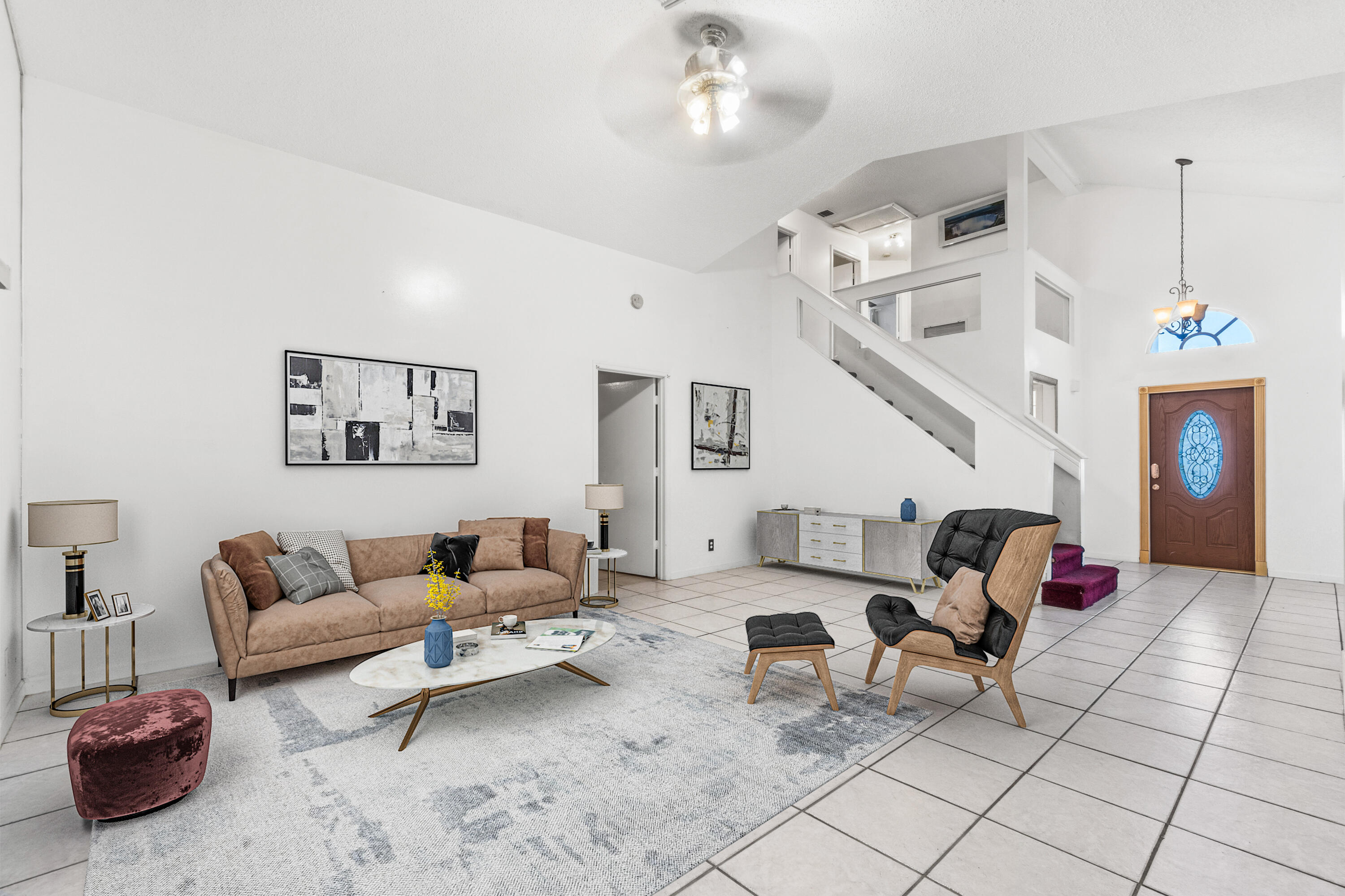 Great investment opportunity! Home is currently being rented out at $3,000/month until September of 2023.This CBS two-car garage home is one of the largest in the highly desired gated community of Foxhall! Vaulted ceilings make this home bright and spacious, while the screened in patio area and fourth bedroom with a split floor plan leaves plenty of room for the whole family to enjoy. The home boasts a new A/C, water heater as well as all new appliances, all still under warranty. Foxhall is a wonderful family-friendly neighborhood with a low HOA that includes high speed cable/internet, community pool, a dog park and playground. This is all just minutes away from from the PBI airport, I-95, Turnpike, Beaches, WPB Ballpark, Golf courses, fine dining and world class shopping.