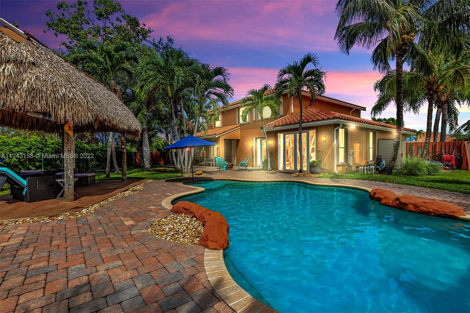 Premier property with one of the largest lots in the Encantada gated community. Brand NEW roof and gutters, exterior paint and landscaping updated in 2021. Resort style backyard - tiki hut w/ new roof, inground saltwater pool, oversized patio – great for entertaining! Kitchen includes top of the line appliances, breakfast nook, amazing pantry w/ custom shelving and separate laundry room. Spacious downstairs includes primary bedroom suite with 2 large closets and luxurious bathroom, office work station, and living room with electric fire place. Upstairs offers 4 bedrooms, 2 full bathrooms and loft area. 3 car garage! Entire interior was remodeled less than 3 years ago to include all the bathrooms, kitchen, and floors. Do not miss this opportunity to own a piece of paradise.
