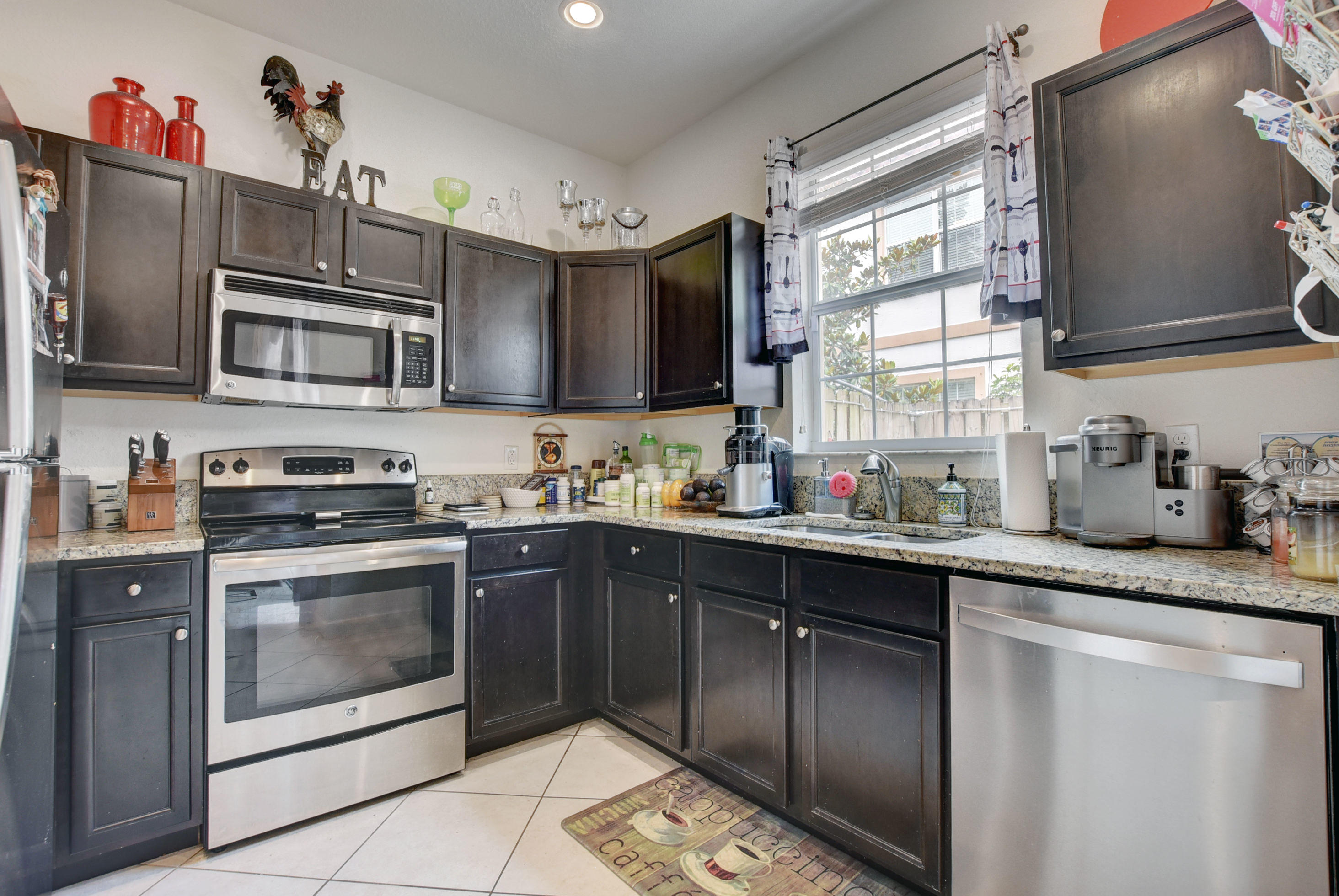 Beautiful 3 Bedroom 2.5 Bath 1 Car Garage and Kitchen updated with stainless steel appliances, and open floor plan with all wood cabinets and granite countertops, tile floors, carpet upstairs, fenced in private paved backyard.