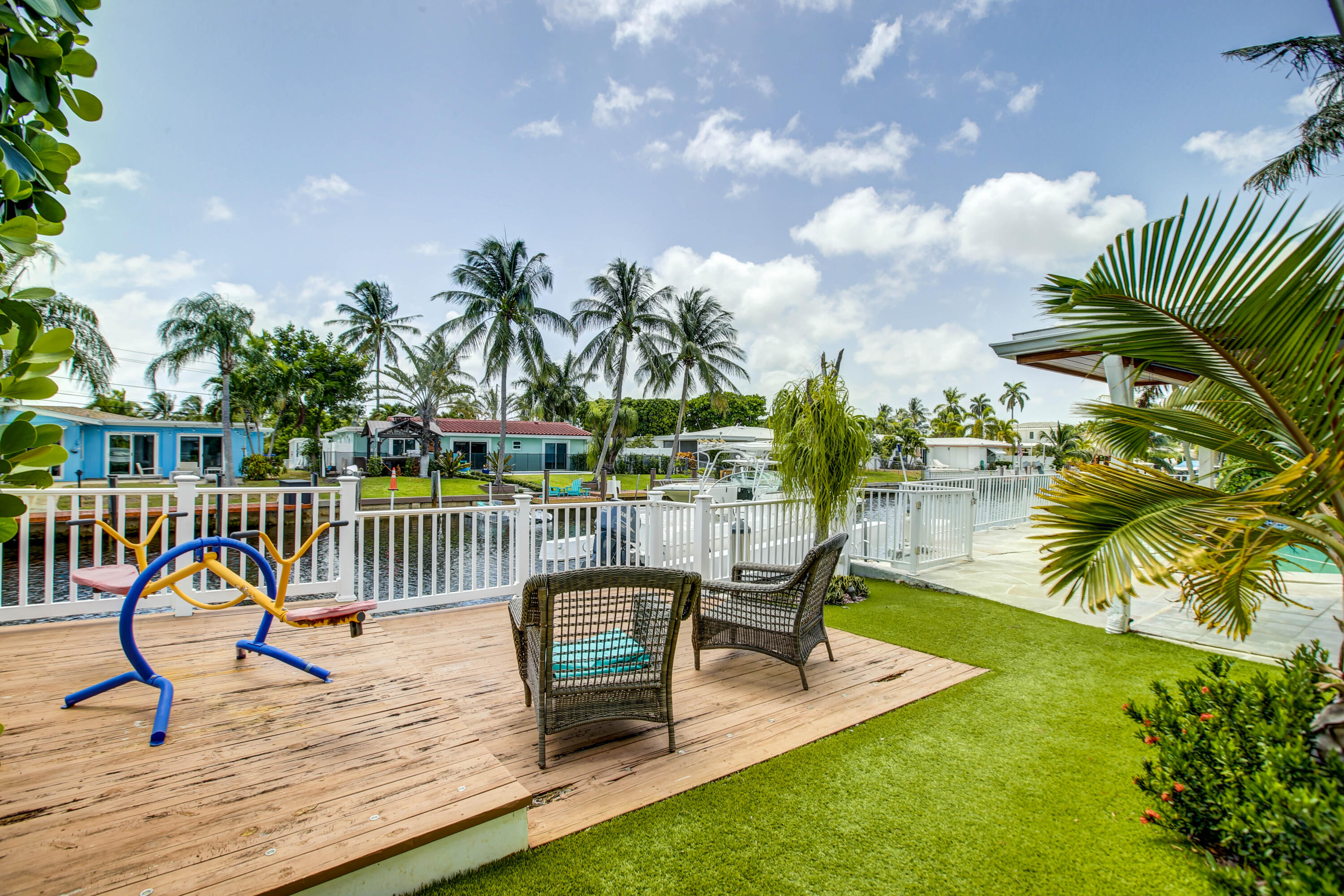 Experience the elegance of this beautifully renovated waterfront home with private pool and 70' waterfront with ocean access. Every detail has been considered for your comfort and convenience including newer dual AC system and high-end fixtures and finishes throughout. Gorgeous kitchen features Shaker-style cabinetry, granite countertops, tile backsplash and stainless steel appliances. Huge owner's retreat features seating area, walk-in closet, and spa-like en suite bath with double-sink vanity and step-in shower. Spectacular waterfront pool deck features covered terrace; new dock and expanded deck areas offer plenty of room for dockside entertaining. Circular drive with double-bay garage offers added convenience. Exceptional location close to shopping, dining, and recreation.