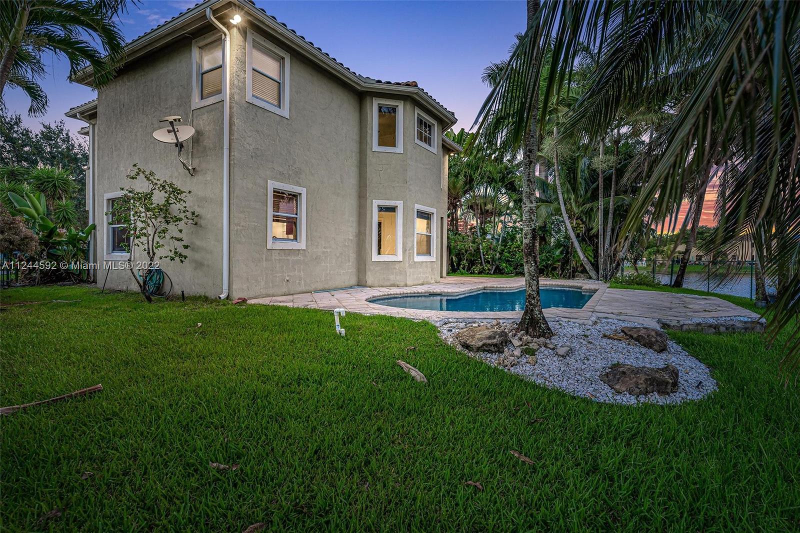 OPEN HOUSE SUNDAY 11 to 1pm! All showings will begin on that day! Beautiful home located in gated community in West Miramar. Home is located on a cul-de-sac and has a private lot with pool and lake view. Lots of windows allow for bright and airy feel. Formal living room has two story tall ceilings and showcases a beautiful staircase with wood and iron accent railings. The Kitchen is spacious and open to the family room. The backyard has a large patio decking and beautiful views of the lake! You will fall in love with the extra large master suite which includes a sitting area and spacious master bathroom and closet! You will fall in love with this house!