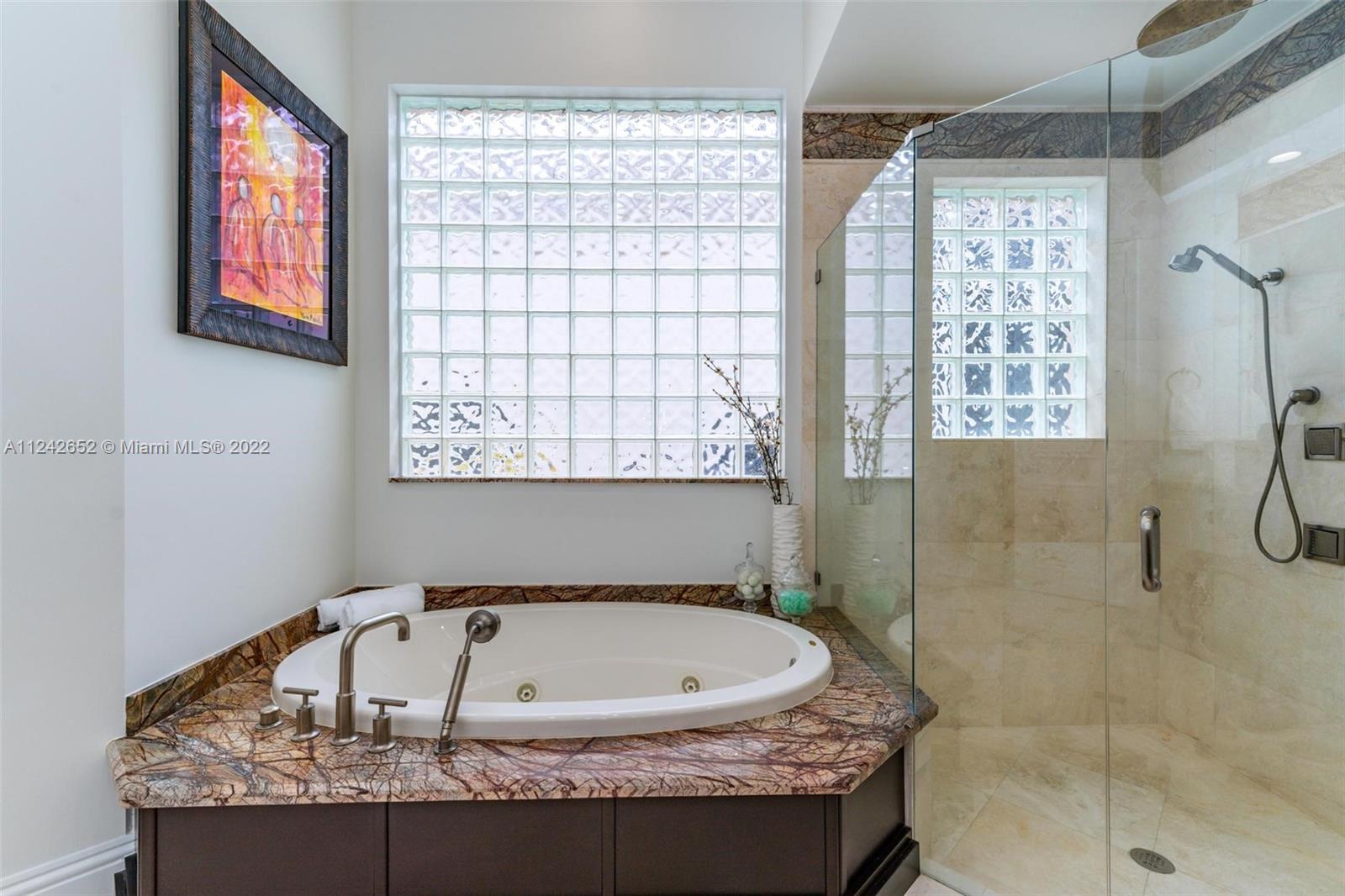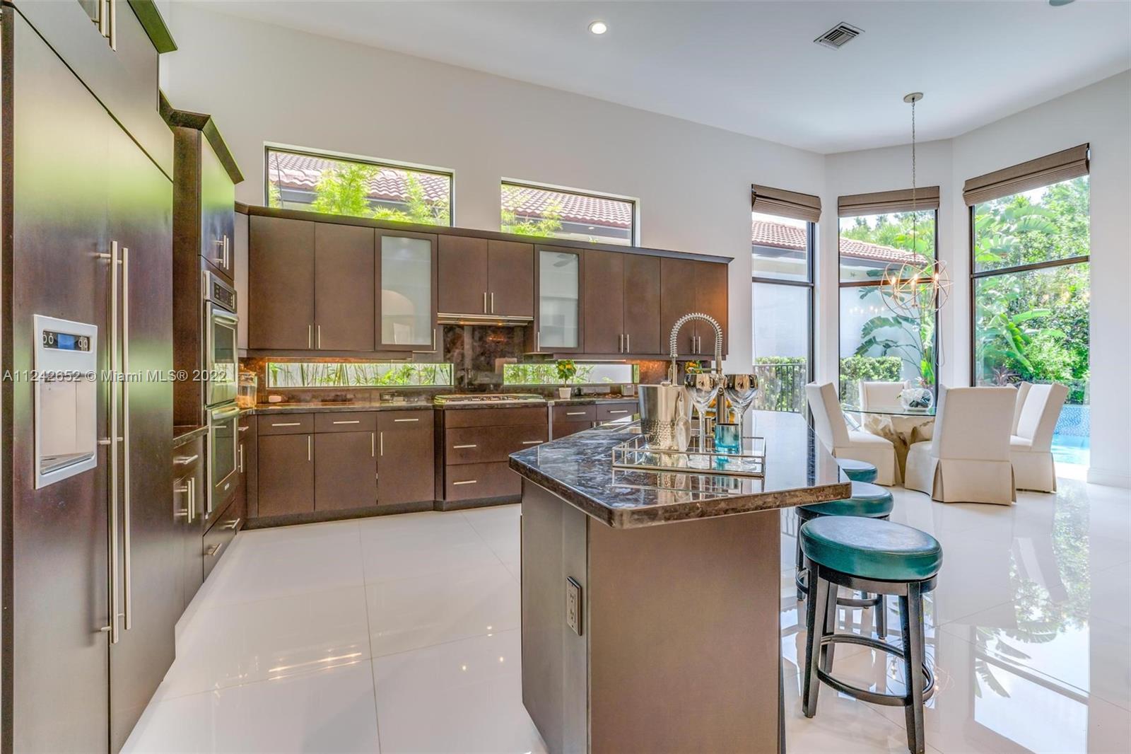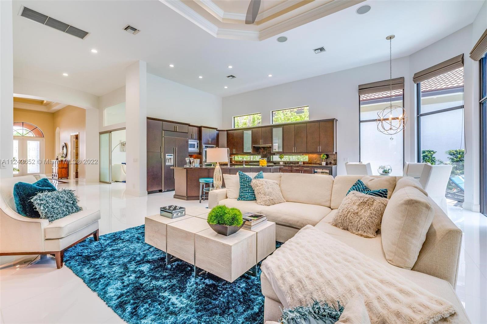 Bright and upgraded ONE story pool home with 3 en-suites, powder room and cabana bath, located at one the most exclusive communities in Boca Raton, restaurants, bars, pool, spa, tennis courts, club house, gym classes, pilates, events, truly a 5 * resort living! White porcelain tile throughout, solid wood custom cabinetry, smart home features, start of art surround system, chef's kitchen with top of the line appliances, kitchen-aid gas stove ang fridge, impact windows and doors. This beautiful house offers you volume ceilings, generous over 3,400 sqft lay-out gives you a large social area, a dedicated office and a media room, a covered patio and a waterfall pool. Maintenance is $919/M + $126 for landscape + $150 mandatory restaurant credit. Generator installed. Furniture is negotiable.