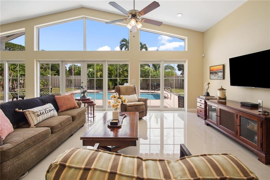 BEAUTIFUL 4-Bed, 2-Bath RANCH, POOL home with 2,200 sq. ft. *NO HOA* in highly sought-after BOCA RATON SQUARE neighborhood! 13-FOOT SOARING CEILING with WALL-OF-WINDOWS in OPEN-CONCEPT LIVING SPACE! 2-CAR GARAGE on 1/4 ACRE CORNER LOT, quiet cul-de-sac features: primarily IMPACT windows, PORCELAIN TILE, GRANITE COUNTERTOPS, STAINLESS-STEEL app, RECESSED LIGHTING, Ceiling Fans, HEATED 25-FOOT POOL & SPA, MOTORIZED RETRACTABLE AWNING (remote control). Convert to 5-bed, 3 bath with existing living space! *** A+ SCHOOLS including 2021 re-built ADDISON MIZNER ELEMENTARY (K-8) Tropical landscaping, mangos, producing banana & coconut trees. Boca Town Center Mall, Dining, entertainment, Tri-Rail, Beach and Boat Ramp all <10 minutes away, <25 minutes to 2 major airports - PBI & FLL