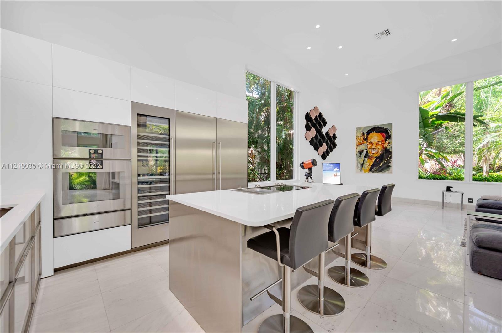 An Oasis awaits in the sought after community of Broken Sound. This stunning estate sits on over a half acre & is adorned with only the finest finishes. Step in from the imported pivoting steel doors to the lush green wonderland that embraces the pool/patio area. Another pivot leads you into the home where you are immediately taken by the soaring ceilings, open layout & natural light that cascades in through the floor to ceiling impact windows. The main house offers 3 oversized en suite bedrooms with custom finishes. Kitchen is fitted with state-of-the-art Gaggenau appliances overlooking a huge family room. Cross the patio to a beautiful pool-front guest house complete with living area, large bedroom & bathroom. Other features include 3-car garage, laundry room, imported marble, & atrium.