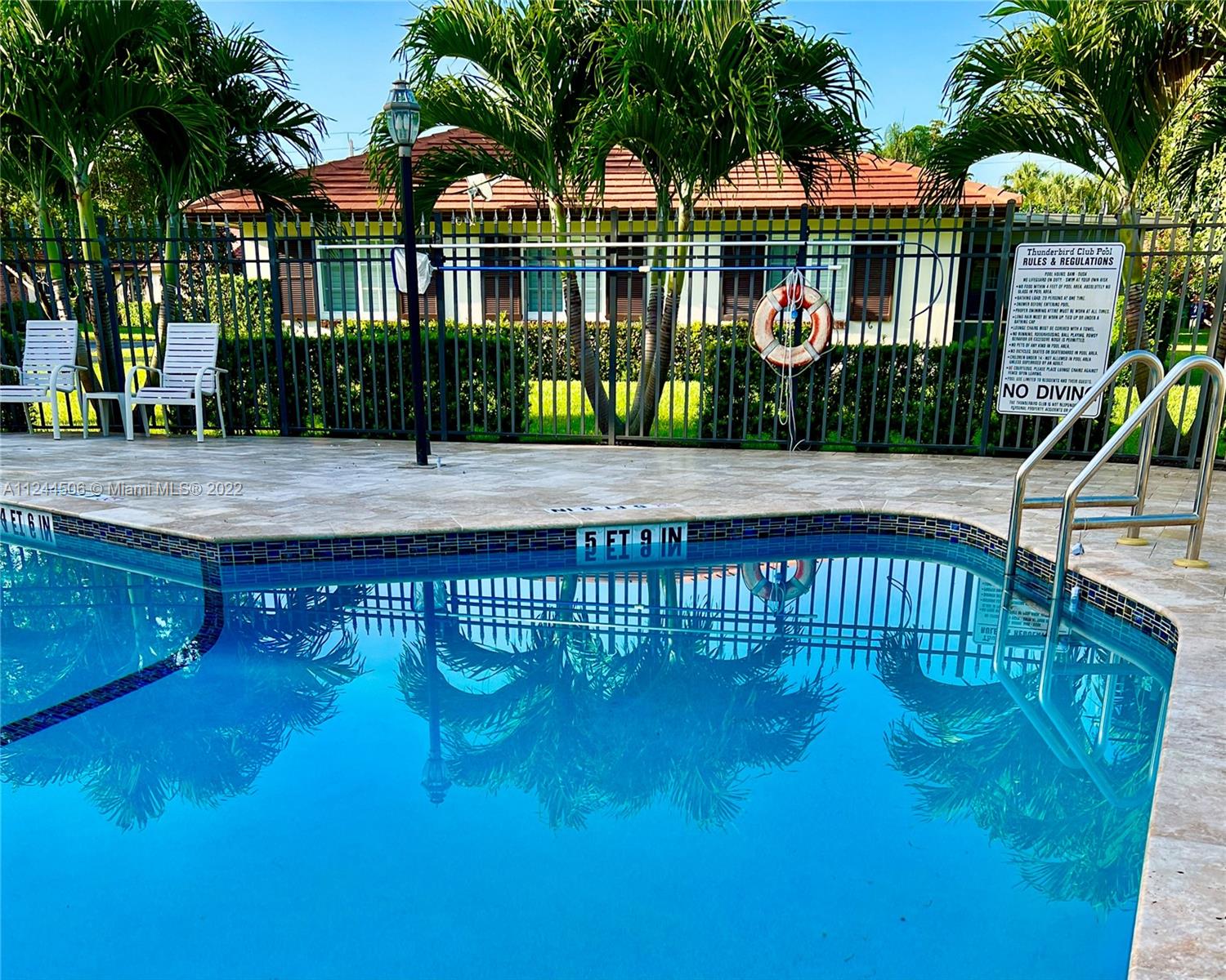 **** deal fell through***** Vintage Gem in an adult 55+ community . THUNDERBIRD VILLAS is a gorgeous, peaceful, beautifully maintained community of 32 villas, with private carports, community recently renovated heated pool & barbecue. Conveniently located, this 60’s VILLA is perfect for anyone who wants the convenience of a single family house but the ease of condo. 2 bedrooms and 2 baths, enclosed patio, an open patio for outside dining, all overlooking the relaxing lagoon complete with water lilies, fountain and lights. Beautiful terrazzo flooring under carpet in great shape. Home has upgraded impact windows and flat tile roof. Low maintenance and only $1000 capital contribution to the association, restrictions on trucks and Rv’s, 1 small pet is welcome.