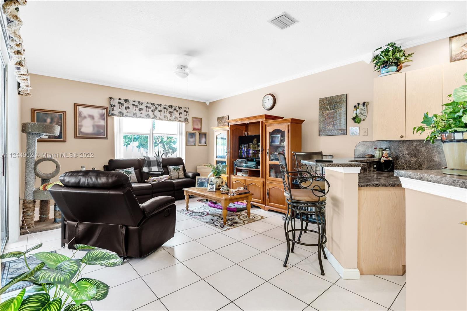 Impeccable house conditions, ready to move in! This beautiful bright and spacious home has 3 bedrooms and 2 bathrooms with 2 car garage, in a peaceful family oriented community, in Miramar. Cozy Florida room to step outside and enjoy the open paved patio. Accordion shutters throughout the entire home and brand new roof for a great insurance policy. Huge master bedroom with large walk-in closet, and master bathroom with bathtub and shower, oversized kitchen with stainless steel appliances, plus separate laundry room. Roof was redone in June 2022, new AC installed in 2019, plumbing redone in 2021, new water heater installed in 2021, entire house painted in 2020. Nearby schools are A+.