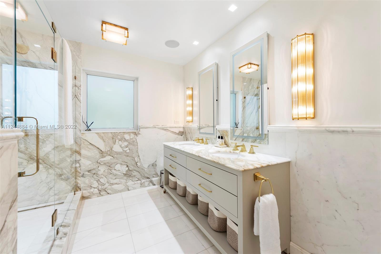 This fully remodeled, modern, 2-story, 5-bed/3.5-bath home exudes luxury. Standout details of this AKP Interior Design finished home include classic arched doorways and windows, formal dining room, large Arrital Italian kitchen w/ 100-bottle wine cooler and Miele and SubZero appliances, butler’s pantry, home theater and decorative light fixtures. A large living room, media room and spacious backyard w/ pool, alfresco dining and summer kitchen make this home ideal for entertaining. Huge master bedroom w/ generous walk-in closet and marble bathroom creates an opulent atmosphere. This Smart Home features Crestron home lighting, 5 music zones, mosquito system and security cameras. Live your best life w/ the beach, La Gorce Country Club and world class dining within minutes.