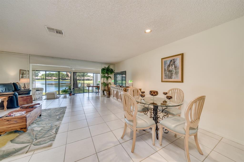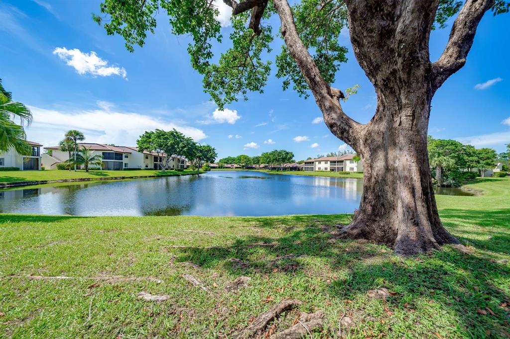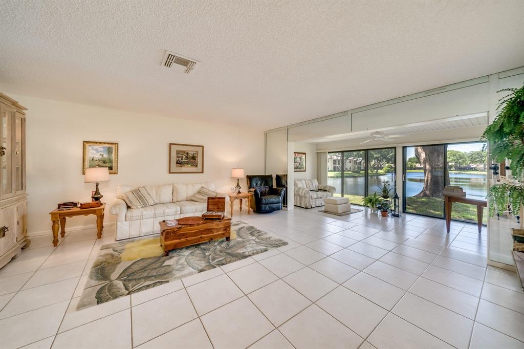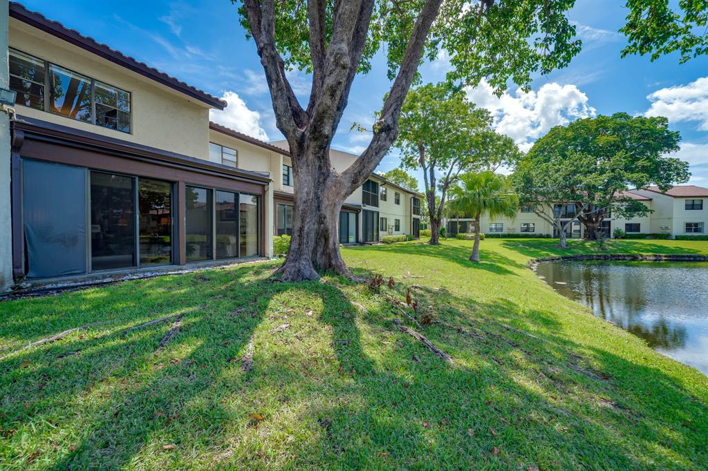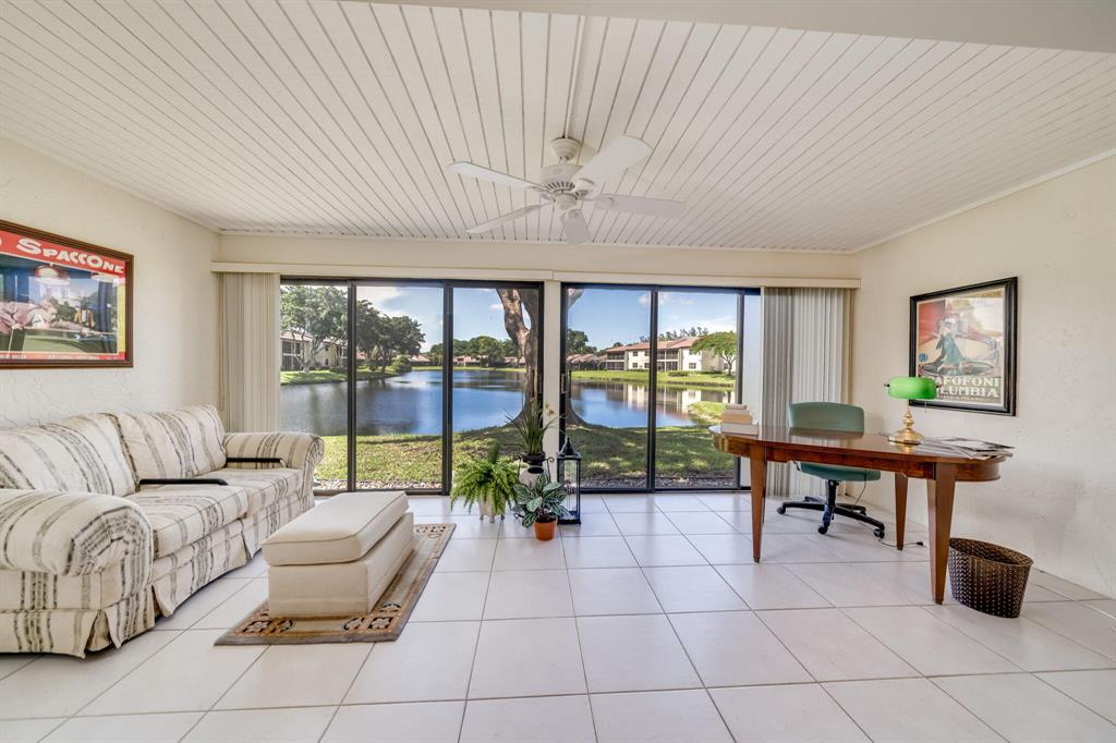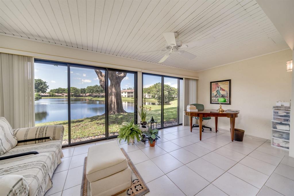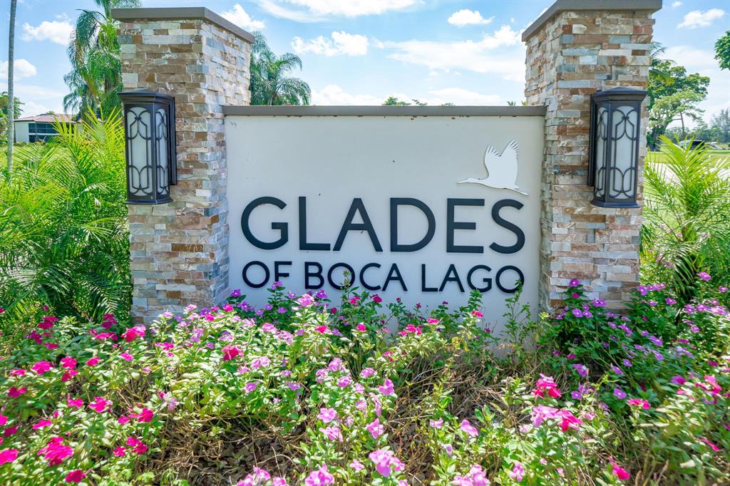 This view says it all! Wow!! Beautiful two story townhome with expansive lake views. Extended living room with floor to ceiling slider windows, and tranquil views from sunny Florida room. Ceramic tile flooring downstairs, carpeting on stairs/upstairs. 2 master suites!! Both bedrooms have their own private bathrooms. Stackable washer dryer inside & brand new roof! This unit is meticulously well maintained and feels like a spacious private home with over 1400 square feet!! Beautiful resort style community pool. Country club membership available but not mandatory.Boca glades is a 55 plus community.Association says 20% down if financing.One pet under 25 pounds allowed.Close to shopping, restaurants, and turnpike, location is ideal.
