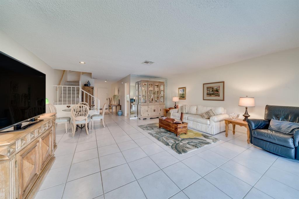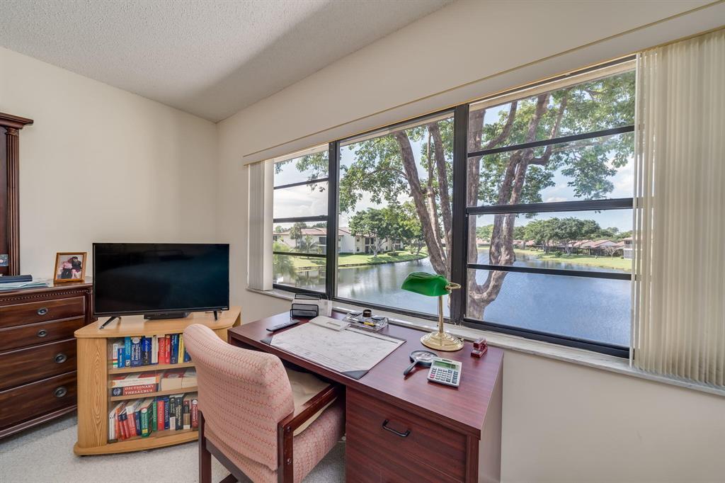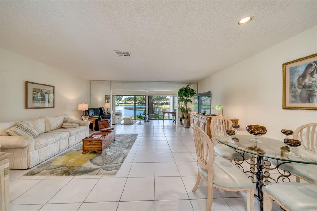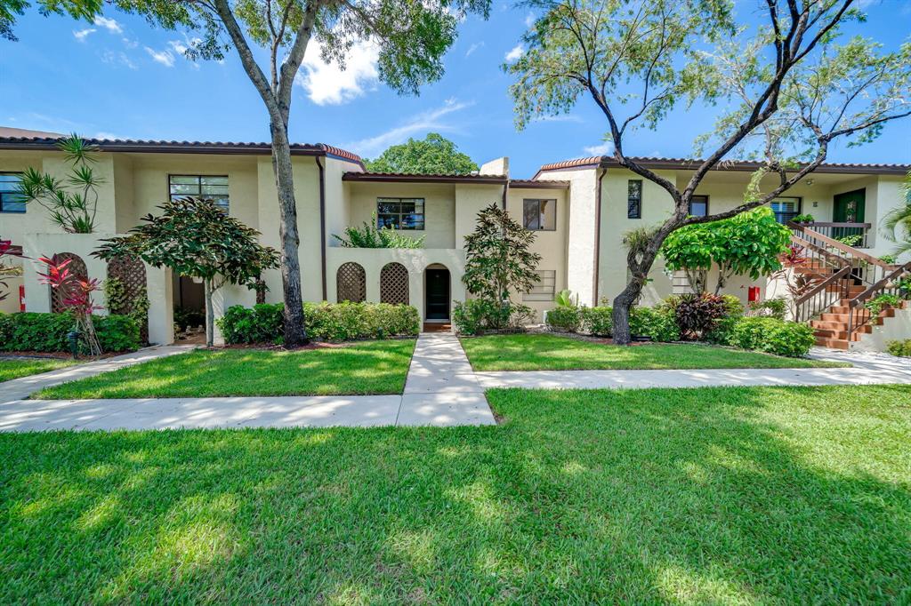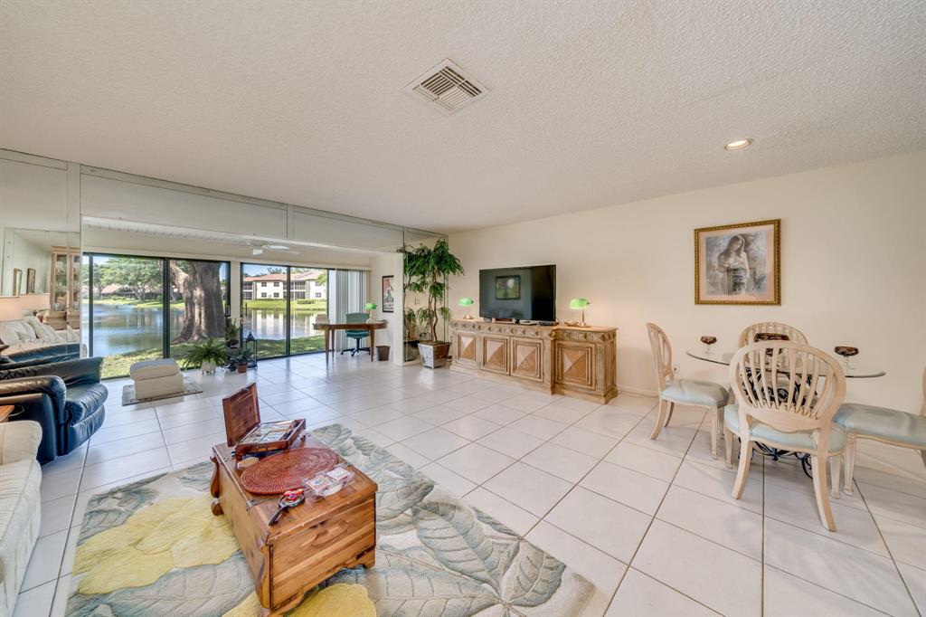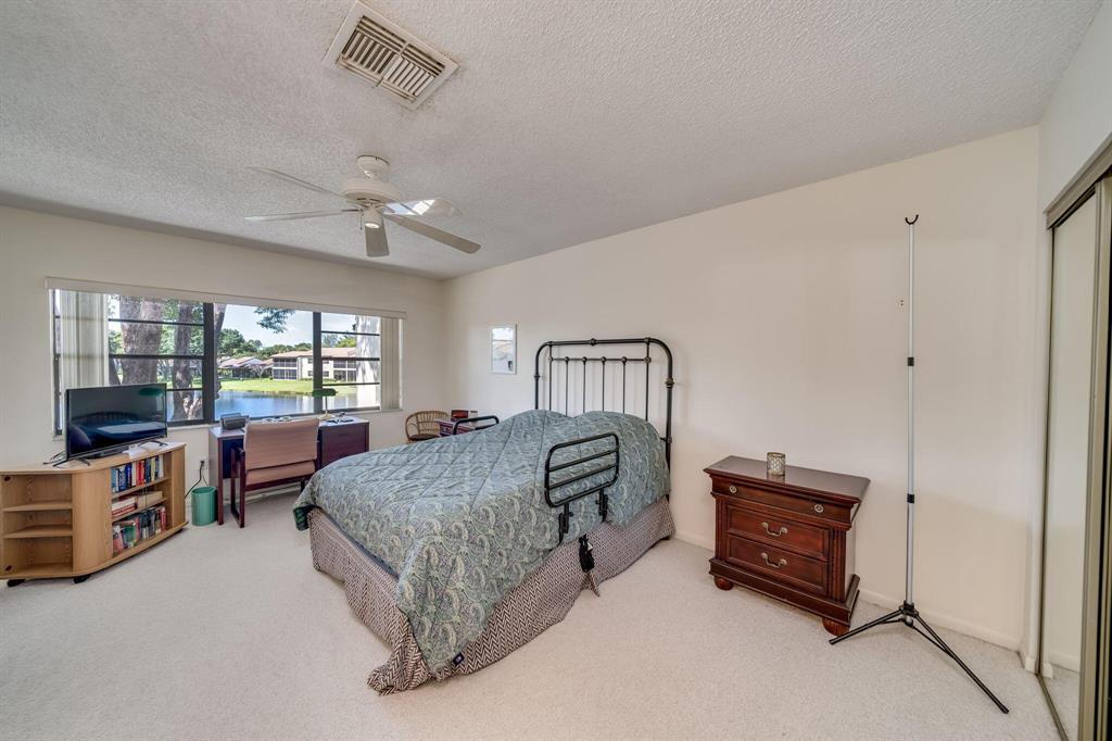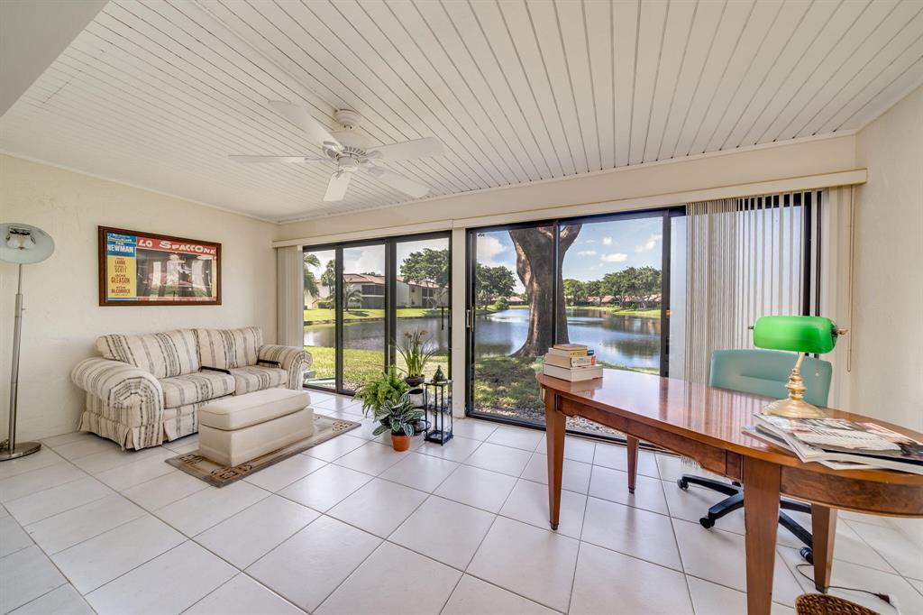 This view says it all! Wow!! Beautiful two story townhome with expansive lake views. Extended living room with floor to ceiling slider windows, and tranquil views from sunny Florida room. Ceramic tile flooring downstairs, carpeting on stairs/upstairs. 2 master suites!! Both bedrooms have their own private bathrooms. Stackable washer dryer inside & brand new roof! This unit is meticulously well maintained and feels like a spacious private home with over 1400 square feet!! Beautiful resort style community pool. Country club membership available but not mandatory.Boca glades is a 55 plus community.Association says 20% down if financing.One pet under 25 pounds allowed.Close to shopping, restaurants, and turnpike, location is ideal.