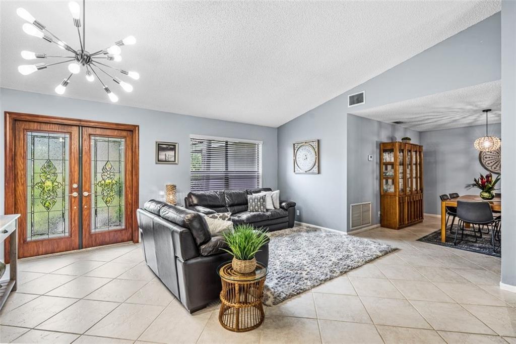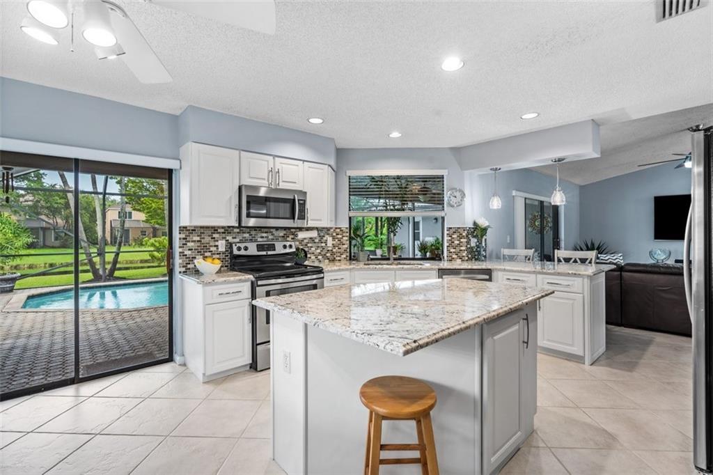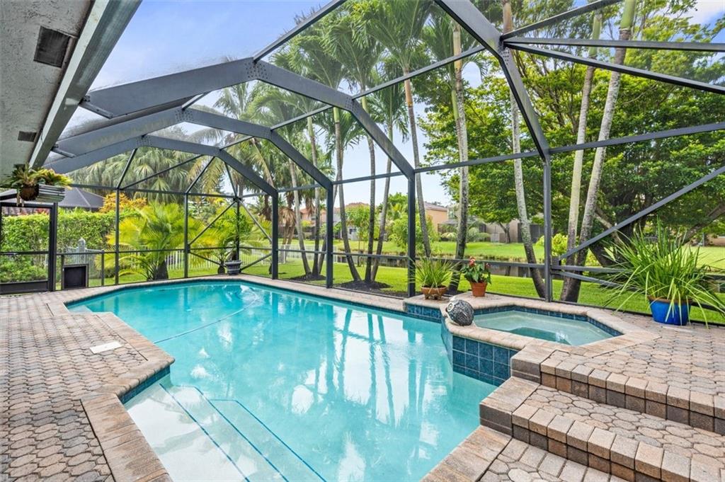 Amazing waterfront residence on a premium lot in West Glen welcomes you home with lushly landscaped grounds, tranquil water views & resort inspired pool, spa & lanai. Step through your double door entry to find an entertainer's dream home w/ expansive open floor plan, chef's kitchen featuring top of the line granite, solid wood cabinetry & center island. Enjoy natural light pouring through the kitchen window! Patio provides endless entertainment opportunities. Chic grey & white coloring throughout! Generously sized bedrooms, impeccably maintained primary & cabana bathrooms, finely appointed w/ high quality finishes. All the comforts of a luxury home. Find your lifestyle desires & create your tropical oasis placing your family in ambiance! Incredible offering!