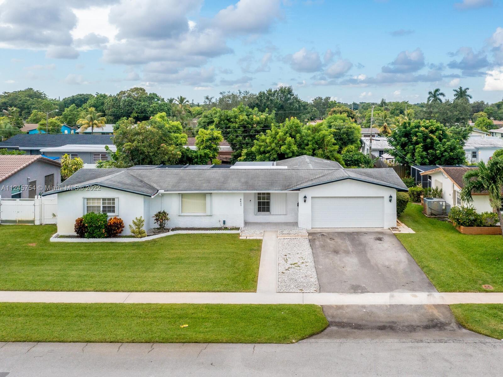 Looking for a beautiful home with a pool in the city of Plantation? No need to look any further. This beautiful 3 bed 2 bath home with an oversized 2 car garage is waiting for you! No HOA. Granite countertop in the kitchen.Third bedroom currently being used as a den but can be easily converted back to a bedroom. View of the pool from the living room, eat-in kitchen and masterbedroom.Tile and wood flooring in the living area with carpet in the bedrooms. Split floor plan .Screened patio. There are accordion shutters throughout most of the home. Fenced yard with fruit trees. Centrally located close to highways, parks, shopping, restaurants and Ft. Lauderdale airport. Don't miss out on this one. Dishwasher, microwave and oven in the garage are not included in the sale. Roof is 19 years old.