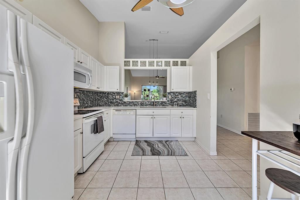 Don't miss this immaculate 2 BR, 2 BA, 2 car garage villa in the gated PET FRIENDLY community of Regency Club at Fairway Isles in Sunrise. Spacious unit with vaulted ceilings, bright open floor plan, laundry room and screened porch overlooking serene backyard and pond. Property is move-in ready boasting a beautiful, updated kitchen with quartz countertops, tile flooring and remodeled guest bathroom. The sizeable main bedroom has a huge walk-in closet and a large bath with a roman tub, separate shower and a double sink. Community features: two pools, clubhouse, 3 entrances, basketball court, gym and tennis court. The LOW HOA fee includes painting of the exterior, roof cleaning, lawn maintenance, security patrol, alarm monitoring and basic cable with HBO. Complete hurricane shutter
