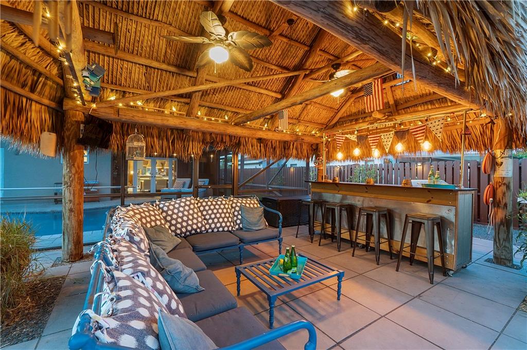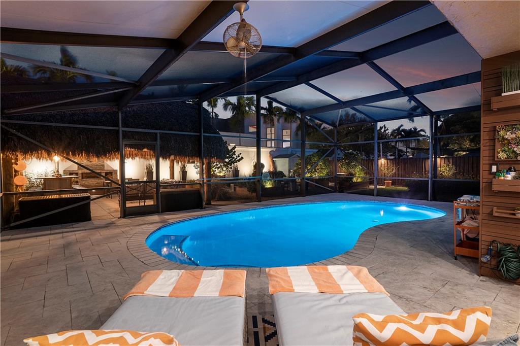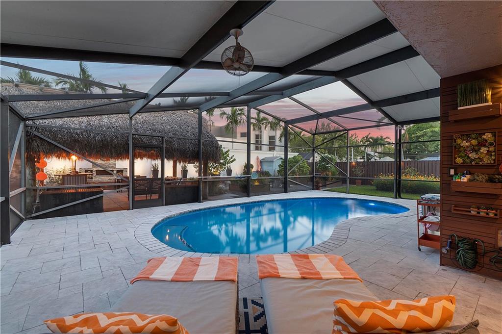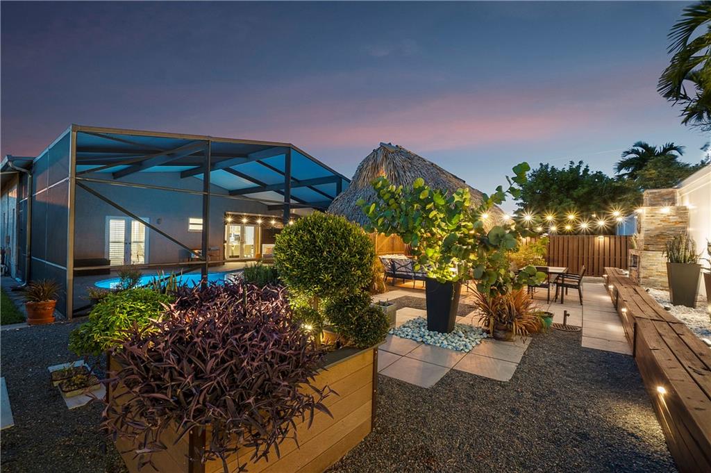 Parkwood Masterpiece w/Incredible English-Style Gardens! No detail is spared in this meticulously maintained, stunning, bright, spacious updated 3BR, 2BA, 2CG, screened pool home w/marble pool deck, lrg private fenced backyard w/Tiki Hut for extended covered space! Contemporary Home feat: Open Flr Plan, Impact Wind & Doors 2018, Vaulted ceilings, LED high hats lighting & crown molding throughout, wood-look Tile Flooring throughout, upgraded baths, chefs kitchen w/custom cabinets, & oversized island, quartz counters, SS appl, wine cooler, double oven, bosch dishwasher & tons of storage. Large Laundry Room, Nest Thermostat, Tankless WH, wood shutters, 5 1/4 baseboards, Lrg Primary BR w/walk-in closet & French doors that lead to pool/patio area. Roof 2007, A/C Aug 2021! LOW HOA FEE $83/Mo.+++