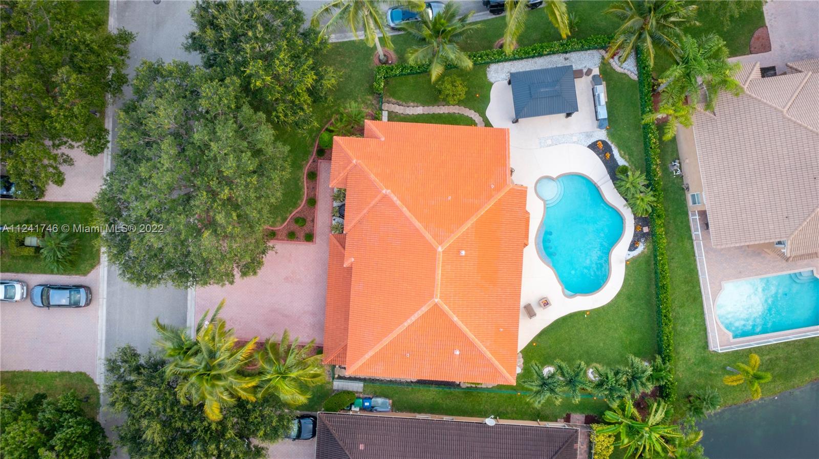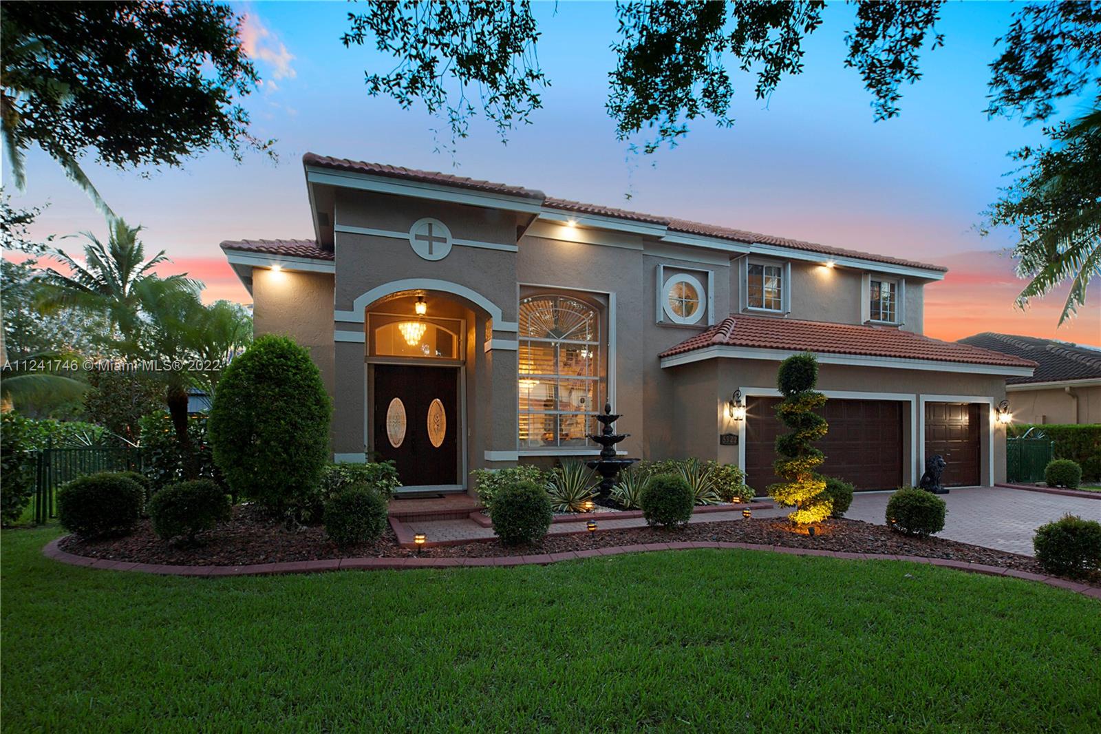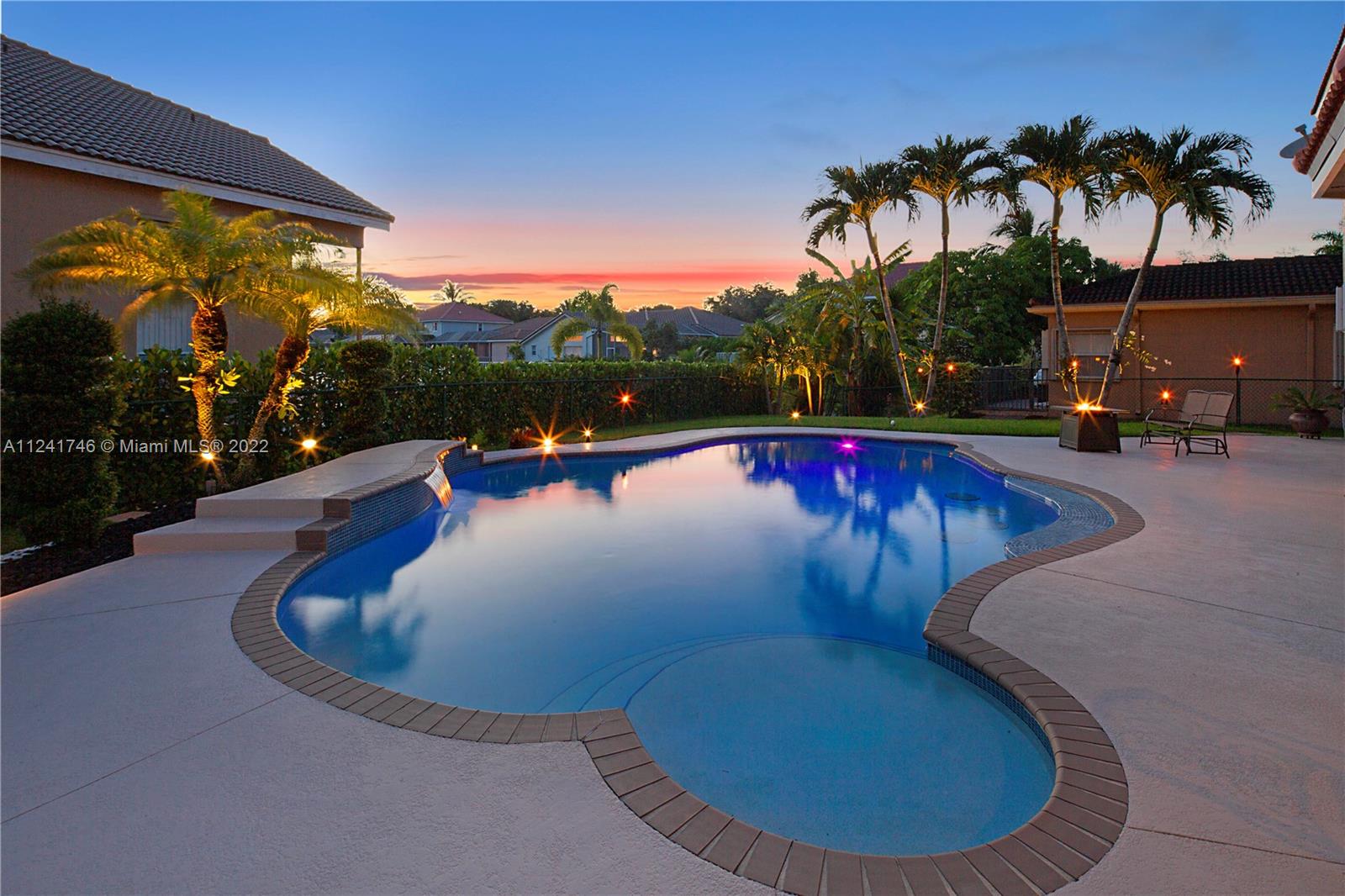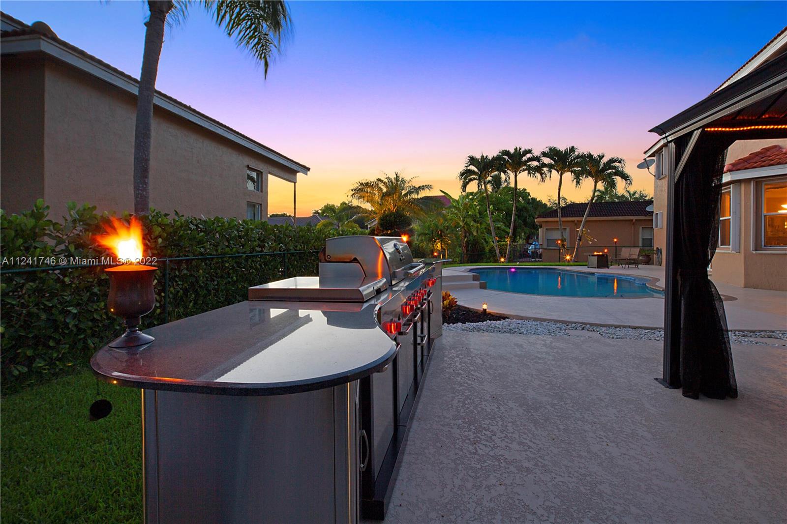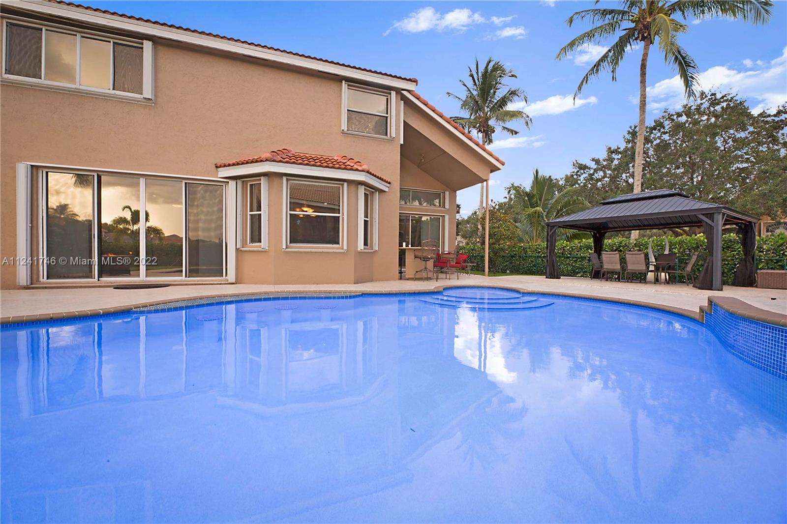 Located in the highly sought-after community of Yardley Estates this incredible home is situated on a large corner lot w/ professional landscaping, mature trees, 3 car garage w/ paver driveway that leads you to your dramatic and striking entry way. Once you enter through the front doors your greeted by the volume ceiling, natural light & stunning view to your entertaining backyard. This home features long water view & backyard faces west for incredible sunsets. Enjoy your gazebo, portable summer kitchen w/ grill, refreshing pool w/ swim up bar & seating, outdoor shower, landscaping lighting, fenced yard & more! Inside features 5 bedrooms 3 baths (1 bed & bath located downstairs) owner's suite & all other beds upstairs. New roof, Accordion Shutters, walkable to great schools, parks & more!