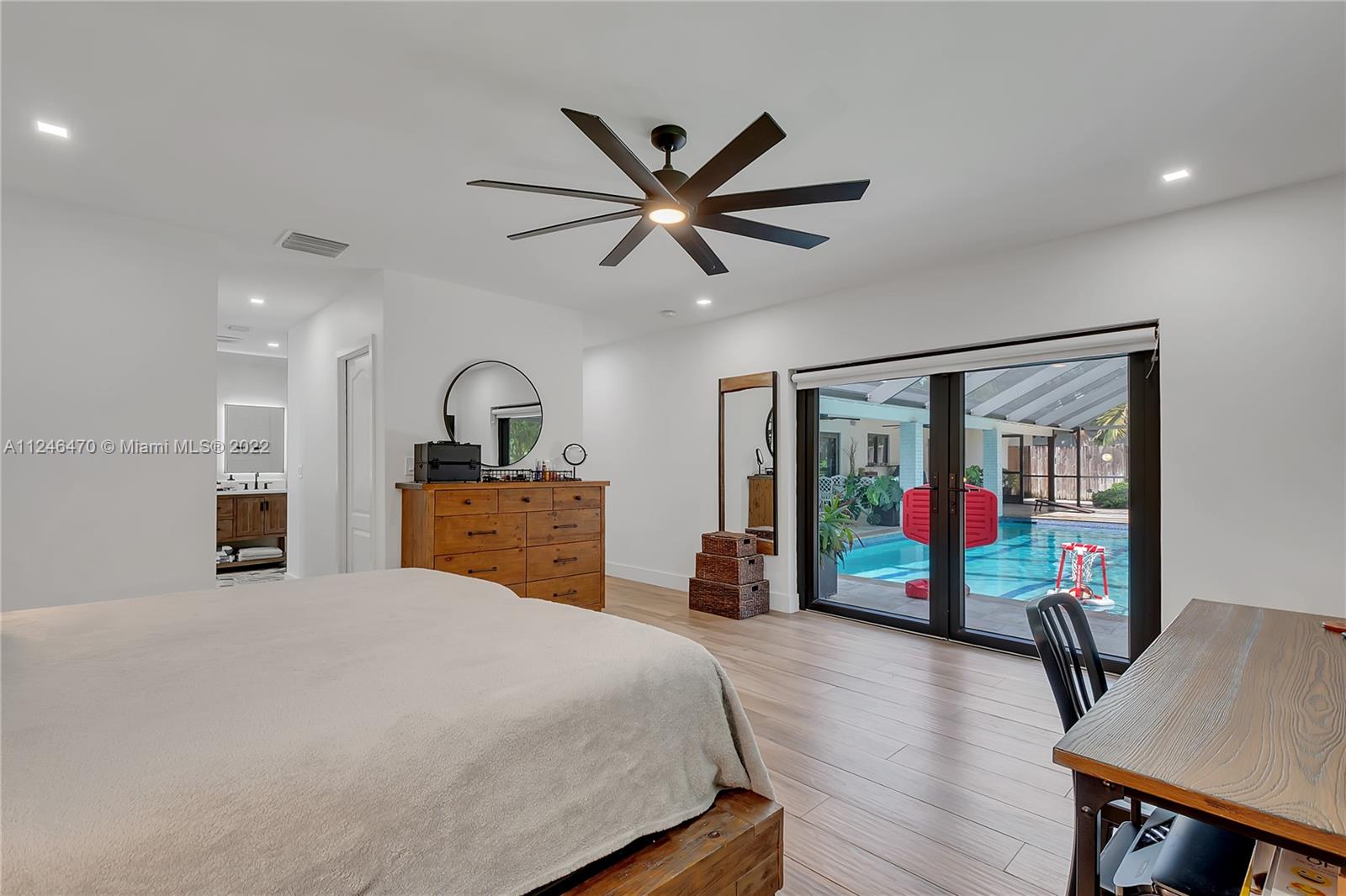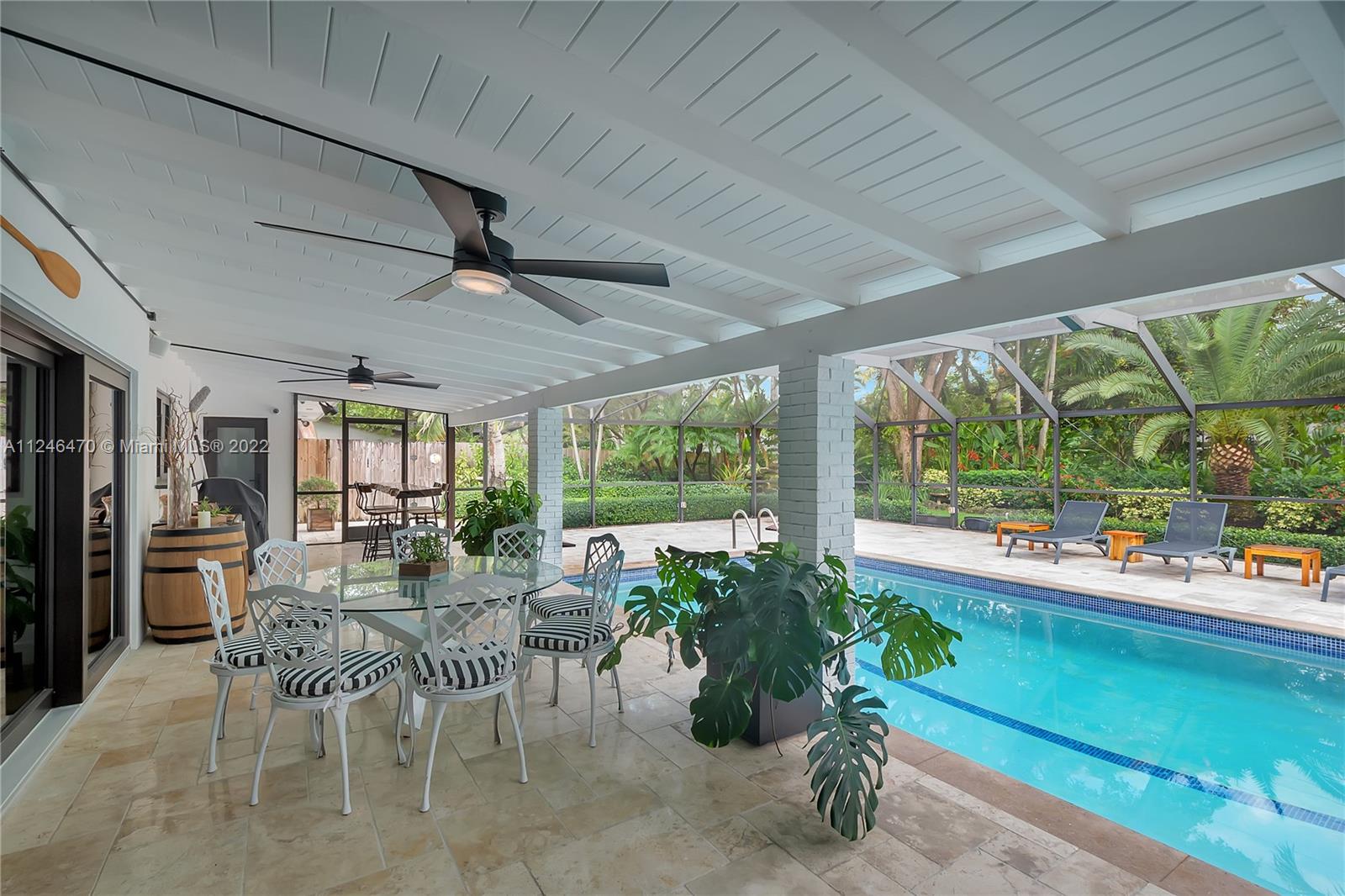 Modern 4 bd, 3 bath beauty in Pinecrest, newly renovated & ready for you! Grand entry w/ charming, exposed brick, opens to large entertaining spaces w/ clear view to back patio. Formal dining area off the kitchen which features wood cabinetry, subway tile backsplash, granite countertops & stainless appliances including double ovens. Warm blonde wood plank tile flooring. The bdrms are spacious w/ lots of light, plantation shutters & stylish, remodeled baths. Fabulous master suite w/ double walk-in closets, dual sinks & view out to the pool. Huge indoor laundry/utility rm. Impact windows/doors, new flat tile roof, circular driveway, 2 car garage. Spacious screened travertine patio w/ deep overhang & pool. Lush yet perfectly manicured landscaping, including a tranquil pond w/ waterfall.