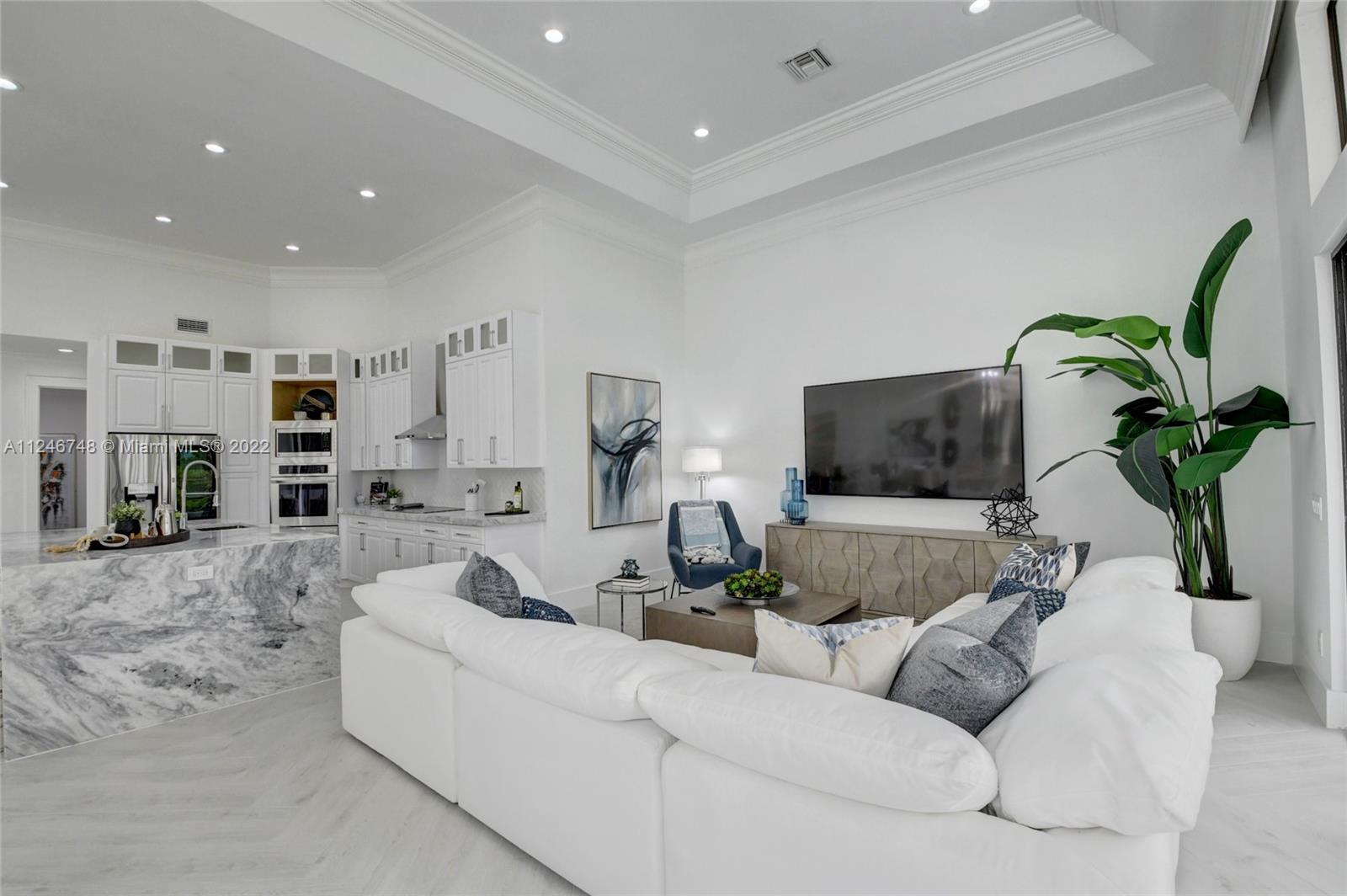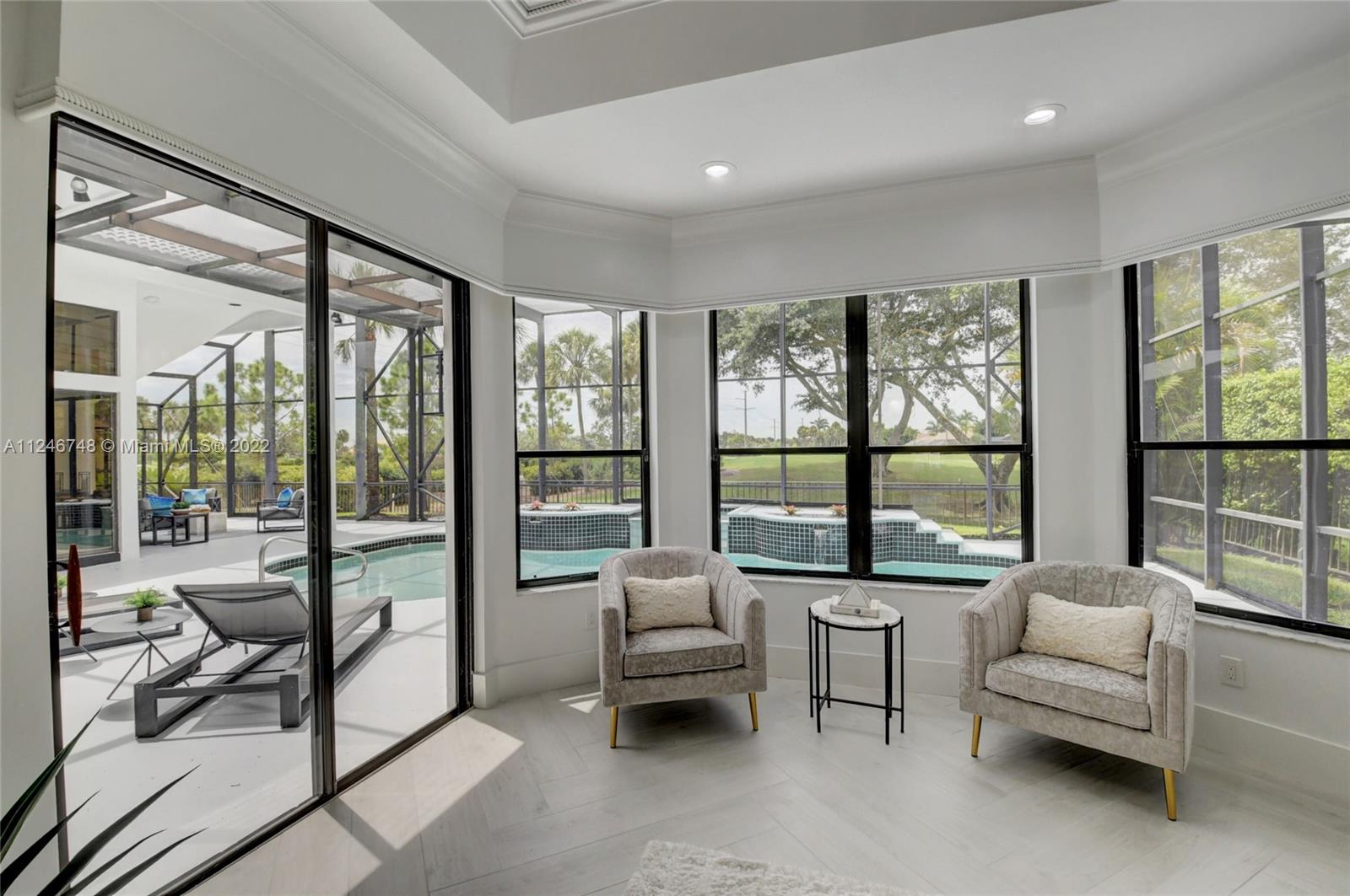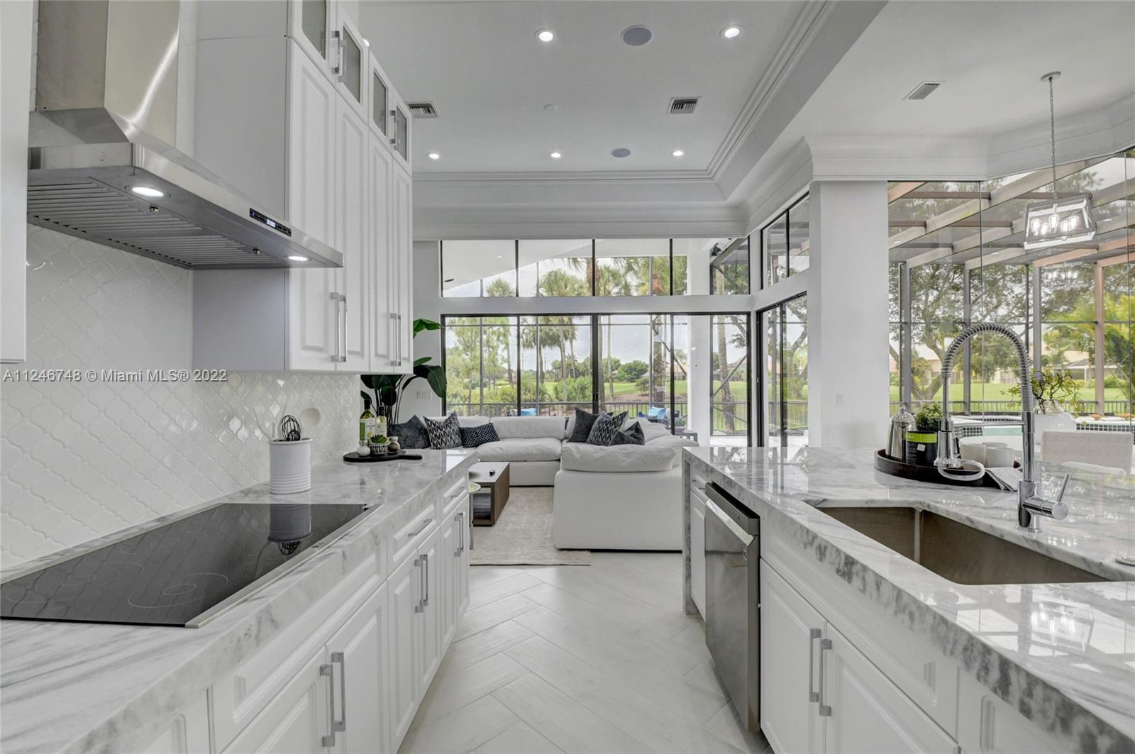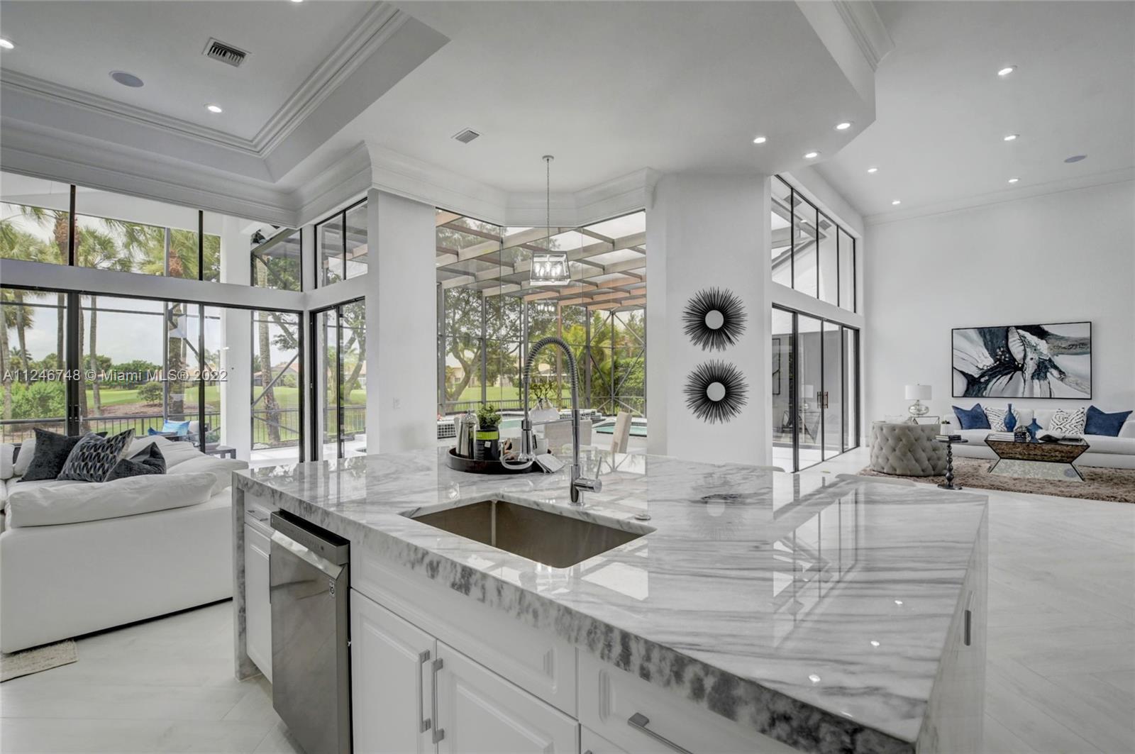 Sensational open floor plan rancher on the 7th green of Stonebridge Country Club. Meticulously updated boasting a kitchen fit for the pickiest chef with the finest stainless steel appliances, double ovens, professional sink, and restaurant grade exhaust hood. Quartzite counters and a waterfall island accentuate the open-air feel of the home overlooking the breakfast nook and family room. Entertain unlimited guests with wide open spaces and 20+ foot volume ceilings. The pool area and gathering deck are the perfect oasis to relax, bbq, swim and watch television outside under the enormous screened in yard. Bring your golf cart and park it in the garage with its own cart port. No expense has been spared in this artful and tastefully modernized gem. Membership details in attachments.